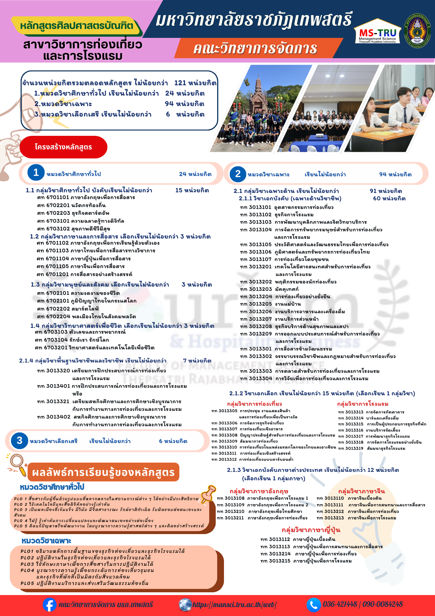 สาขาวิชาการท่องเที่ยวและธุรกิจบริการ PLOs