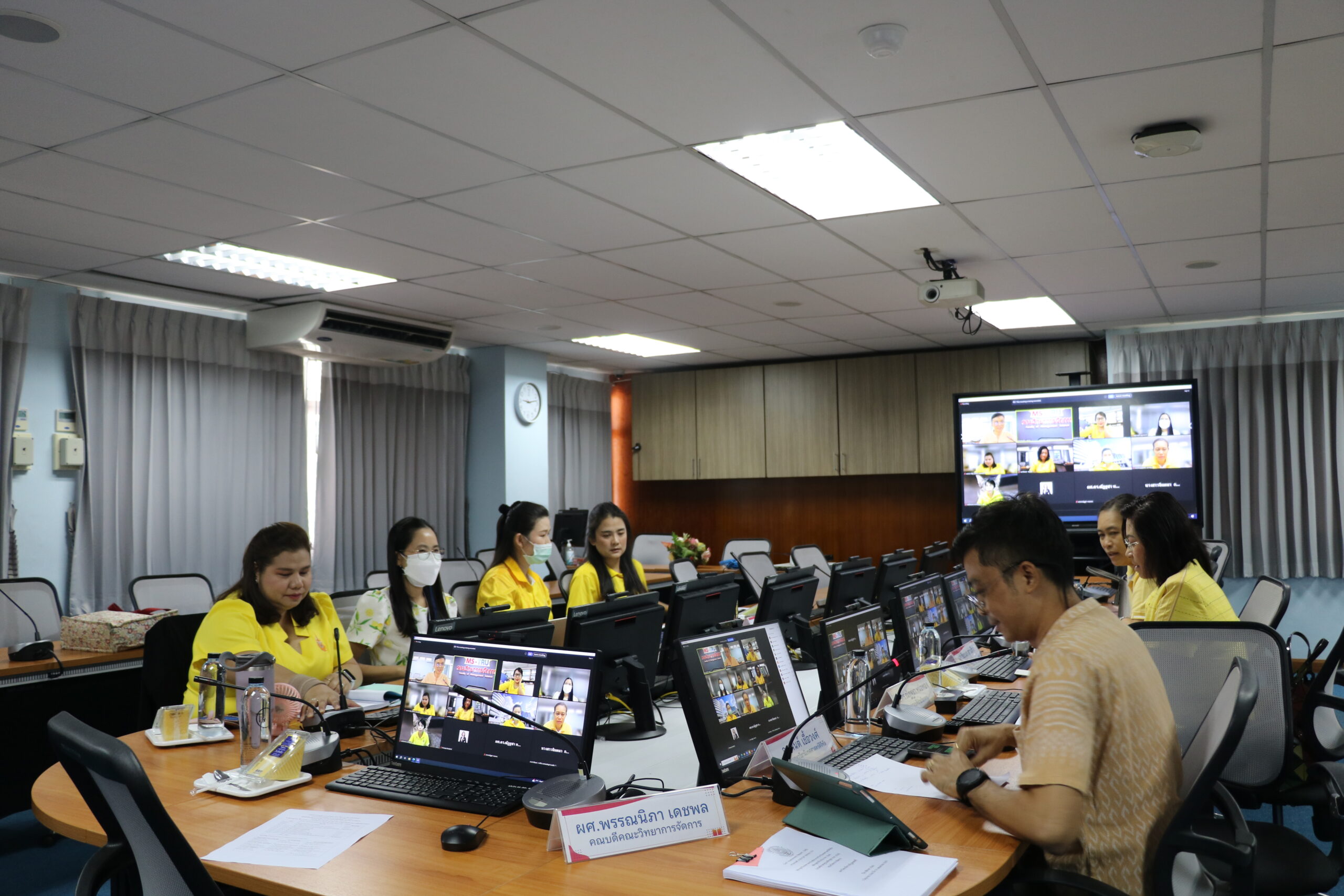 สาขาวิชานิเทศศาสตร์ดิจิทัล คณะวิทยาการจัดการ รับการตรวจประเมินคุณภาพการศึกษาภายใน ระดับหลักสูตร ตามเกณฑ์ AUN – QA ประจำปีการศึกษา 2566 เมื่อวันที่ 24 มิถุนายน 2567 ในรูปแบบการประชุมระบบ Hybrid Meeting ณ ห้องช่อยูงทอง ชั้น 2 อาคาร 22 คณะวิทยาการจัดการ มหาวิทยาลัยราชภัฏเทพสตรี โดยได้รับเกียรติจากคณะกรรมการตรวจประเมิน ประกอบด้วยผู้ทรงคุณวุฒิ ให้เกียรติเป็นคณะกรรมการตรวจประเมิน ได้แก่ ผศ.ดร.ปิยลักษณ์ โพธิวรรณ์ ประธานกรรมการ ผศ.ดร.วาสิตา เกิดผล ประสพศักดิ์ กรรมการ อ.ชญานุตม์ บุญพระเกศ กรรมการและเลขานุการ น.ส.กุสุมา นิรัติศัยดีสกุล ผู้ช่วยเลขานุการ น.ส.จินตนา การสี ผู้ช่วยเลขานุการ