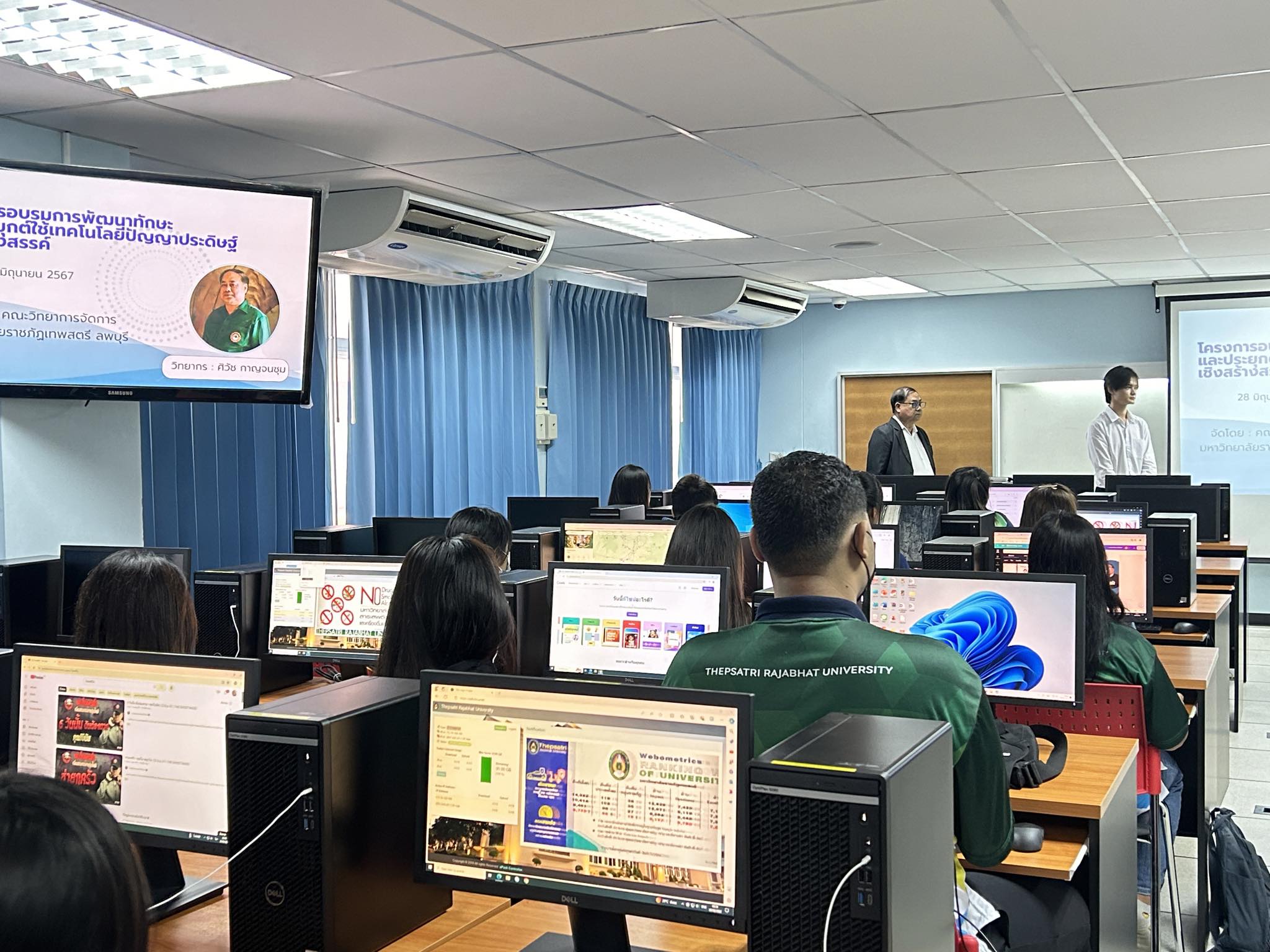 สาขาวิชาบริหารธุรกิจ วิชาเอกการจัดการธุรกิจดิจิทัล ได้จัดโครงการอบรมพัฒนาทักษะและประยุกต์ใช้เทคโนโลยีประดิษฐ์เชิงสร้างสรรค์ มีวัตถุประสงค์เพื่อเสริมสร้างองค์ความรู้ ประสบการณ์ และการนำดิจิทัลไปปฏิบัติ หรือต่อยอดความรู้ได้อย่างทันสมัย และเพื่อพัฒนาทักษะการปฏิบัติงานโดยการนำดิจิทัลไปประยุกต์ใช้ได้อย่างมืออาชีพ เมื่อวันที่ 28 มิถุนายน 2567 ให้กับนักศึกษาภาคพิเศษ โดยท่านวิทยากรคือ อาจารย์ศิวัช กาญจนชุม  และ    คุณนิธิวัฒน์ สุทธิเจริญ ณ ห้อง Lab Computer 1 ชั้น 3 อาคาร 22 คณะวิทยาการจัดการ มหาวิทยาลัยราชภักเทพสตรี