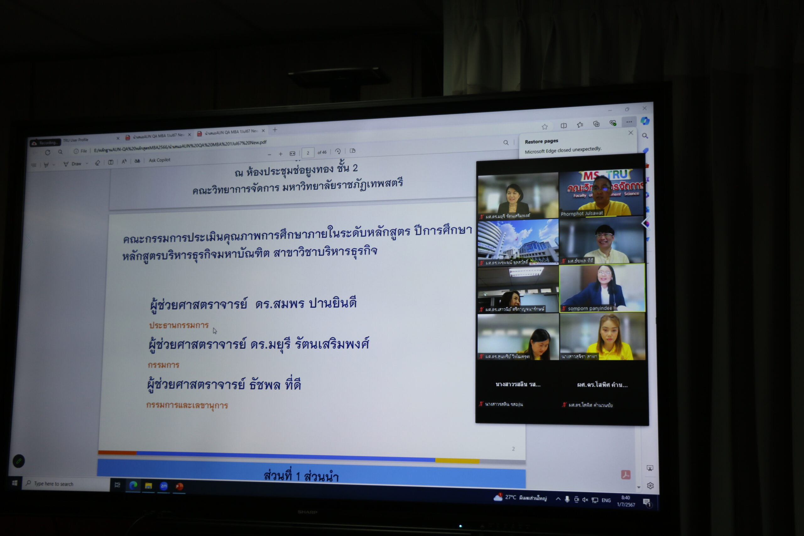 สาขาวิชาบริหารธุรกิจ ระดับบัณฑิตศึกษา คณะวิทยาการจัดการ รับการตรวจประเมินคุณภาพการศึกษาภายใน ระดับหลักสูตร ตามเกณฑ์ AUN – QA ประจำปีการศึกษา 2566 เมื่อวันที่ 1  กรกฎาคม 2567 ในรูปแบบการประชุมระบบ Hybrid Meeting ณ ห้องช่อยูงทอง ชั้น 2 อาคาร 22 คณะวิทยาการจัดการ มหาวิทยาลัยราชภัฏเทพสตรี โดยมีคณะกรรมการตรวจประเมิน ดังนี้ผศ.ดร.สมพร ปานยินดี ประธานกรรมการ ผศ.ดร.มยุรี รัตนเสริมพงศ์ กรรมการผศ.ธัชพล ทีดี กรรมการและเลขานุการ น.ส.สุจิรา สาหา ผู้ช่วยเลขานุการ น.ส.รสลิน รสองุ่น ผู้ช่วยเลขานุการ