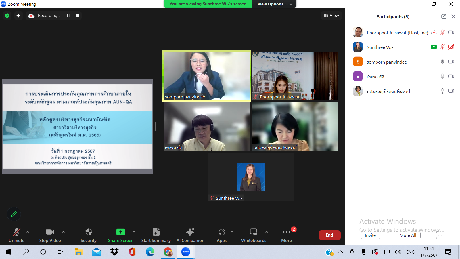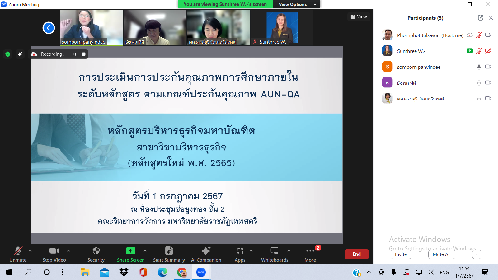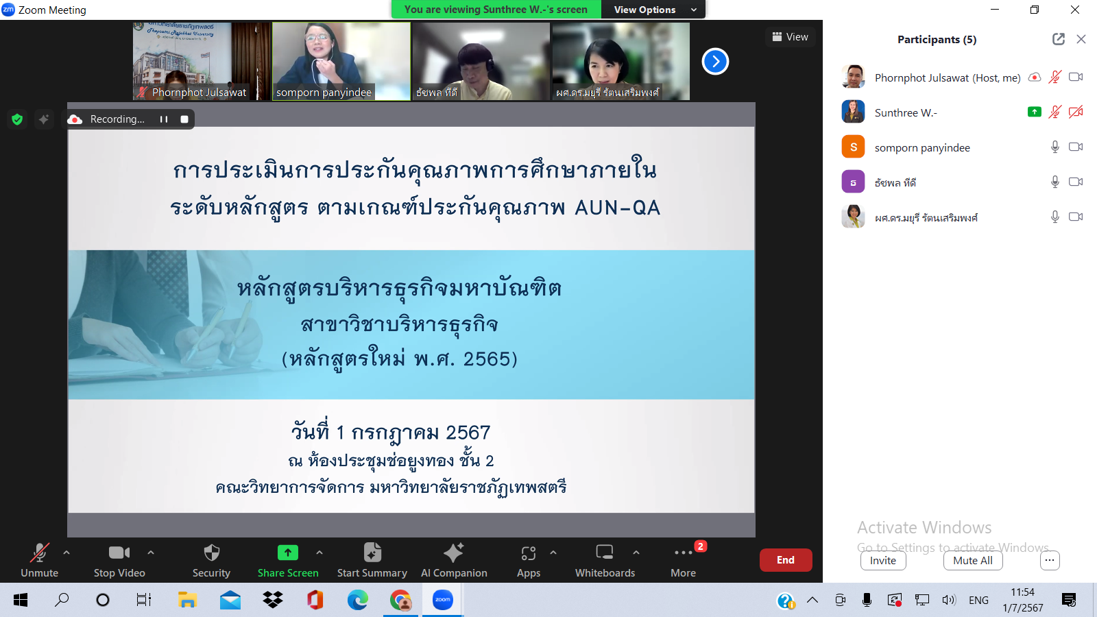 สาขาวิชาบริหารธุรกิจ ระดับบัณฑิตศึกษา คณะวิทยาการจัดการ รับการตรวจประเมินคุณภาพการศึกษาภายใน ระดับหลักสูตร ตามเกณฑ์ AUN – QA ประจำปีการศึกษา 2566 เมื่อวันที่ 1  กรกฎาคม 2567