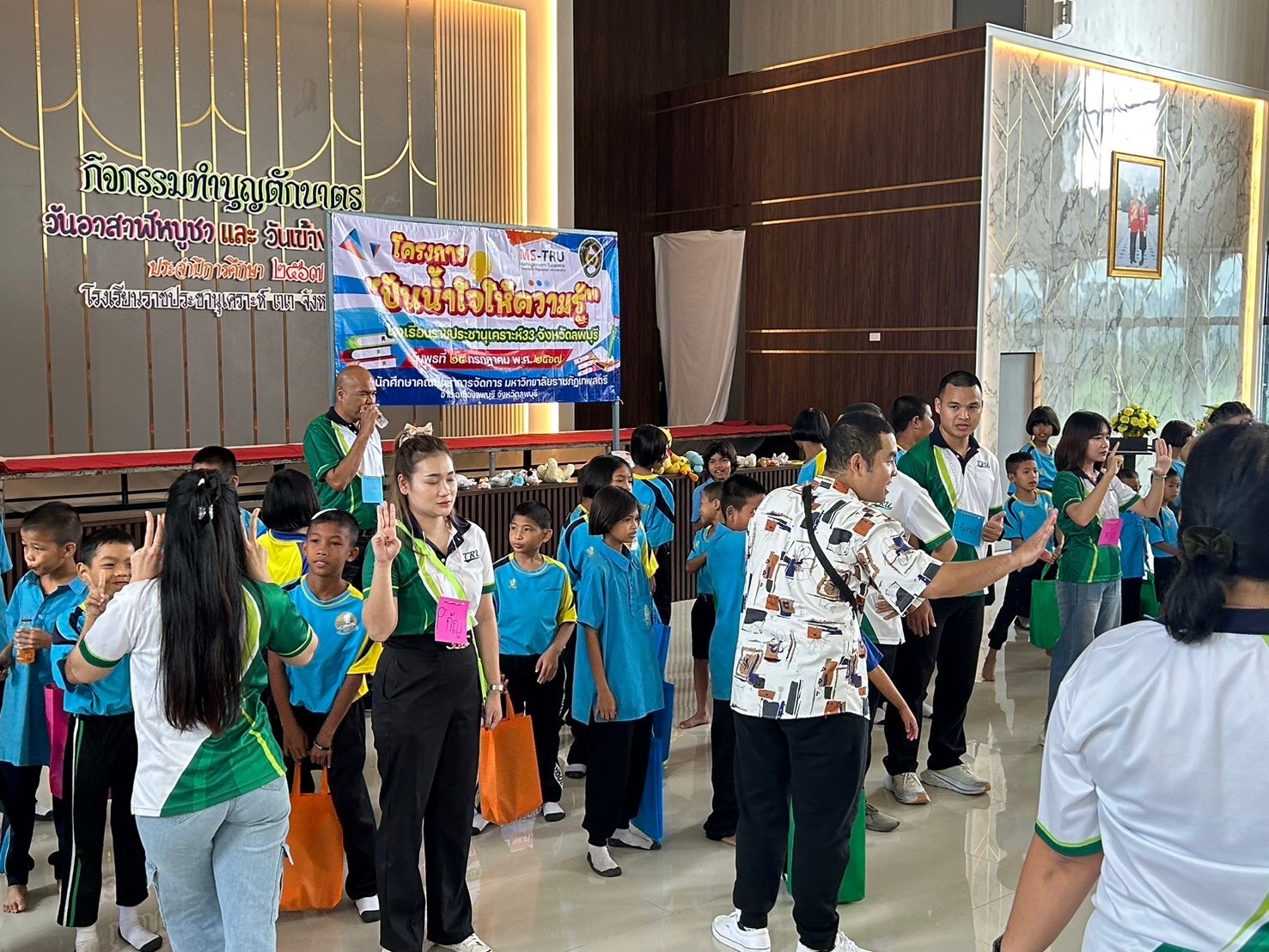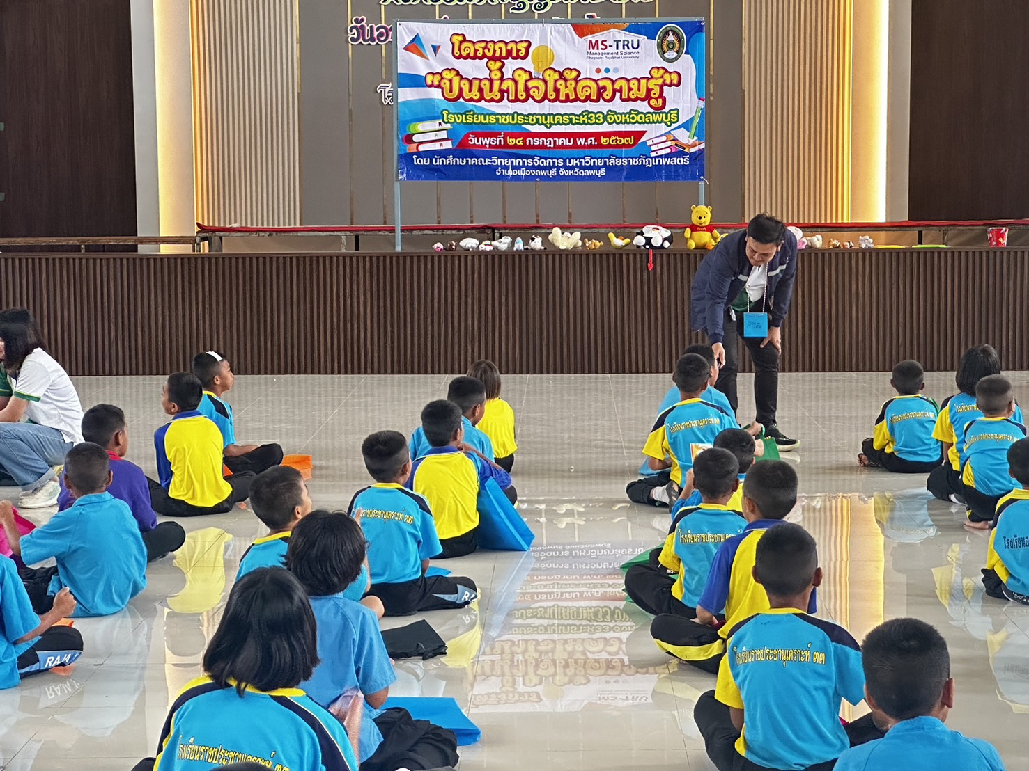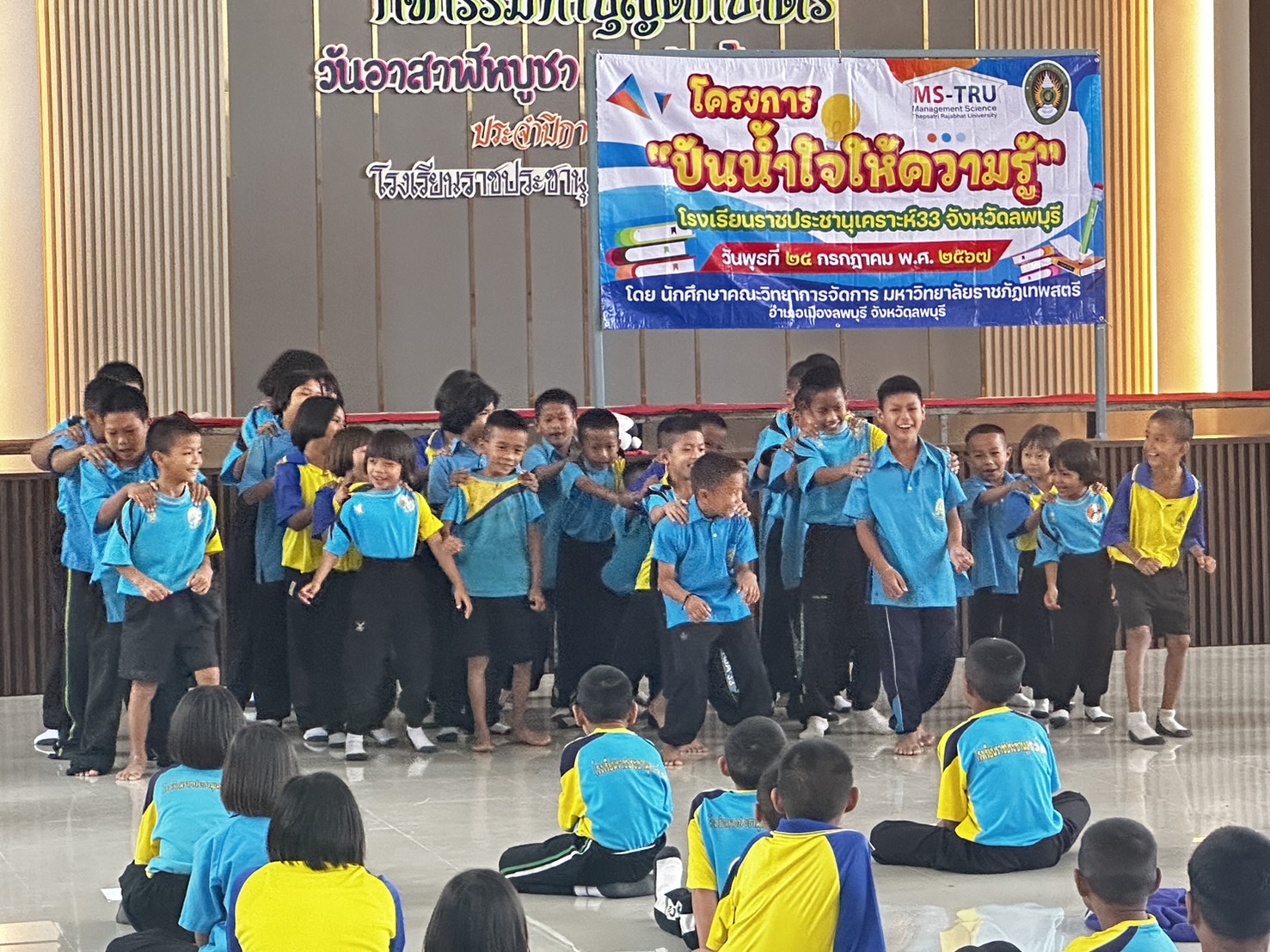 อาจารย์ ดร.ทศพร พีสะระ และอาจารย์จิระ ประสพธรรม จัดโครงการโครงการขออนุมัติดำเนินโครงการ จิตอาสาเพื่อการพัฒนาท้องถิ่นสำหรับนักการจัดการ เมื่อวันที่ 24 กรกฎาคม 2567 ณ โรงเรียนราชประชานุเคราะห์ 33 จังหวัดลพบุรี มีวัตถุประสงค์ เพื่อให้นักศึกษามีความรู้ความเข้าใจการพัฒนาทักษะทางการจัดการสำหรับการจัดโครงการจิตอาสาเพื่อพัฒนาท้องถิ่น เกิดการเเลกเปลี่ยนเรียนรู้ และสามารถนำไปปรับประยุกต์ใช้ในการจัดโครงการจิตอาสาในหน่วยงานของตนเองต่อไป โดยมีนักศึกษาบริหารธุรกิจ สาขาวิชาเอกการจัดการ ภาค กศ.บป. เข้าร่วมโครงการ จำนวน 40 คน และนักเรียนโรงเรียนราชประชานุเคราะห์ 33 จำนวน 90 คน ซึ่งได้รับเกียรติจาก อาจารย์เสาวพร สุขเกิด ผู้ช่วยคณบดีเข้าร่วมเป็นเกีตรติในกิจกรรมครั้งนี้