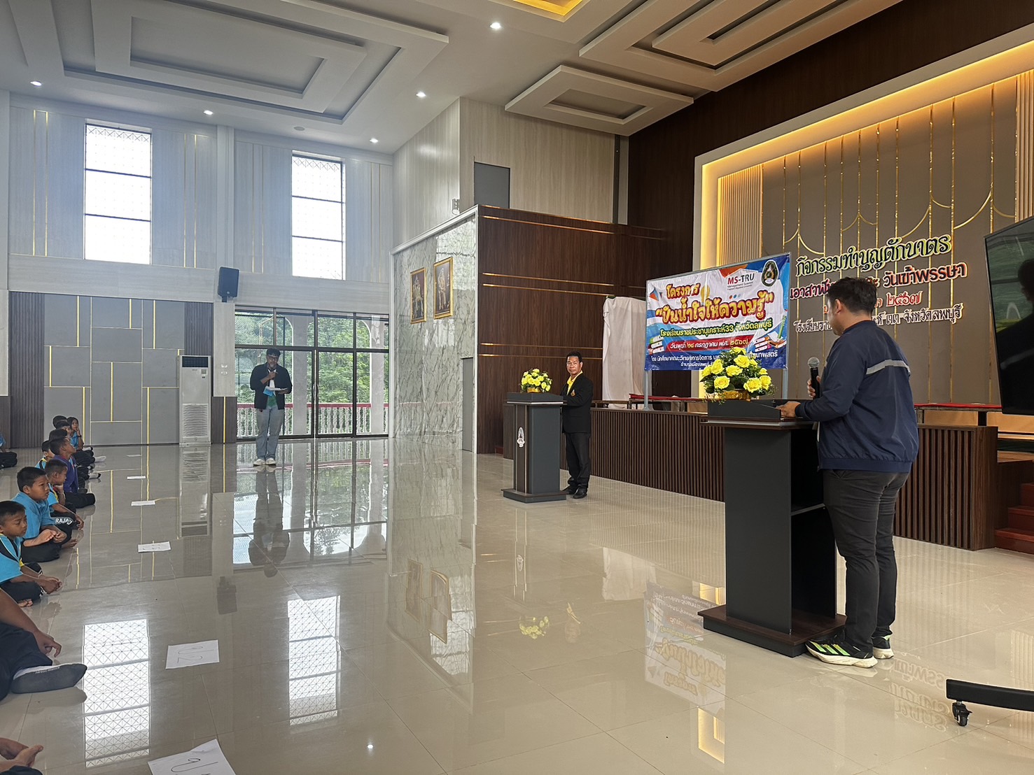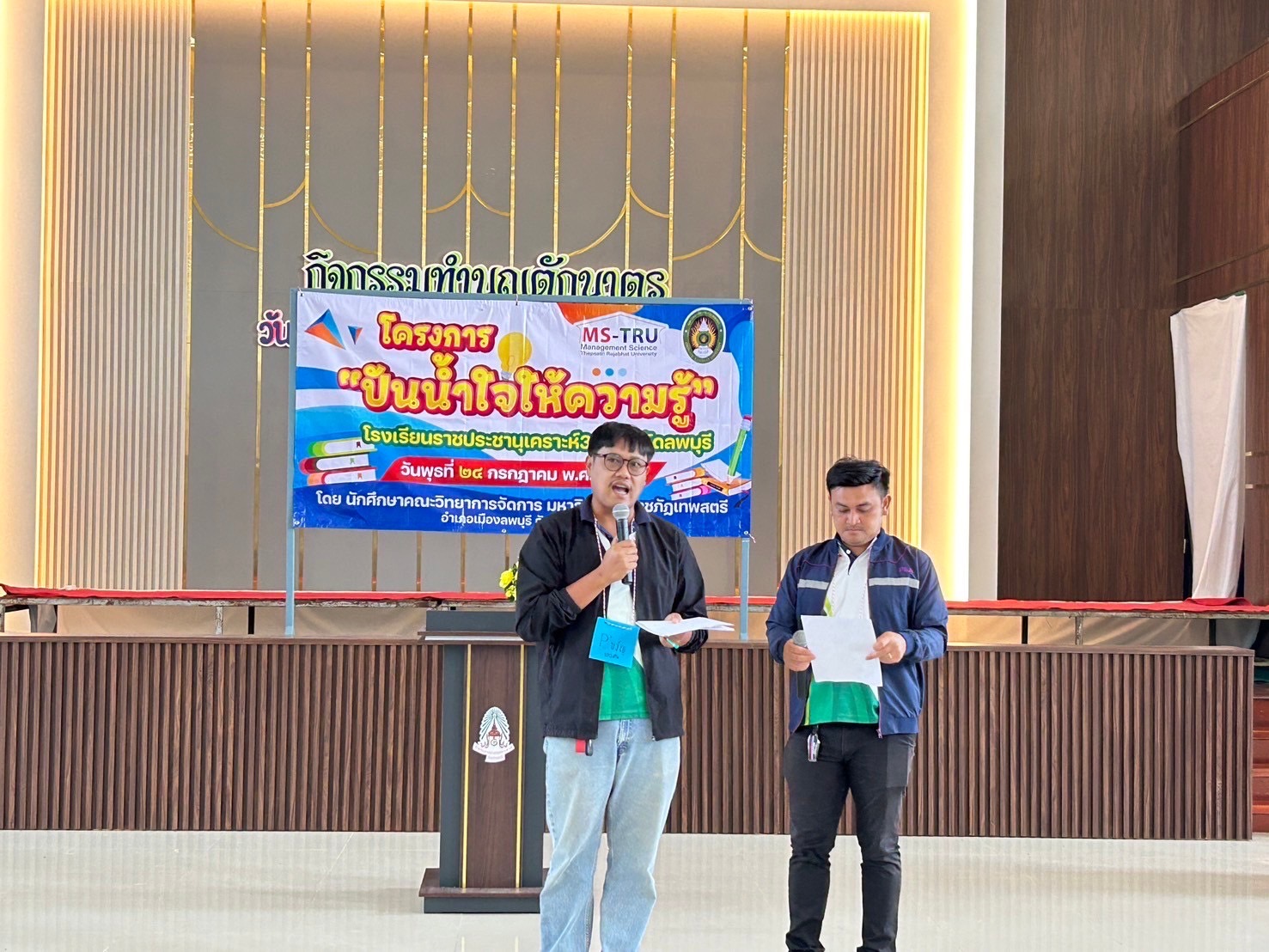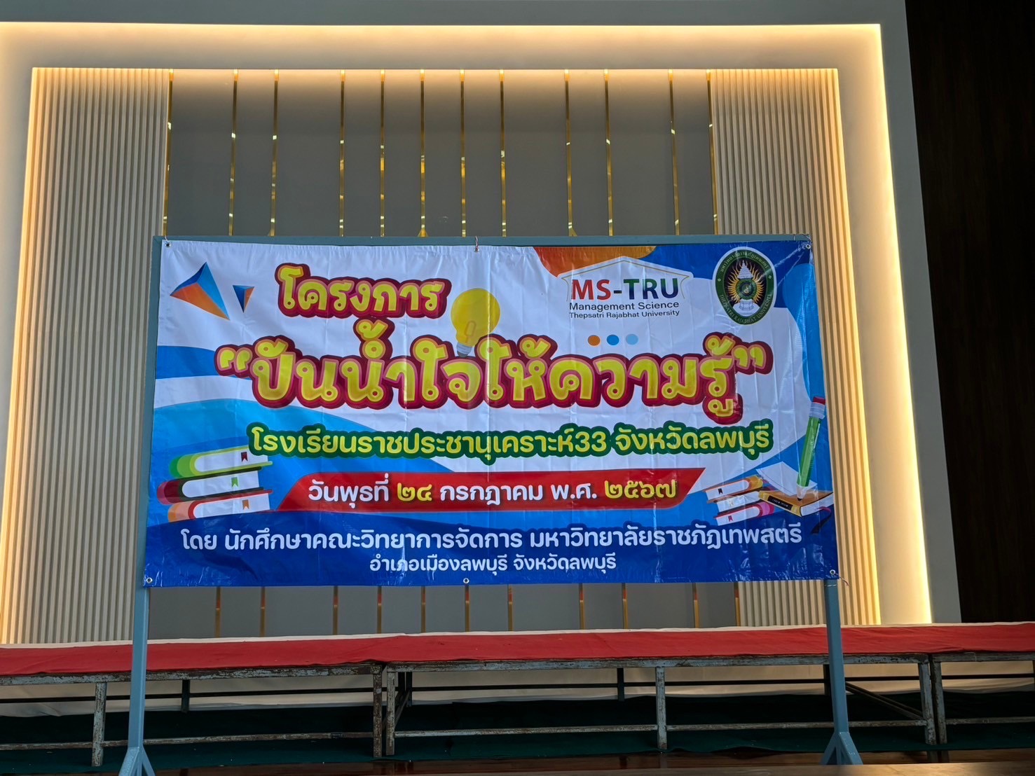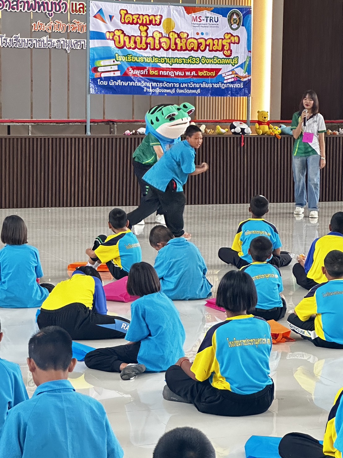 อาจารย์ ดร.ทศพร พีสะระ และอาจารย์จิระ ประสพธรรม จัดโครงการโครงการขออนุมัติดำเนินโครงการ จิตอาสาเพื่อการพัฒนาท้องถิ่นสำหรับนักการจัดการ เมื่อวันที่ 24 กรกฎาคม 2567 ณ โรงเรียนราชประชานุเคราะห์ 33 จังหวัดลพบุรี มีวัตถุประสงค์ เพื่อให้นักศึกษามีความรู้ความเข้าใจการพัฒนาทักษะทางการจัดการสำหรับการจัดโครงการจิตอาสาเพื่อพัฒนาท้องถิ่น เกิดการเเลกเปลี่ยนเรียนรู้ และสามารถนำไปปรับประยุกต์ใช้ในการจัดโครงการจิตอาสาในหน่วยงานของตนเองต่อไป โดยมีนักศึกษาบริหารธุรกิจ สาขาวิชาเอกการจัดการ ภาค กศ.บป. เข้าร่วมโครงการ จำนวน 40 คน และนักเรียนโรงเรียนราชประชานุเคราะห์ 33 จำนวน 90 คน ซึ่งได้รับเกียรติจาก อาจารย์เสาวพร สุขเกิด ผู้ช่วยคณบดีเข้าร่วมเป็นเกีตรติในกิจกรรมครั้งนี้