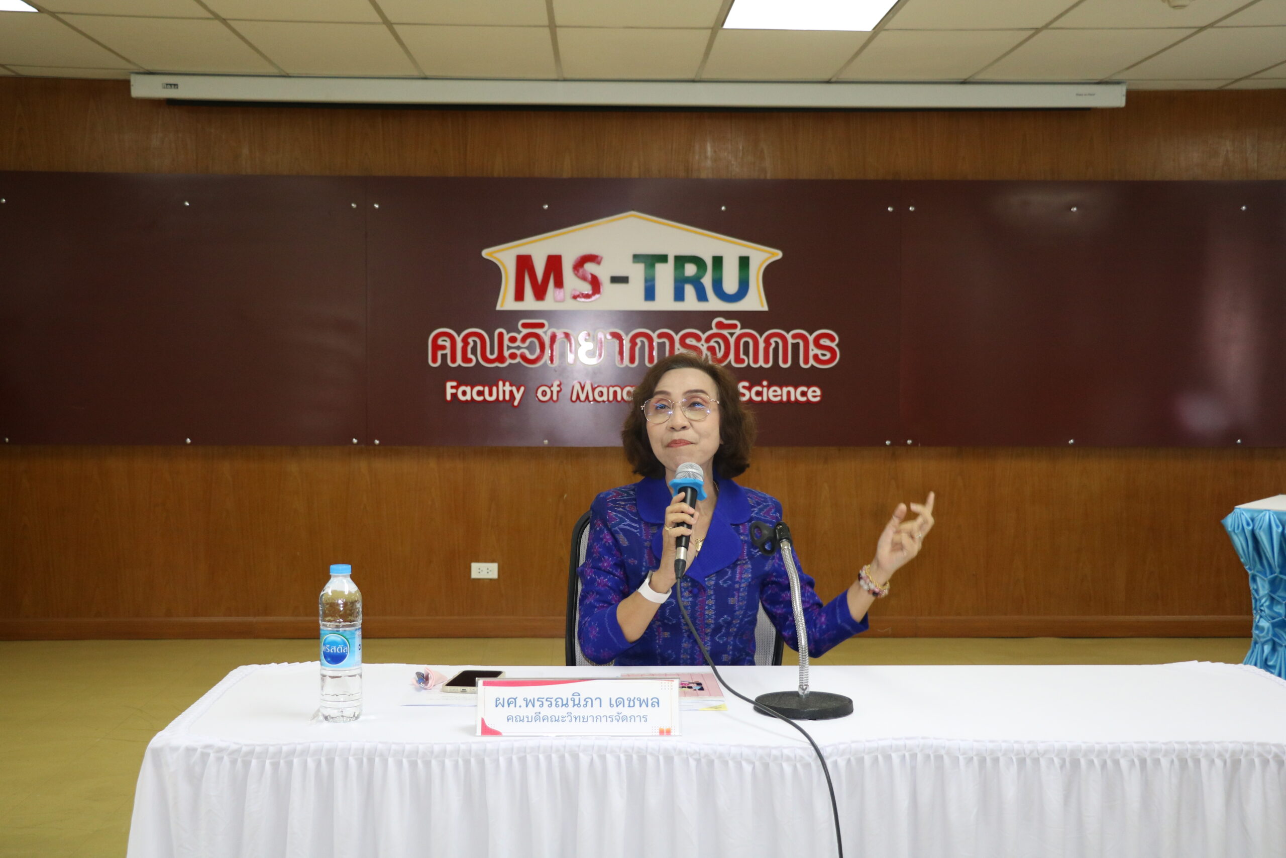 ผศ.พรรณนิภา เดชพล คณบดี คณะวิทยาการจัดการ เป็นประธานในพิธีเปิดโครงแลกเปลี่ยนเรียนรู้แนวทางการพัฒนาคุณภาพการศึกษา และการพัฒนาหลักสูตร/ปรับปรุงหลักสูตร คณะวิทยาการจัดการ