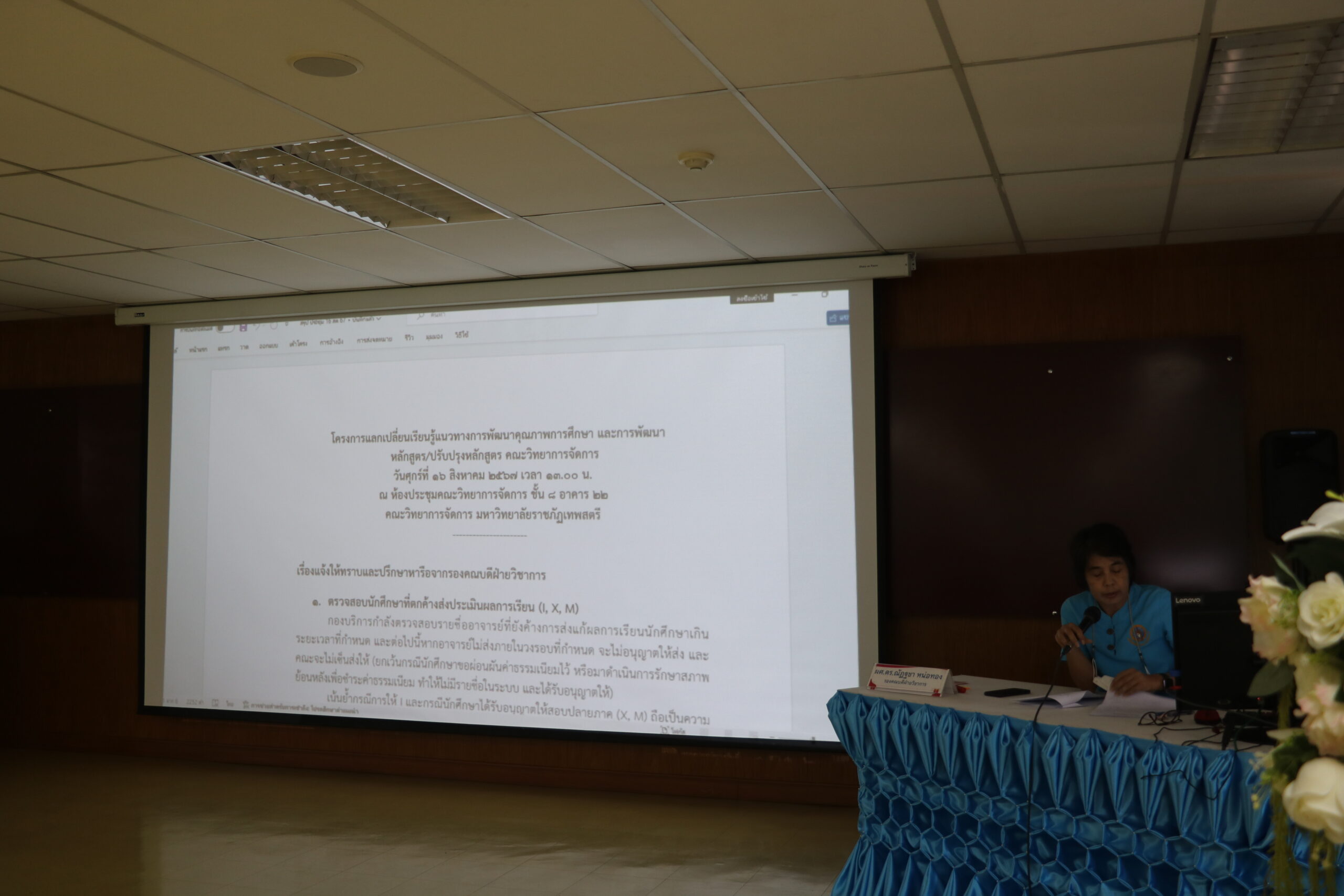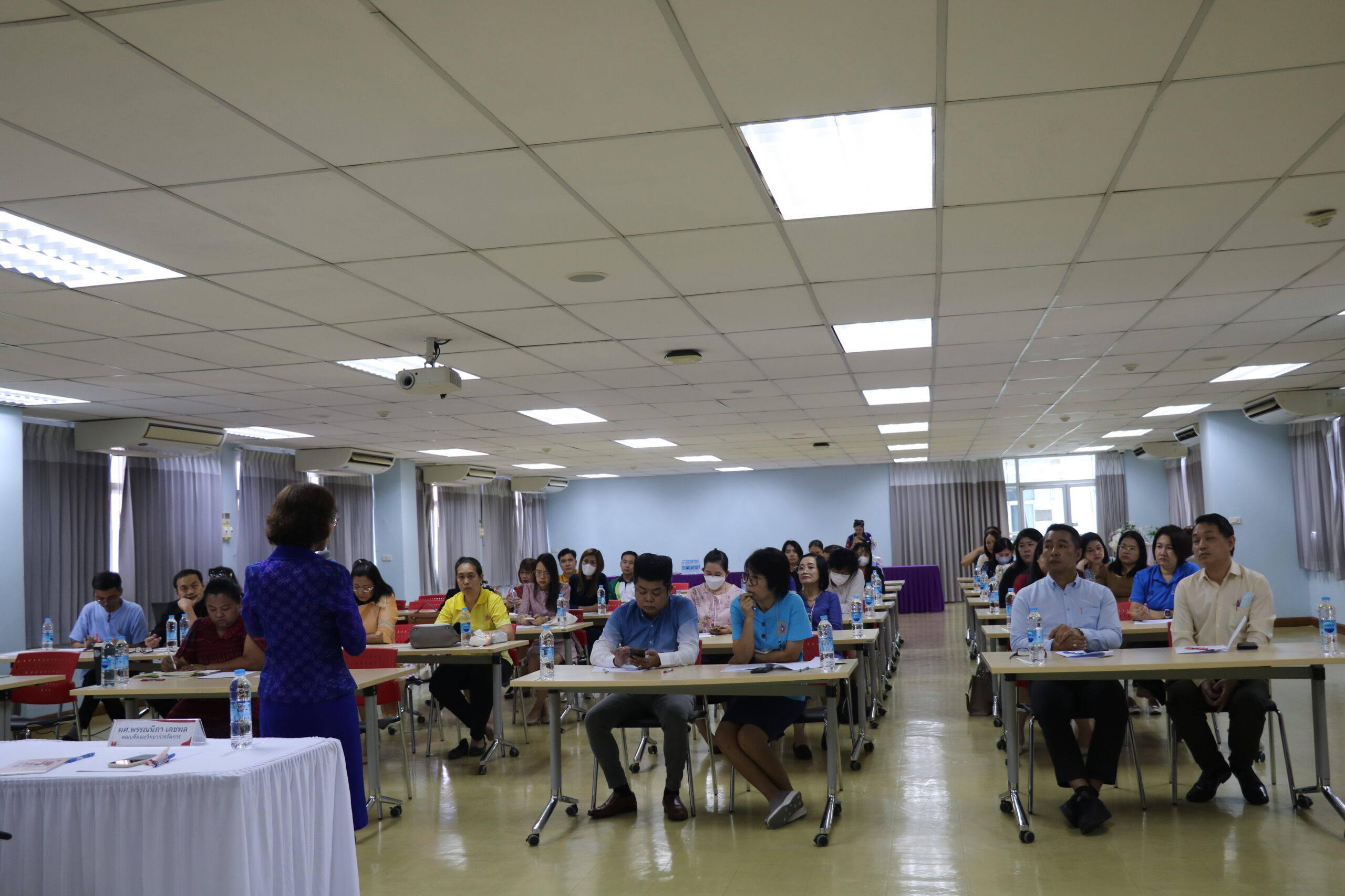 วันที่ 16 สิงหาคม 2567 ผศ.พรรณนิภา เดชพล คณบดี คณะวิทยาการจัดการ เป็นประธานในพิธีเปิดโครงแลกเปลี่ยนเรียนรู้แนวทางการพัฒนาคุณภาพการศึกษา และการพัฒนาหลักสูตร/ปรับปรุงหลักสูตร คณะวิทยาการจัดการ ให้แก่ คณาจารย์และบุคลากร จำนวน 44 คน โดยมี วัตถุประสงค์ 1. เพื่อชี้แจงนโยบายแนวทางการพัฒนาคุณภาพการศึกษาระดับอุดมศึกษา และการพัฒนาหลักสูตร/ปรับปรุงหลักสูตร 2. เพื่อแลกเปลี่ยนเรียนรู้การพัฒนาหลักสูตร/ปรับปรุงหลักสูตร 3. เพื่อแลกเปลี่ยนเรียนรู้การจัดเก็บข้อมูลและการเขียนรายงานการประกันคุณภาพการศึกษาภายในตามเกณฑ์ AUN-QA บรรยาย นโยบายแนวทางการพัฒนาตามหลักการประกันคุณภาพการศึกษาระดับอุดมศึกษา และการพัฒนาหลักสูตร/ปรับปรุงหลักสูตร โดย ผศ.พรรณนิภา เดชพล อภิปราย การพัฒนาหลักสูตร/ปรับปรุงหลักสูตร การจัดเก็บข้อมูลและการเขียนรายงานการประเมินคุณภาพการศึกษาภายใน โดย 1. ผศ.ดร.ณัฏฐชา หน่อทอง 2. ผศ.นฤมลวรรณ สุขไมตรี ณ ห้องประชุมคณะวิทยาการจัดการ ชั้น 8 อาคาร 22 มหาวิทยาลัยราชภัฏเทพสตรี