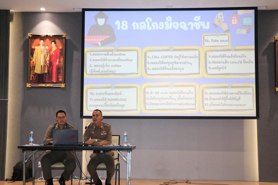 วันที่ 28 สิงหาคม 2567 คณะวิทยาการจัดการ จัดโครงการการรู้เท่าทันสื่อและสารสนเทศในยุคดิจิทัล ให้แก่นักศึกษา จำนวน 200 คน โดยคณะวิทยาการจัดการจัดการเรียนการสอนในรายวิชาการรู้เท่าทันสื่อและสารสนเทศ (ศท 0022703) มีวัตถุประสงค์เพื่อให้นักศึกษามีความรู้ความเข้าใจเกี่ยวกับรูปแบบอาชญากรรมทางไซเบอร์ในสังคมยุคดิจิทัล การสื่ออย่างสร้างสรรค์ ไม่กระทำผิดกฎหมาย และใช้ชีวิตในสังคมยุคดิจิทัลอย่างมีความรู้และไม่ตกเป็นเหยื่อของมิจฉาชีพ ได้รับเกียรติจาก พ.ต.ท จีระวัฒน์ ภูตาเพิศ และว่าที่ ร.ต.ต. ธรรมปพน คำยศ เป็นวิทยากรบรรยายในหัวข้อ รูปแบบอาชญากรรมทางไซเบอร์ในสังคมยุคดิจิทัล และการป้องกันตัวเองจากการตกเป็นเหยื่อ ณ ห้องประชุมพระเพทราชา ชั้น 3 อาคารรัตนเทพสตรี มหาวิทยาลัยราชภัฏเทพสตรี