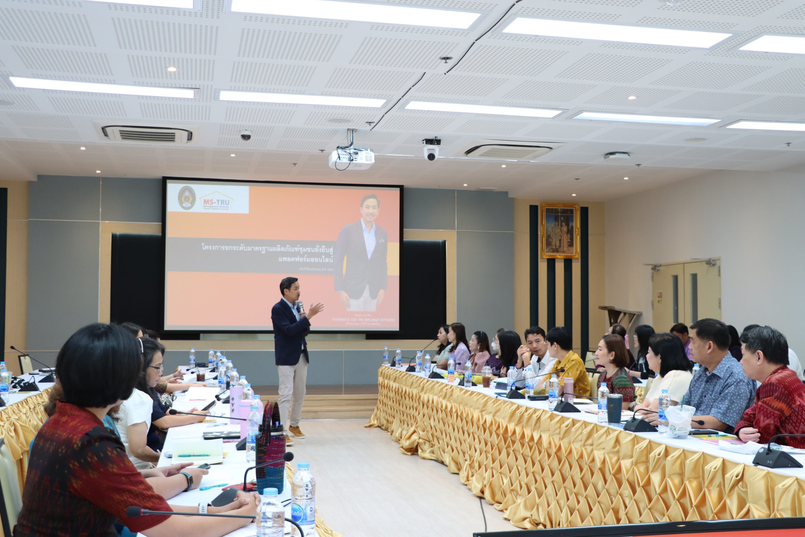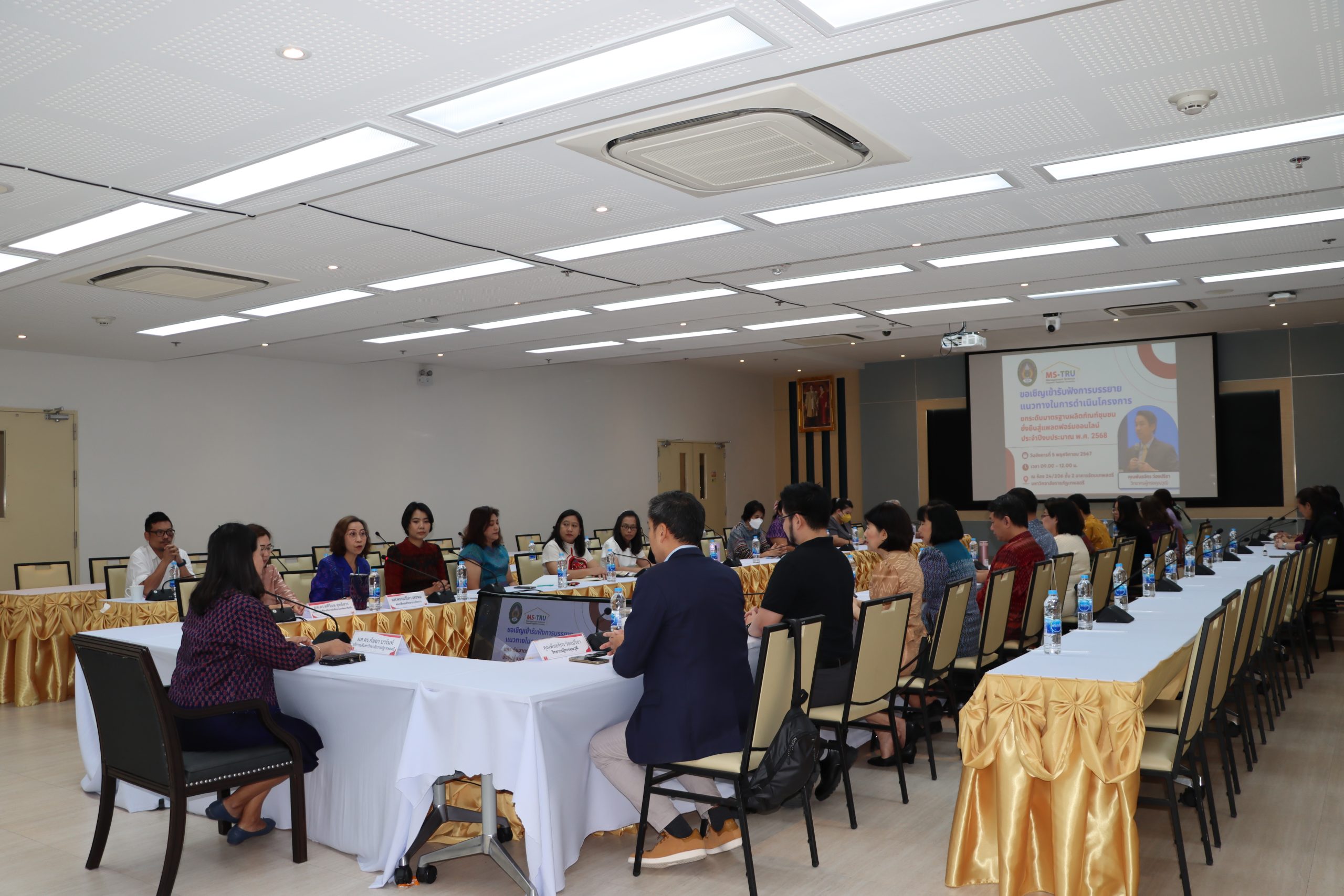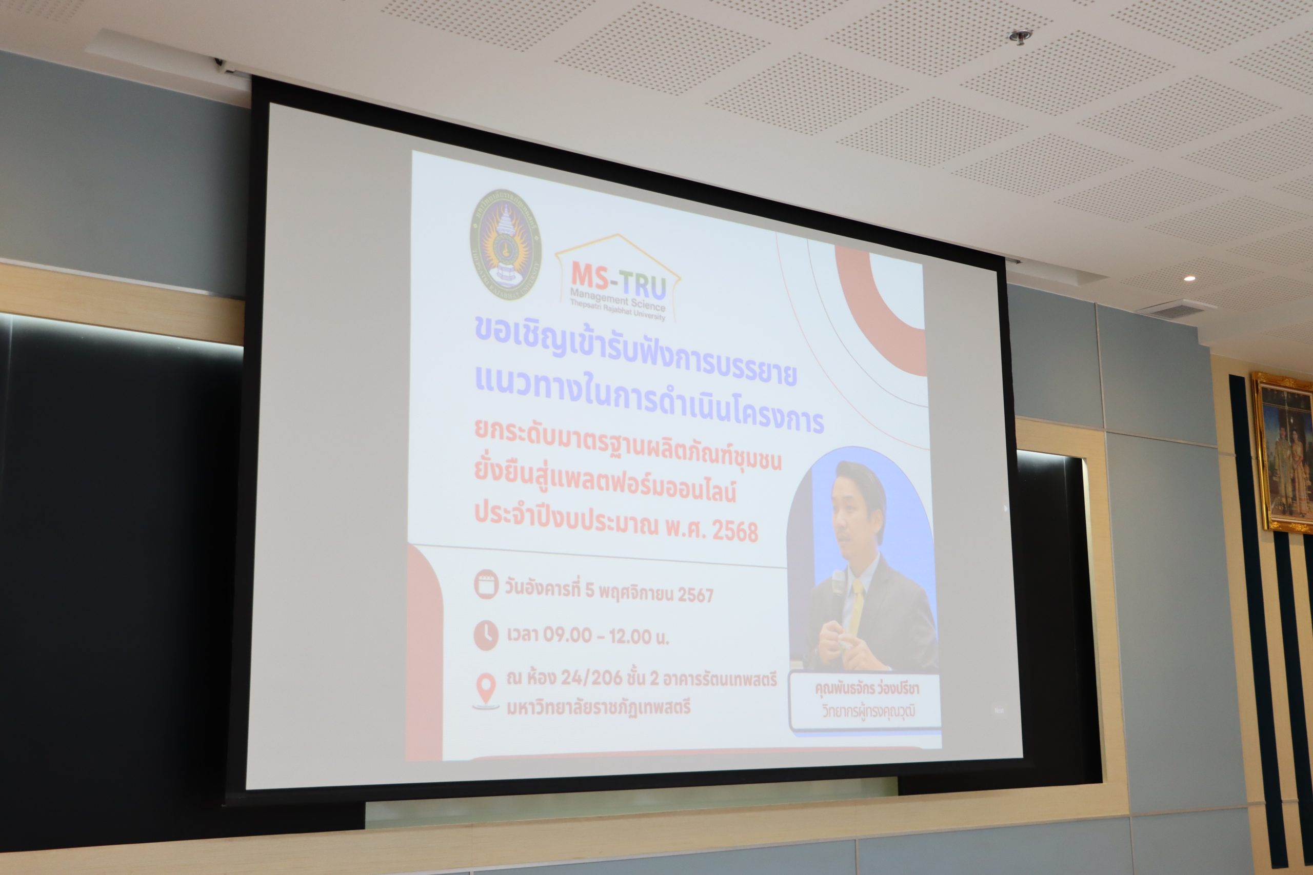 วันที่ 5 พฤศจิกายน 2567 คณะวิทยาการจัดการ จัดโครงการ การประชุม กำกับ ติดตาม ประเมินผลและเผยแพร่ผลการดำเนินงานโครงการ โดยได้รับเกียรติจาก ผศ.ดร.กันยา บาร์นท์ อธิการบดีมหาวิทยาลัยราชภัฏเทพสตรี เป็นประธานเปิดโครงการ และมอบนโยบายในการดำเนินงานโครงการยกระดับมาตรฐานผลิตภัณฑ์ชุมชน ยั่งยืนสู่แพลตฟอร์มออนไลน์ ประจำปีงบประมาณ พ.ศ. 2568 และ อ.ดร.สมชาย วชิรปัญญาวงศ์ รองอธิการบดีฝ่ายวางแผนและวิจัย ได้ชี้แจงเรื่องตัวชี้วัดและกรอบแนวทางในการดำเนินงานโครงการยกระดับมาตรฐานผลิตภัณฑ์ชุมชน ยั่งยืนสู่แพลตฟอร์มออนไลน์ ประจำปีงบประมาณ พ.ศ. 2568 ผศ.ศศิวิมล สุทธิสาร รองอธิการบดีฝ่ายกิจการนักศึกษาและพัฒนาท้องถิ่น ได้กล่าวเรื่อง ความสำคัญของนักศึกษากับการดำเนินงานโครงการยกระดับมาตรฐานผลิตภัณฑ์ชุมชน ยั่งยืนสู่แพลตฟอร์มออนไลน์ ประจำปีงบประมาณ พ.ศ. 2568 ทั้งนี้ได้รับเกียรติจาก คุณพันธจักร ว่องปรีชา วิทยากรผู้ทรงคุณวุฒิ บรรยายพิเศษ เรื่อง แนวทางในการดำเนินโครงการยกระดับมาตรฐานผลิตภัณฑ์ชุมชน ยั่งยืนสู่แพลตฟอร์มออนไลน์ ประจำปีงบประมาณ พ.ศ. 2568 ณ ห้อง 24/206 ชั้น 2 อาคารรัตนเทพสตรี มหาวิท