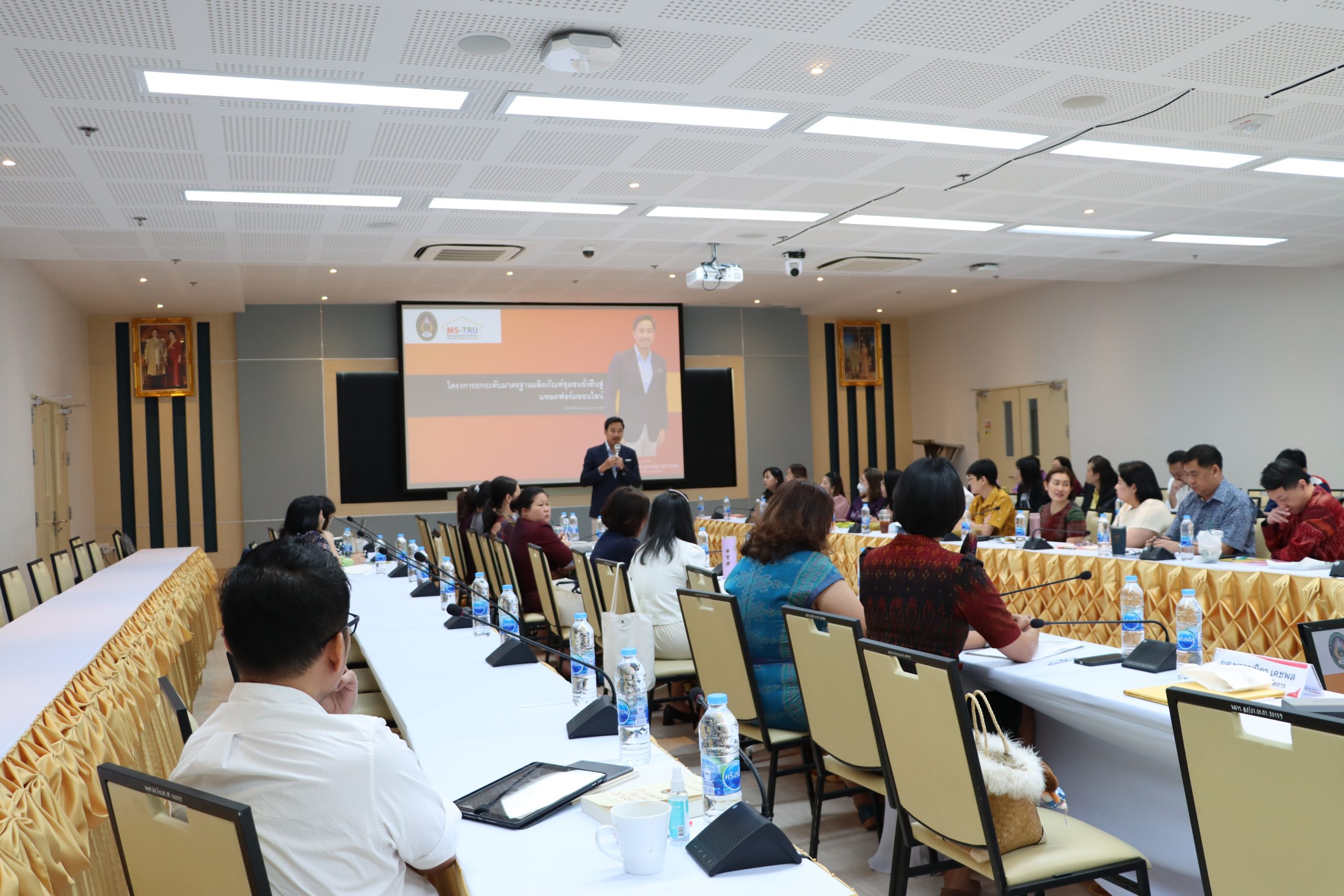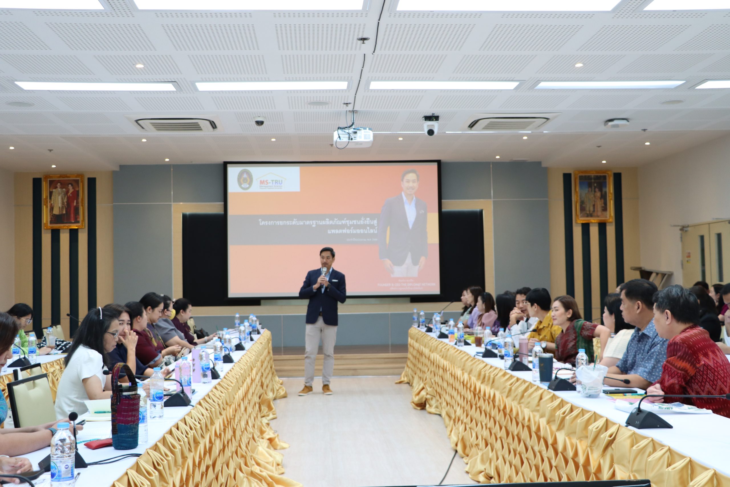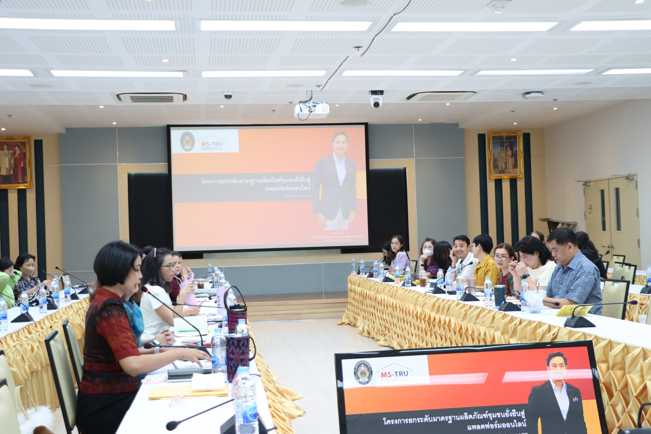 วันที่ 5 พฤศจิกายน 2567 คณะวิทยาการจัดการ จัดโครงการ การประชุม กำกับ ติดตาม ประเมินผลและเผยแพร่ผลการดำเนินงานโครงการ โดยได้รับเกียรติจาก ผศ.ดร.กันยา บาร์นท์ อธิการบดีมหาวิทยาลัยราชภัฏเทพสตรี เป็นประธานเปิดโครงการ และมอบนโยบายในการดำเนินงานโครงการยกระดับมาตรฐานผลิตภัณฑ์ชุมชน ยั่งยืนสู่แพลตฟอร์มออนไลน์ ประจำปีงบประมาณ พ.ศ. 2568 และ อ.ดร.สมชาย วชิรปัญญาวงศ์ รองอธิการบดีฝ่ายวางแผนและวิจัย ได้ชี้แจงเรื่องตัวชี้วัดและกรอบแนวทางในการดำเนินงานโครงการยกระดับมาตรฐานผลิตภัณฑ์ชุมชน ยั่งยืนสู่แพลตฟอร์มออนไลน์ ประจำปีงบประมาณ พ.ศ. 2568 ผศ.ศศิวิมล สุทธิสาร รองอธิการบดีฝ่ายกิจการนักศึกษาและพัฒนาท้องถิ่น ได้กล่าวเรื่อง ความสำคัญของนักศึกษากับการดำเนินงานโครงการยกระดับมาตรฐานผลิตภัณฑ์ชุมชน ยั่งยืนสู่แพลตฟอร์มออนไลน์ ประจำปีงบประมาณ พ.ศ. 2568 ทั้งนี้ได้รับเกียรติจาก คุณพันธจักร ว่องปรีชา วิทยากรผู้ทรงคุณวุฒิ บรรยายพิเศษ เรื่อง แนวทางในการดำเนินโครงการยกระดับมาตรฐานผลิตภัณฑ์ชุมชน ยั่งยืนสู่แพลตฟอร์มออนไลน์ ประจำปีงบประมาณ พ.ศ. 2568 ณ ห้อง 24/206 ชั้น 2 อาคารรัตนเทพสตรี มหาวิท