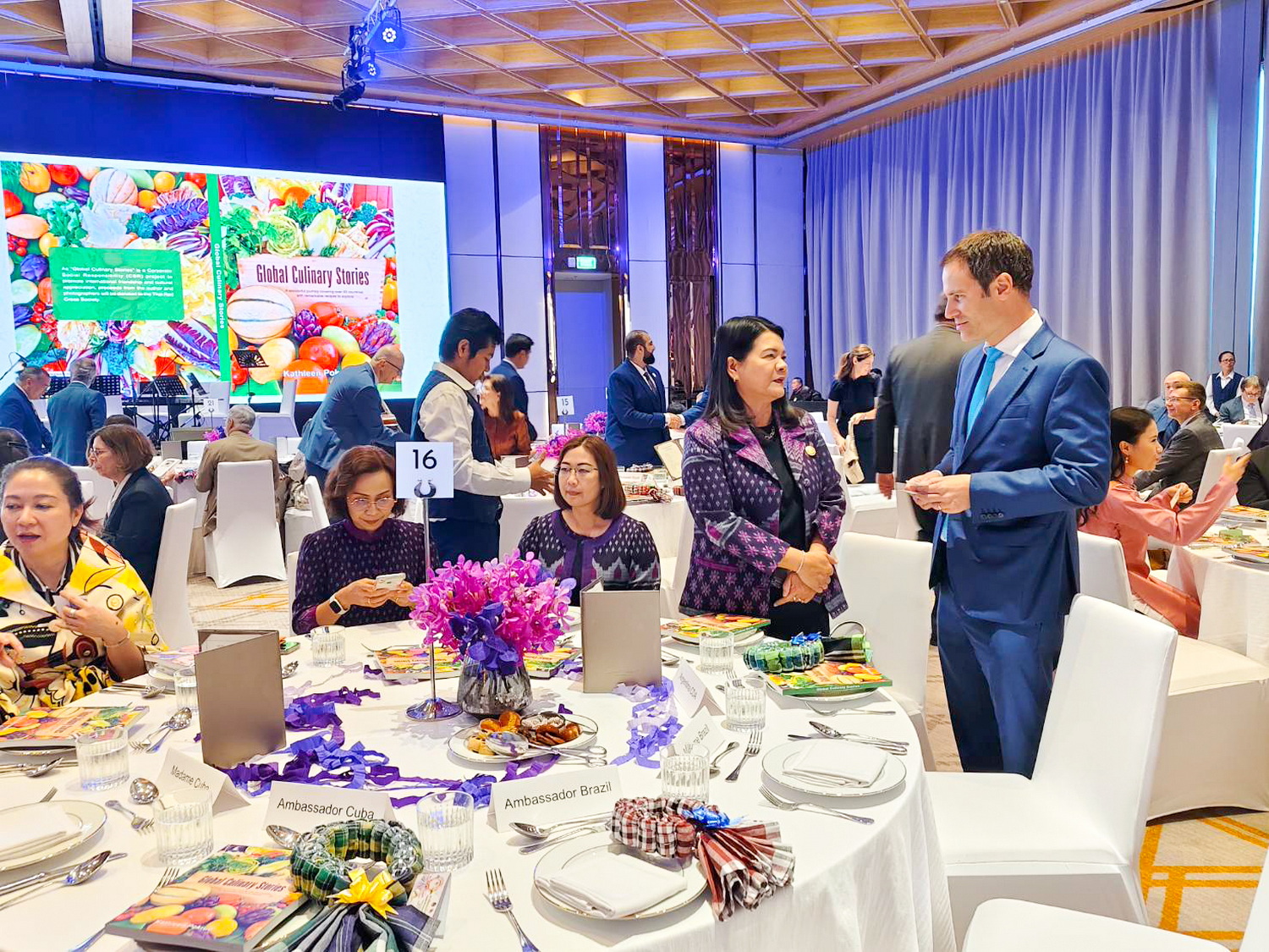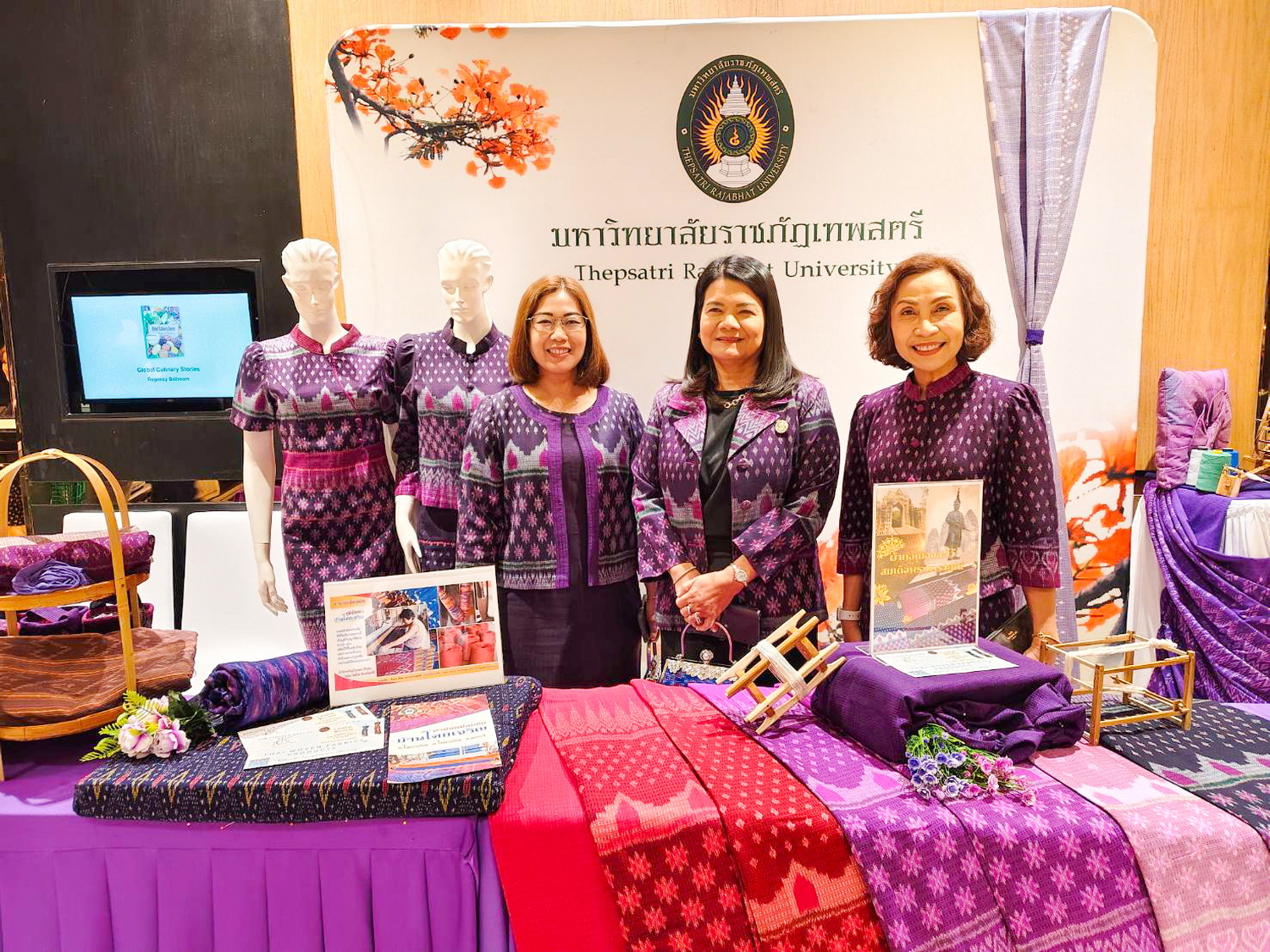 วันที่ 3 ธันวาคม พ.ศ. 2567 ผศ.พรรณนิภา เดชพล คณบดีคณะวิทยาการจัดการ พร้อมด้วยอาจารย์และบุคลากร ร่วมงาน เปิดตัวหนังสือ Global Culinary Stories นำโดย ผศ.ดร.กันยา บาร์นท์ อธิการบดีมหาวิทยาลัยราชภัฏเทพสตรี ซึ่งหนังสือ Global Culinary Stories เป็นหนังสือที่มีเนื้อหาเกี่ยวกับการนำเสนอแนวคิดและมุมมองจากนักคิดชั้นนำระดับ Exclusive เช่น นักการทูต นักธุรกิจที่ประสบความสำเร็จ รวมถึงเรื่องข่าวสาร อาหาร การท่องเที่ยว วัฒนธรรมต่าง ๆ โดยมี คุณรัศม์ ชาลีจันทร์ ผู้ช่วยรัฐมนตรีประจำกระทรวงการต่างประเทศ เป็นประธานในพิธี ซึ่งภายในงานมีคณบดีทูต ผู้แทนจากสถานเอกอครราชทูตต่างประเทศประจำประเทศไทย ภาครัฐ และภาคเอกชนเข้าร่วมงานกว่า 200 คน โอกาสนี้ มหาวิทยาลัยราชภัฏเทพสตรีได้เข้าร่วมจัดนิทรรศการแสดงผลงานผ้าทอ 3 บุรี และผลิตภัณฑ์จากผ้า ซึ่งเป็นผลงานที่ผู้บริหาร คณาจารย์ และนักศึกษาของคณะวิทยาการจัดการ ได้ร่วมกับชุมชนในพื้นที่จังหวัดลพบุรี สิงห์บุรี และสระบุรี ในการออกแบบลวดลายผ้าและพัฒนาการถักทอผ้าขึ้นณ โรงแรม ไฮแอท รีเจนซี่ สุขุมวิท กรุงเทพฯ