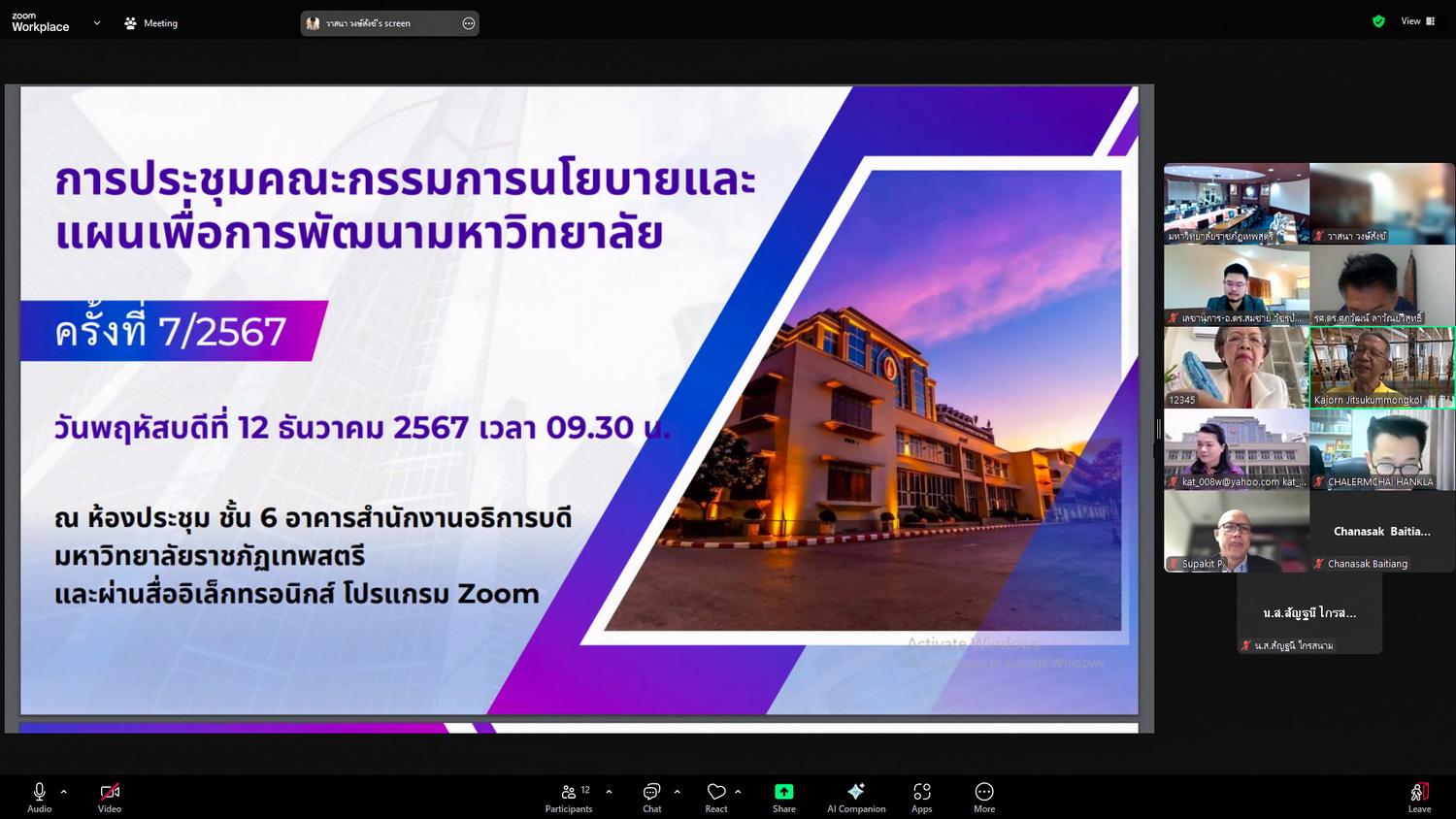 ผศ.พรรณนิภา เดชพล คณบดีคณะวิทยาการจัดการเข้าร่วมประชุมคณะกรรมการนโยบายและแผนเพื่อการพัฒนามหาวิทยาลัย ครั้งที่ 7/2567 ในรูปแบบการประชุมระบบ Hybrid Meeting