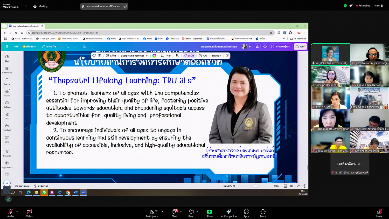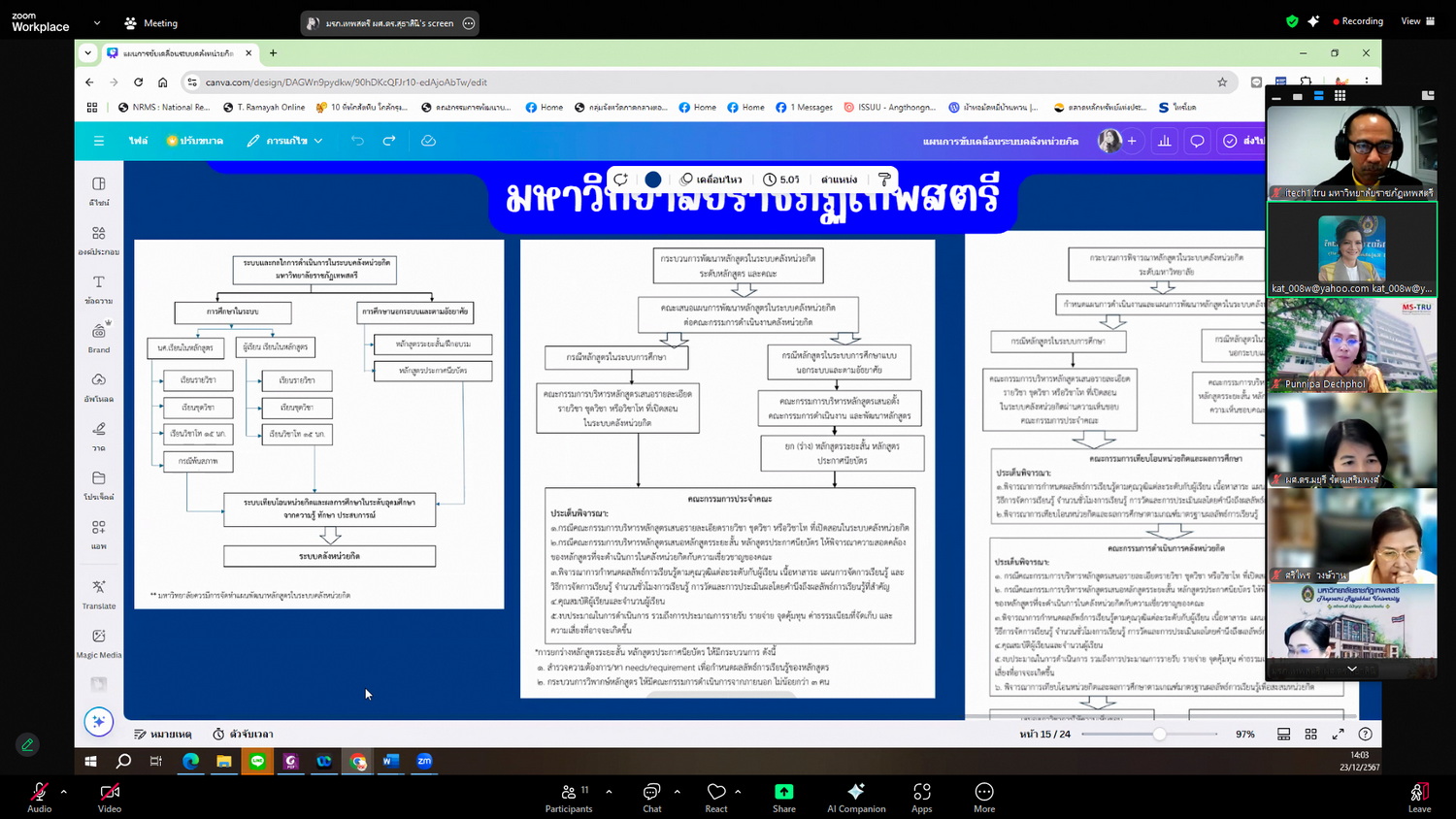 ผศ.พรรณนิภา เดชพล คณบดีคณะวิทยาการจัดการ เข้าร่วม ประชุมคณะกรรมการดำเนินงานคลังหน่วยกิต มหาวิทยาลัยราชภัฏเทพสตรี ในรูปแบบการประชุมระบบ Hybrid Meeting