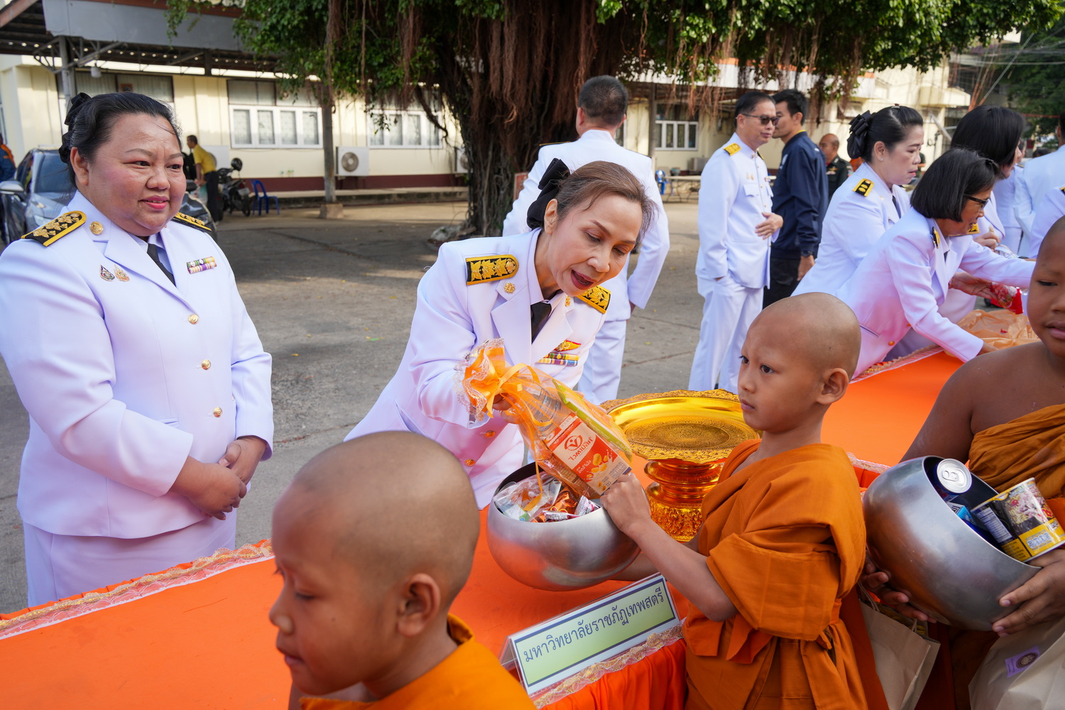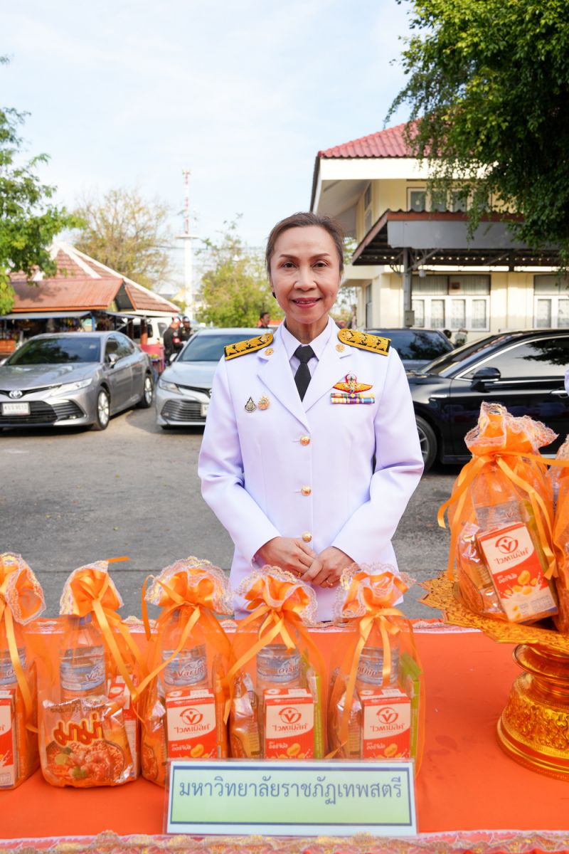 ผศ.พรรณนิภา เดชพล คณบดีคณะวิทยาการจัดการ พร้อมด้วย ผศ.นฤมลวรรณ สุขไมตรี รองคณบดีฝ่ายบริหาร คณะวิทยาการจัดการ เป็นผู้แทนมหาวิทยาลัยราชภัฏเทพสตรี ร่วมพิธีเจริญพระพุทธมนต์และทำบุญตักบาตรพระสงฆ์