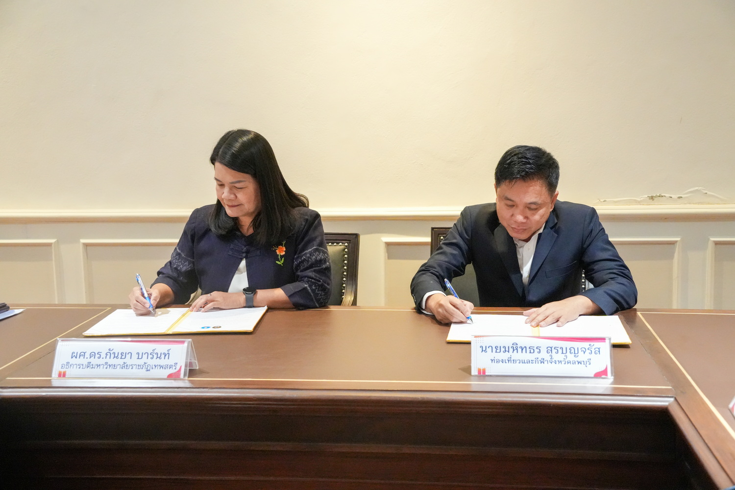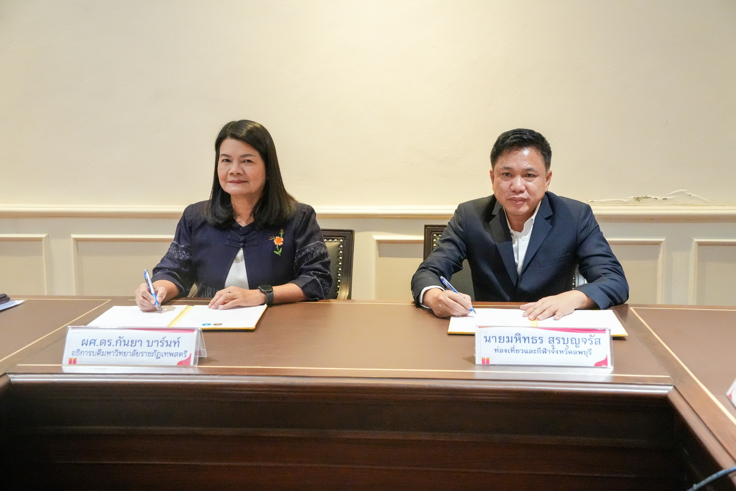 พิธีลงนามบันทึกข้อตกลงความร่วมมือทางวิชาการ ระหว่าง มรภ.เทพสตรี กับ สนง.การท่องเที่ยวและกีฬา จ.ลพบุรี