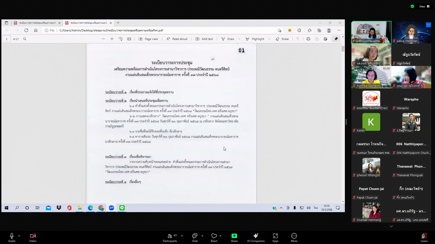 วันที่ 19 กุมภาพันธ์ พ.ศ. 2568 ผศ.พรรณนิภา เดชพล คณบดีคณะวิทยาการจัดการ เข้าร่วม ประชุมเตรียมความพร้อมการจัดโครงการประเพณีวัฒนธรรม ดนตรีศิลป์ งานแผ่นดินสมเด็จพระนารายณ์มหาราช ครั้งที่ 37 ประจำปี พ.ศ. 2568 ในรูปแบบการประชุมระบบ Hybrid Meeting โดย ผศ.ดร.กันยา บาร์นท์ อธิการบดีมหาวิทยาลัยราชภัฏเทพสตรี เป็นประธานการประชุม ร่วมกับคณะกรรมการฝ่ายต่าง ๆ เพื่อหารือร่วมกันในการเตรียมความพร้อมการจัดงาน โดยโครงการประเพณีวัฒนธรรม ดนตรีศิลป์ งานแผ่นดินสมเด็จพระนารายณ์มหาราช ครั้งที่ 37 ประจำปี พ.ศ. 2568 ภายใต้หัวข้อ “วัฒนธรรมไทย-เทศ ฝรั่งเศส-อยุธยา” กำหนดจัดขึ้นในวันที่ 21 กุมภาพันธ์ พ.ศ. 2568 ณ เวทีกลาง งานแผ่นดินสมเด็จพระนารายณ์มหาราช