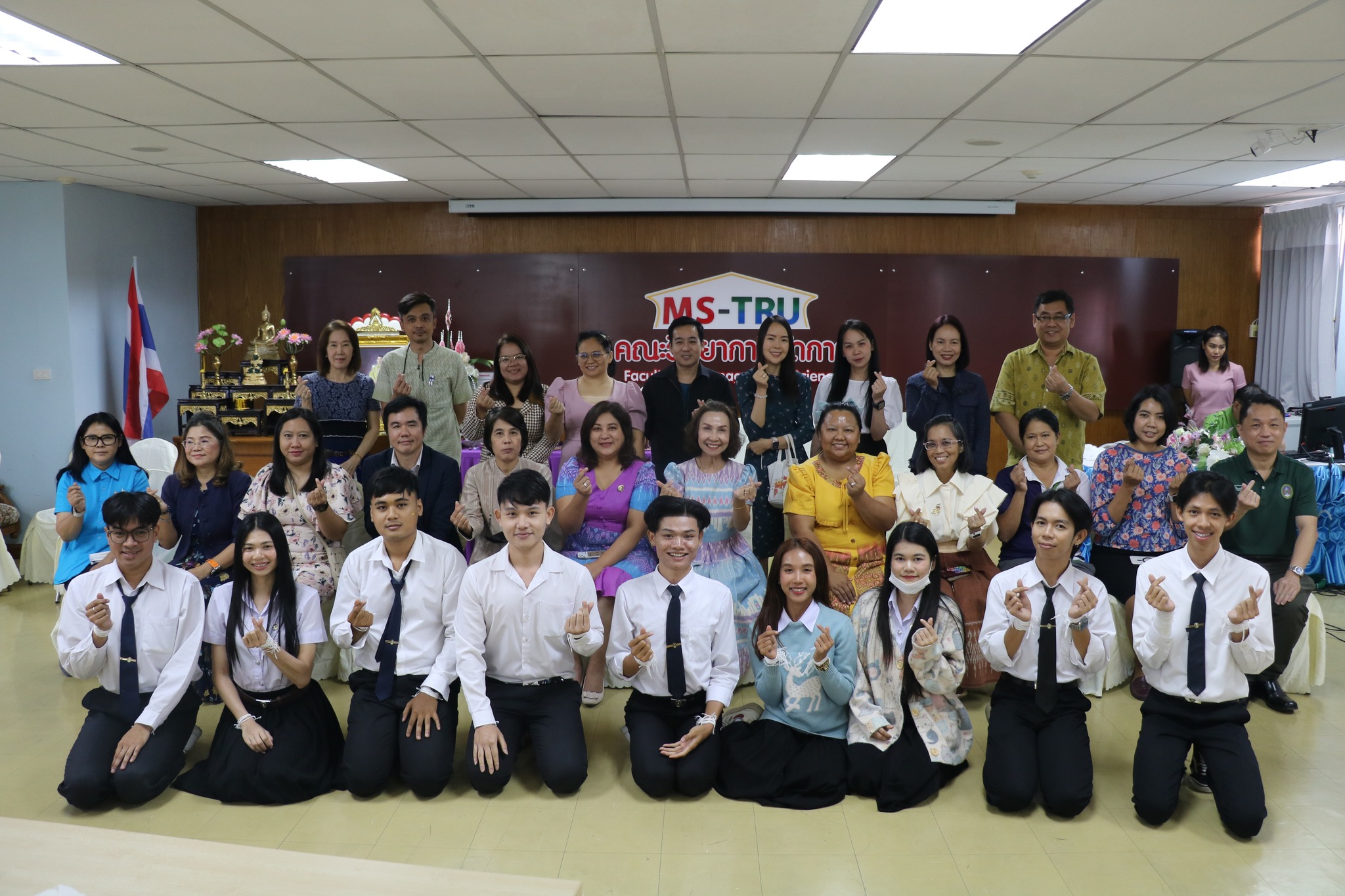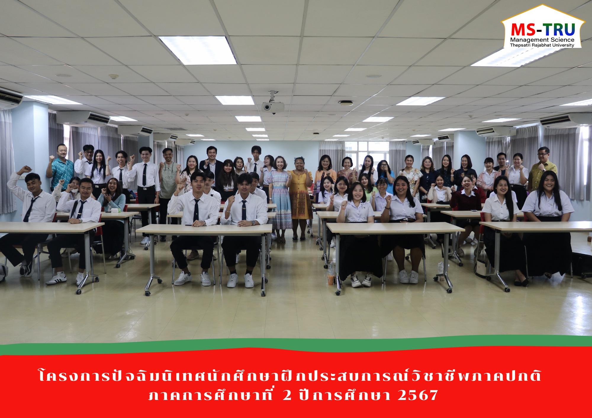 วันที่ 26 กุมภาพันธ์ 2568 ผศ.พรรณนิภา เดชพล คณบดีคณะวิทยาการจัดการ เป็นประธานพิธีเปิดโครงการปัจฉิมนิเทศนักศึกษาฝึกประสบการณ์วิชาชีพภาคปกติ ภาคการศึกษาที่ 2 ปีการศึกษา 2567 ให้แก่นักศึกษาสาขาวิชาการจัดการโลจิสติกส์ สาขาวิชานิเทศศาสตร์ดิจิทัล สาขาวิชาการท่องเที่ยวและธุรกิจบริการ และนักศึกษาสมทบ จำนวน 65 คน มีวัตถุประสงค์เพื่อให้นักศึกษามีความรู้และแนวคิดสำหรับเป็นแนวทางในการทำงานร่วมกับผู้อื่นในสังคมได้อย่างมีประสิทธิภาพ และเสริมสร้างสมรรถนะในการปฏิบัติงานได้อย่างถูกต้อง โดยมี อาจารย์ ดร.สยามล เทพทา อาจารย์ประจำสาขาวิชาการท่องเที่ยวและธุรกิจบริการ เป็นวิทยากรบรรยายในหัวข้อ การพัฒนาบุคลิกภาพในการทำงานเพื่อรองรับการเปลี่ยนแปลงในอนาคต โอกาสนี้ได้มีการผูกข้อมือรับขวัญและมอบของที่ระลึกให้แก่นักศึกษาในโอกาสที่สำเร็จการศึกษา ณ ห้องประชุมคณะวิทยาการจัดการ ชั้น 8 อาคาร 22 คณะวิทยาการจัดการ มหาวิทยาลัยราชภัฏเทพสตรี