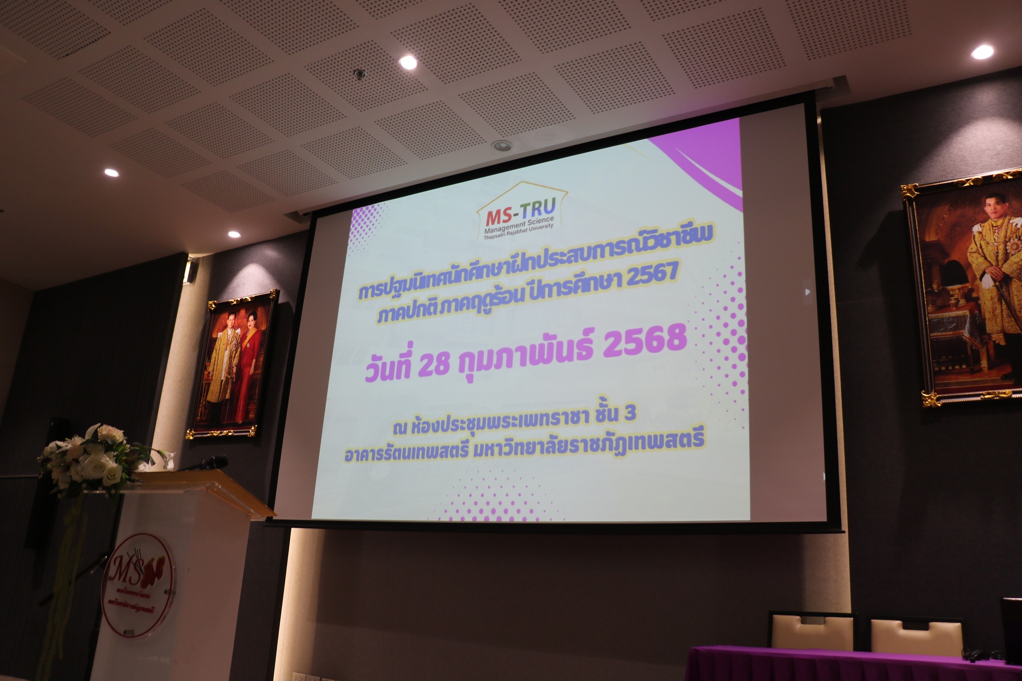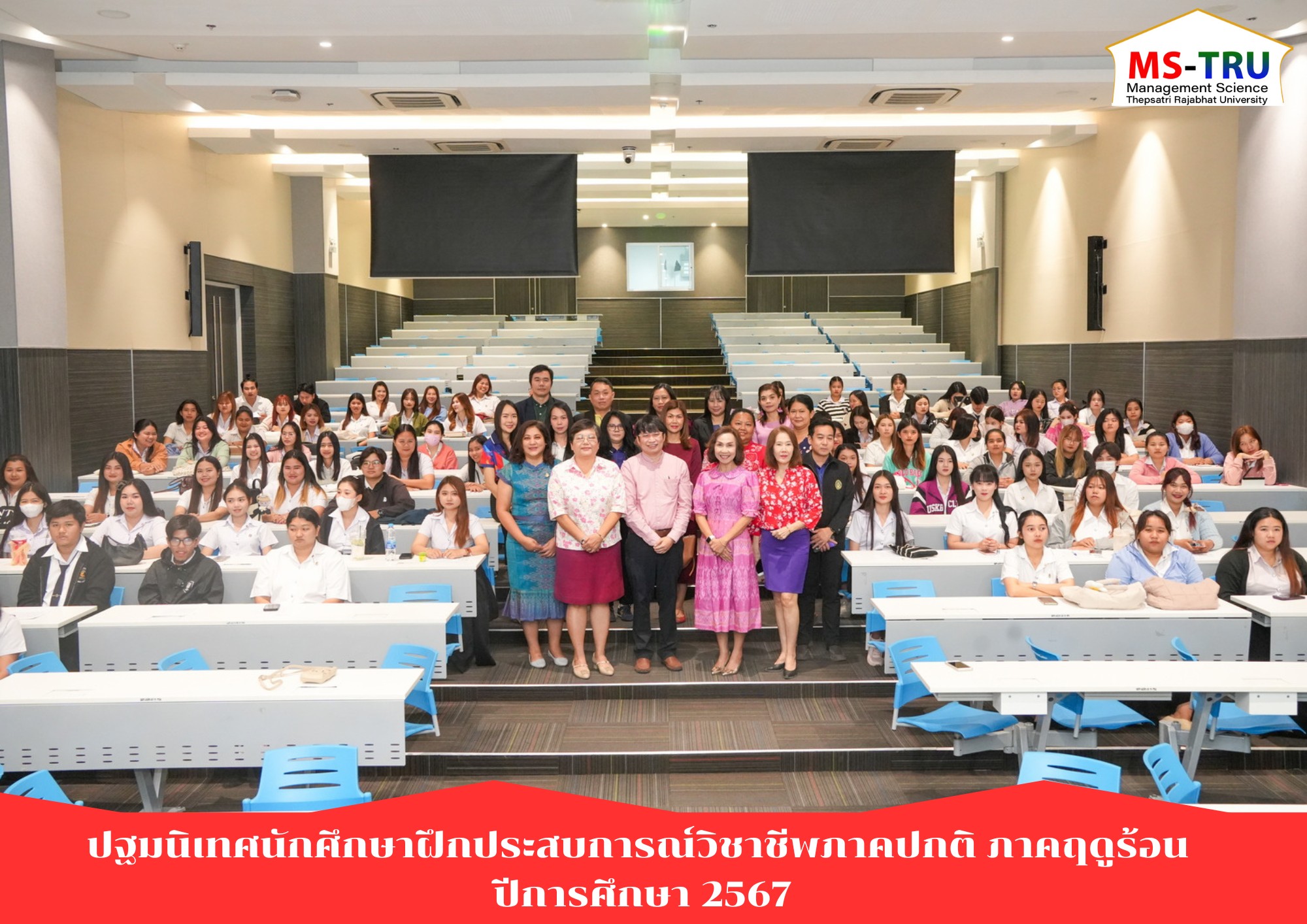 วันที่ 28 กุมภาพันธ์ 2568 ผศ.พรรณนิภา เดชพล คณบดีคณะวิทยาการจัดการ เป็นประธานพิธีเปิดการปฐมนิเทศนักศึกษาฝึกประสบการณ์วิชาชีพ ภาคปกติ ภาคการศึกษาฤดูร้อน ปีการศึกษา 2567 ให้แก่นักศึกษาจากสาขาวิชาบริหารธุรกิจ วิชาเอกการจัดการ วิชาเอกการตลาด วิชาเอกการจัดการธุรกิจดิจิทัล สาขาวิชาการจัดการโลจิสติกส์ สาขาวิชาการบัญชร และนักศึกษาสมทบ เข้าร่วมการปฐมนิเทศ จำนวน 100 คน เพื่อเป็นแนวทางในการเตรียมความพร้อมทักษะที่จำเป็นให้แก่นักศึกษา ให้มีความรู้ความเข้าใจ สามารถปรับตัวรับกับการเปลี่ยนแปลงเมื่อออกไปสู่สถานประกอบการได้อย่างมีประสิทธิภาพ โดยมี ผศ.ธัชพล ทีดี, ผศ.จุฑามาศ พรรณสมัย อาจารย์ประจำสาขาวิชารัฐประศาสนศาสตร์ คณะมนุษยศาสตร์และสังคมศาสตร์เป็นวิทยากรบรรยายในหัวข้อเรื่อง ทักษะการสื่อสารภายในองค์กรอย่างมีประสิทธิภาพ ผศ.นฤมลวรรณ สุขไมตรี รองคณบดีฝ่ายบริหาร คณะวิทยาการจัดการ บรรยายหัวข้อเรื่องการบันทึกข้อมูลการฝึกประสบการณ์วิชาชีพ และ อ.ชวลิต ศุภศักดิ์ธำรง ประธานหลักสูตรบริหารธุรกิจบัณฑิต คณะวิทยาการจัดการ บรรยายหัวข้อเรื่องคู่มือการจัดทำสารนิพนธ์ ณ ห้องประชุมพระเพทราชา ชั้น 3 อาคารรัตนเทพสตรี มหาวิทยาลัยราชภัฏเทพสตรี