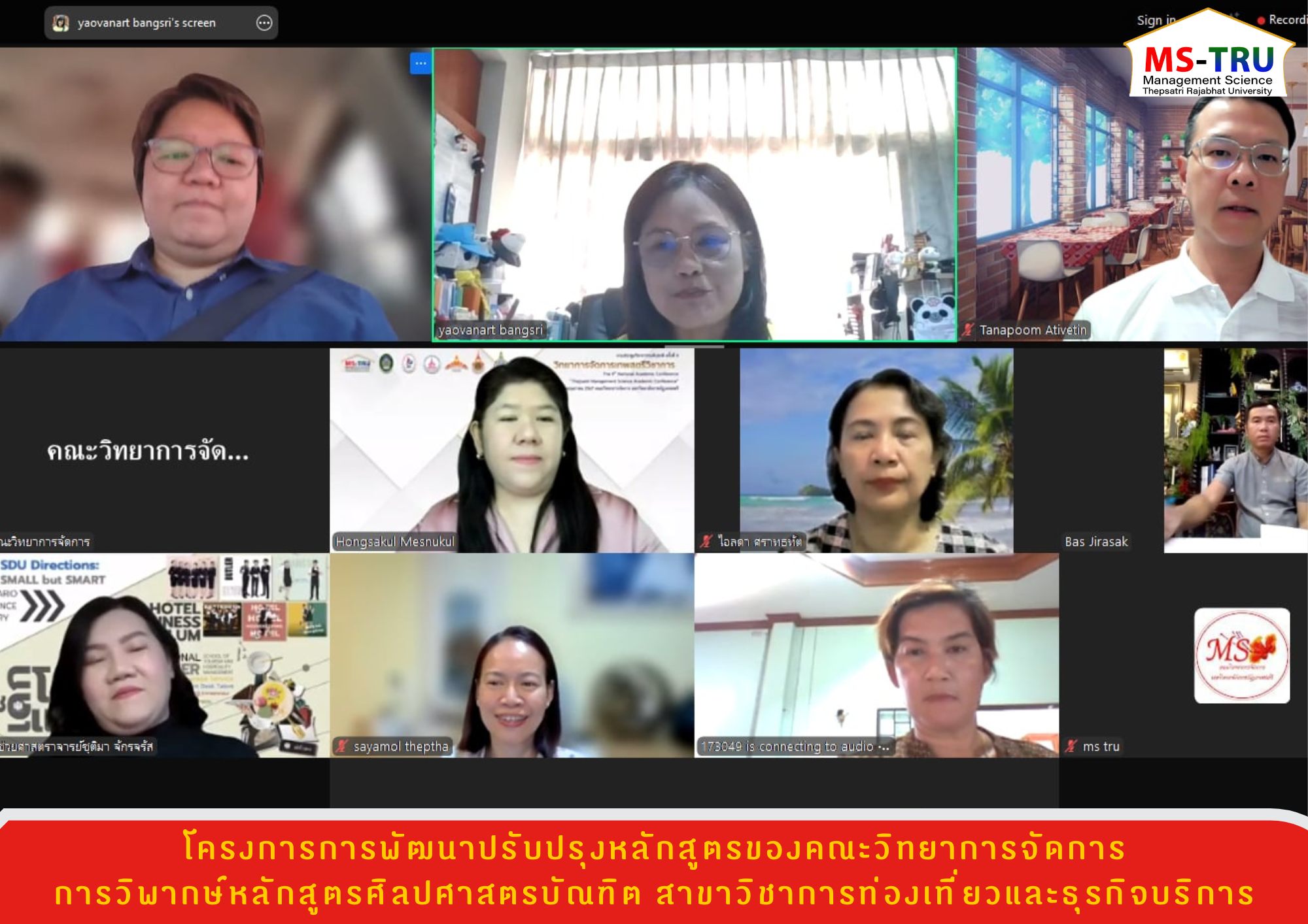 วันที่ 15 มีนาคม 2568 คณะวิทยาการจัดการ จัดโครงการการพัฒนาปรับปรุงหลักสูตรของคณะวิทยาการจัดการ โดยมีประธานหลักสูตร ผู้รับผิดชอบหลักสูตรศิลปศาสตรบัณฑิต สาขาวิชาการท่องเที่ยวและธุรกิจบริการ ร่วมวิพากษ์หลักสูตร มีวัตถุประสงค์เพื่อพัฒนาหลักสูตรปรับปรุงหลักสูตรของคณะให้มีความทันสมัย สนองตอบความต้องการของผู้เรียนส่งเสริมและพัฒนากระบวนการเรียนรู้ที่หลากหลาย และสนองตอบตามศักยภาพผู้เรียนรายบุคคล โดยมี ผศ.ดร.ธนภูมิ อติเวทิน, ผศ.ชุติมา จักรจรัส และ นางสาวธนัญยา มุทราอิศ เป็นวิทยากร ผ่านสื่ออิเล็กทรอนิกส์ Zoom Meeting ณ ห้องช่อยูงทอง ชั้น 2 อาคาร 22 คณะวิทยาการจัดการ มหาวิทยาลัยราชภัฏเทพสตรี