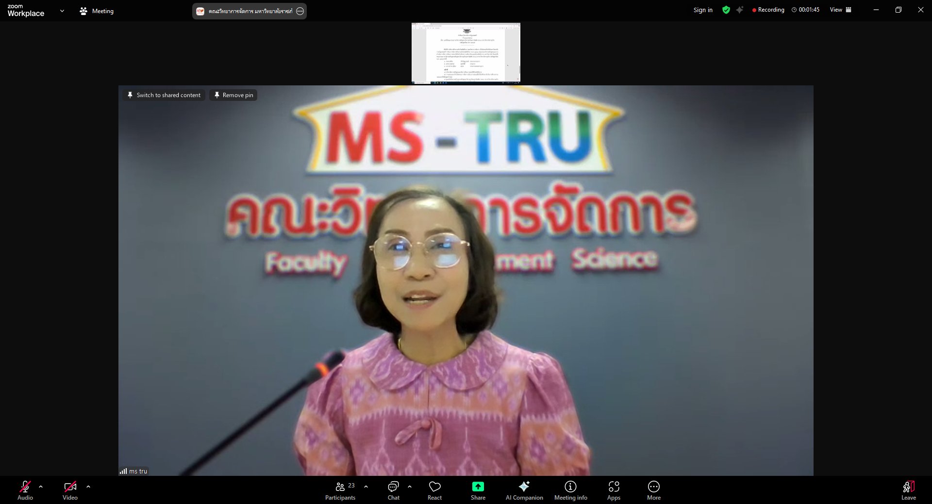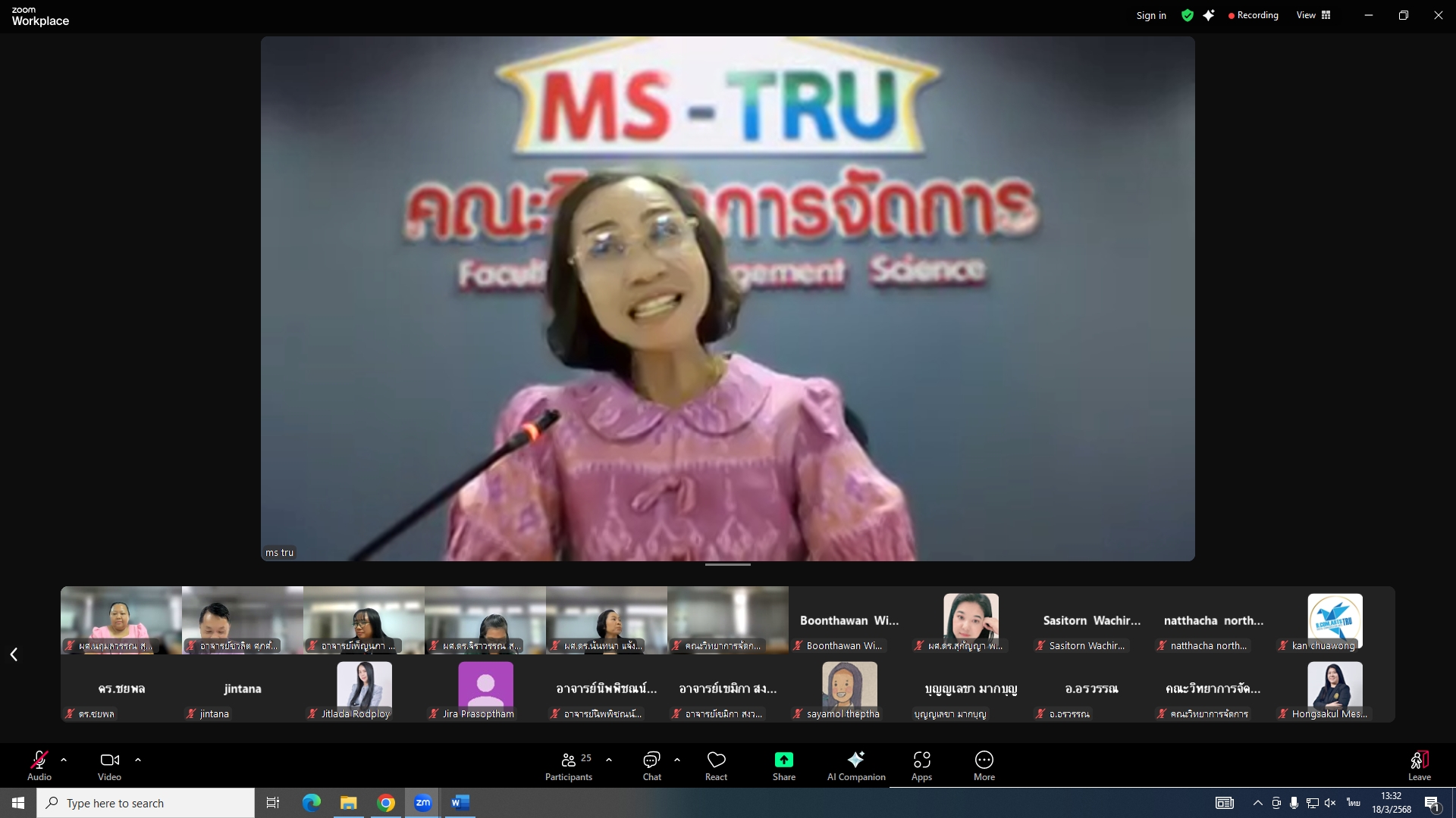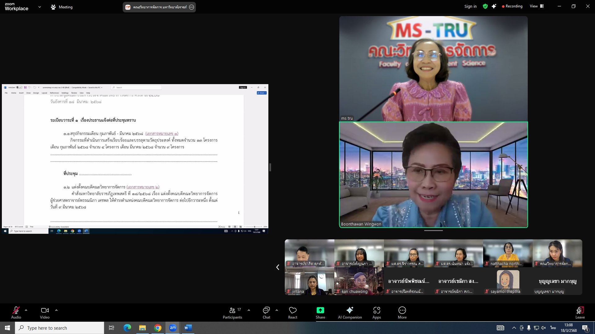 ผศ.พรรณนิภา เดชพล คณบดีคณะวิทยาการจัดการ เป็นประธานการประชุมคณะกรรมการประจำคณะวิทยาการจัดการ ครั้งที่ 3/2568 ในรูปแบบการประชุมระบบ Hybrid Meeting ณ ห้องช่อยูงทอง ชั้น 2 อาคาร 22 คณะวิทยาการจัดการ