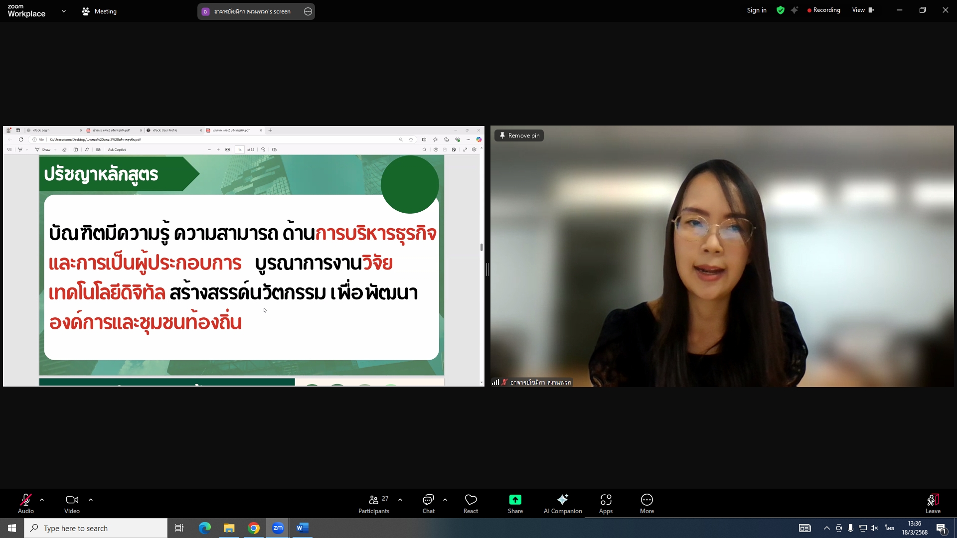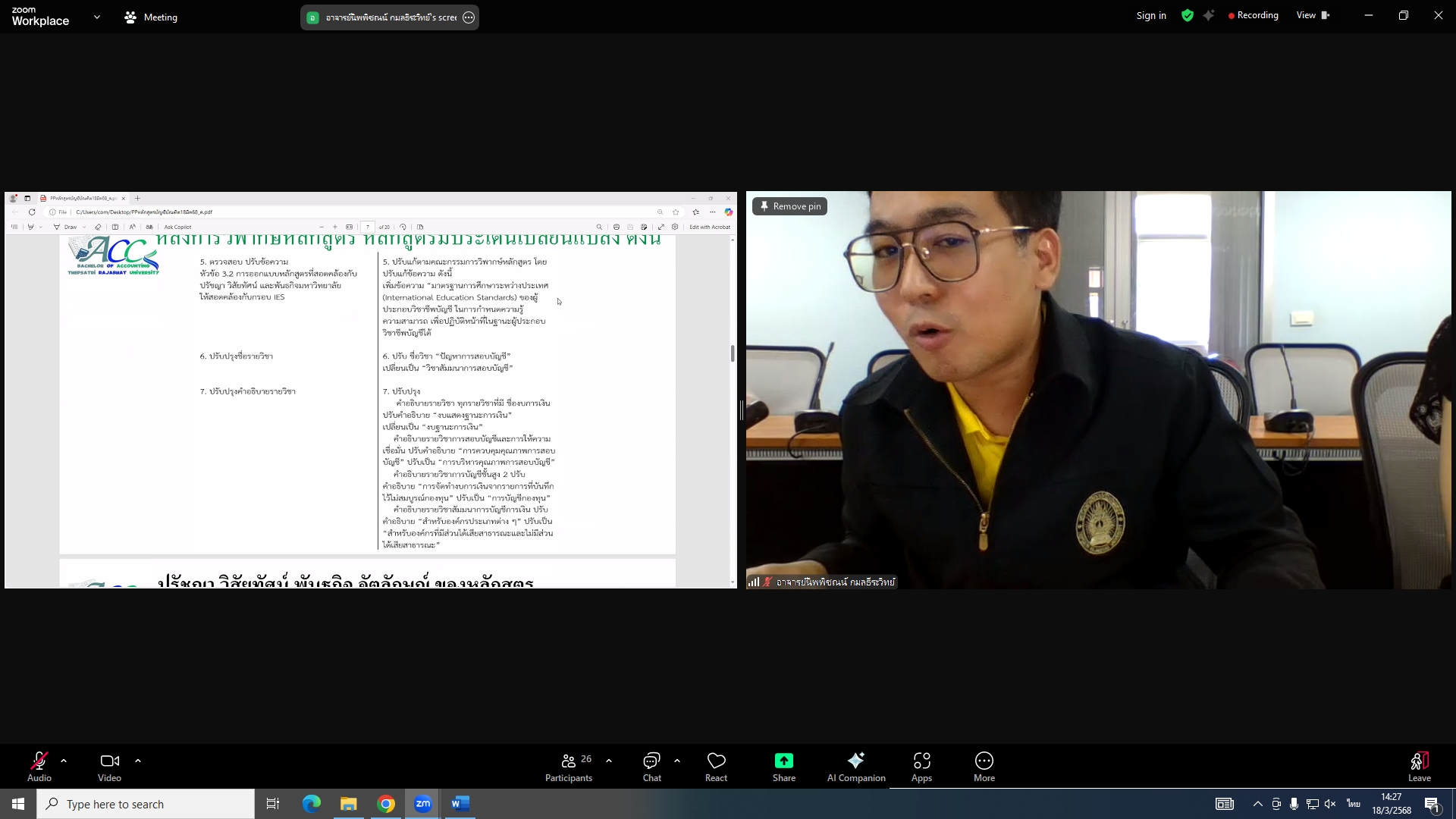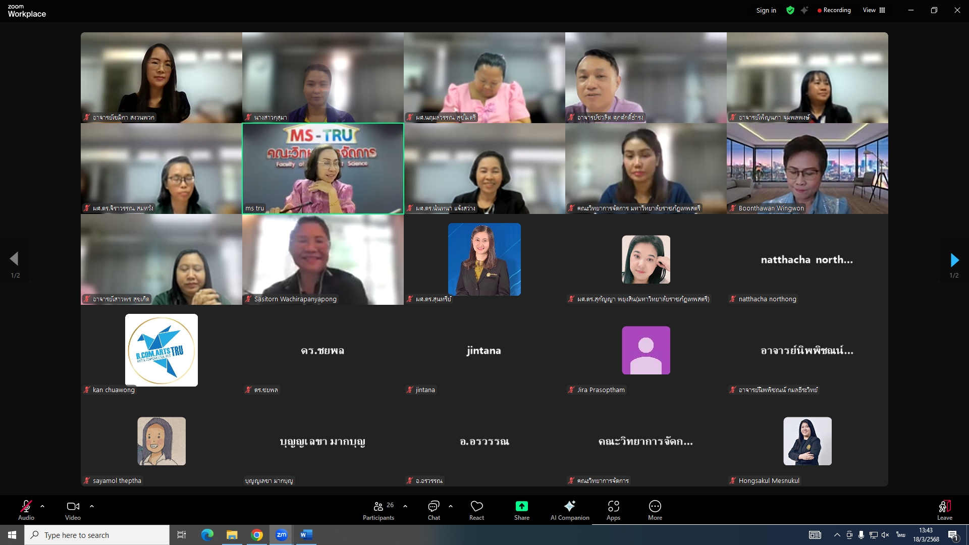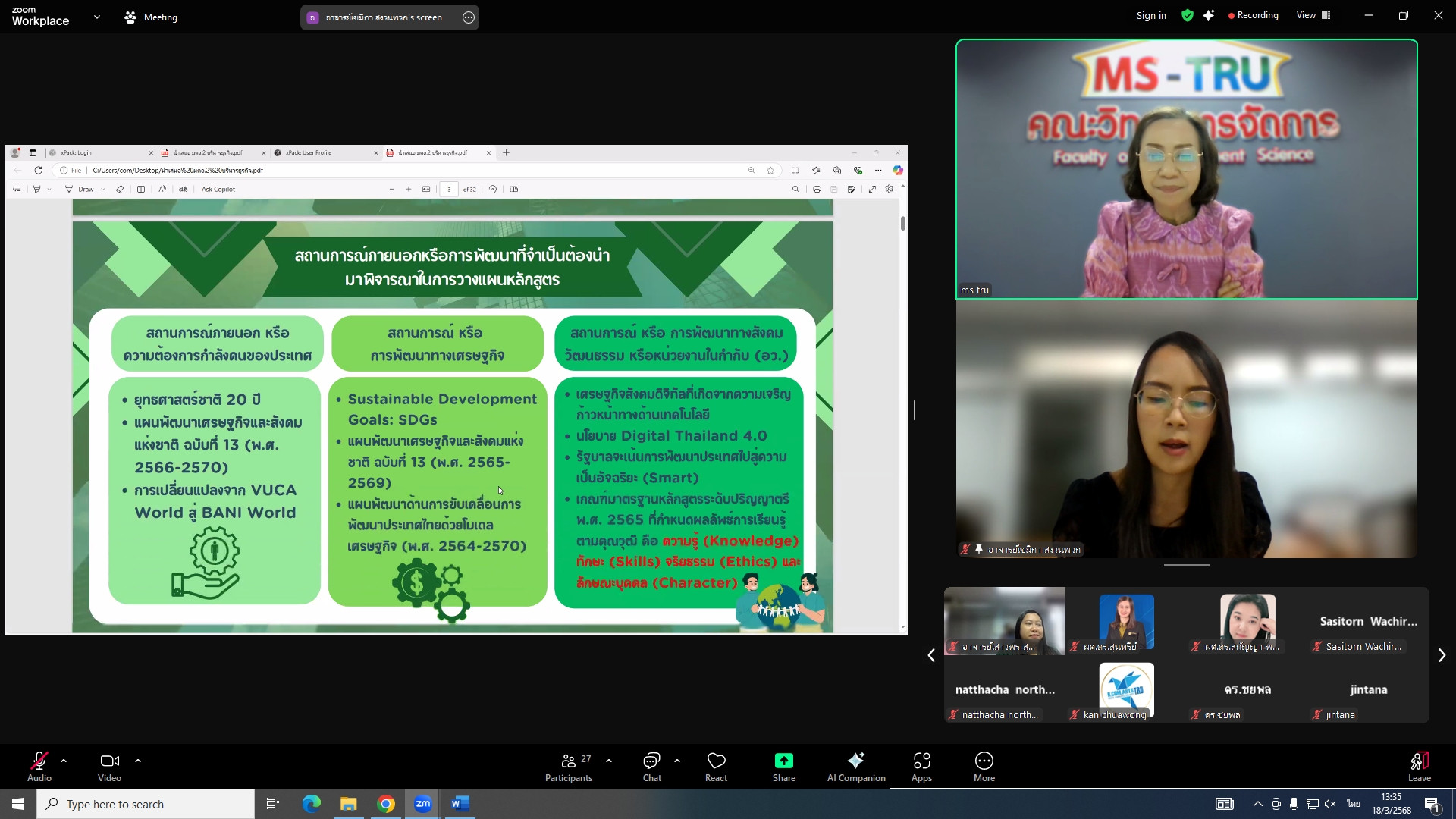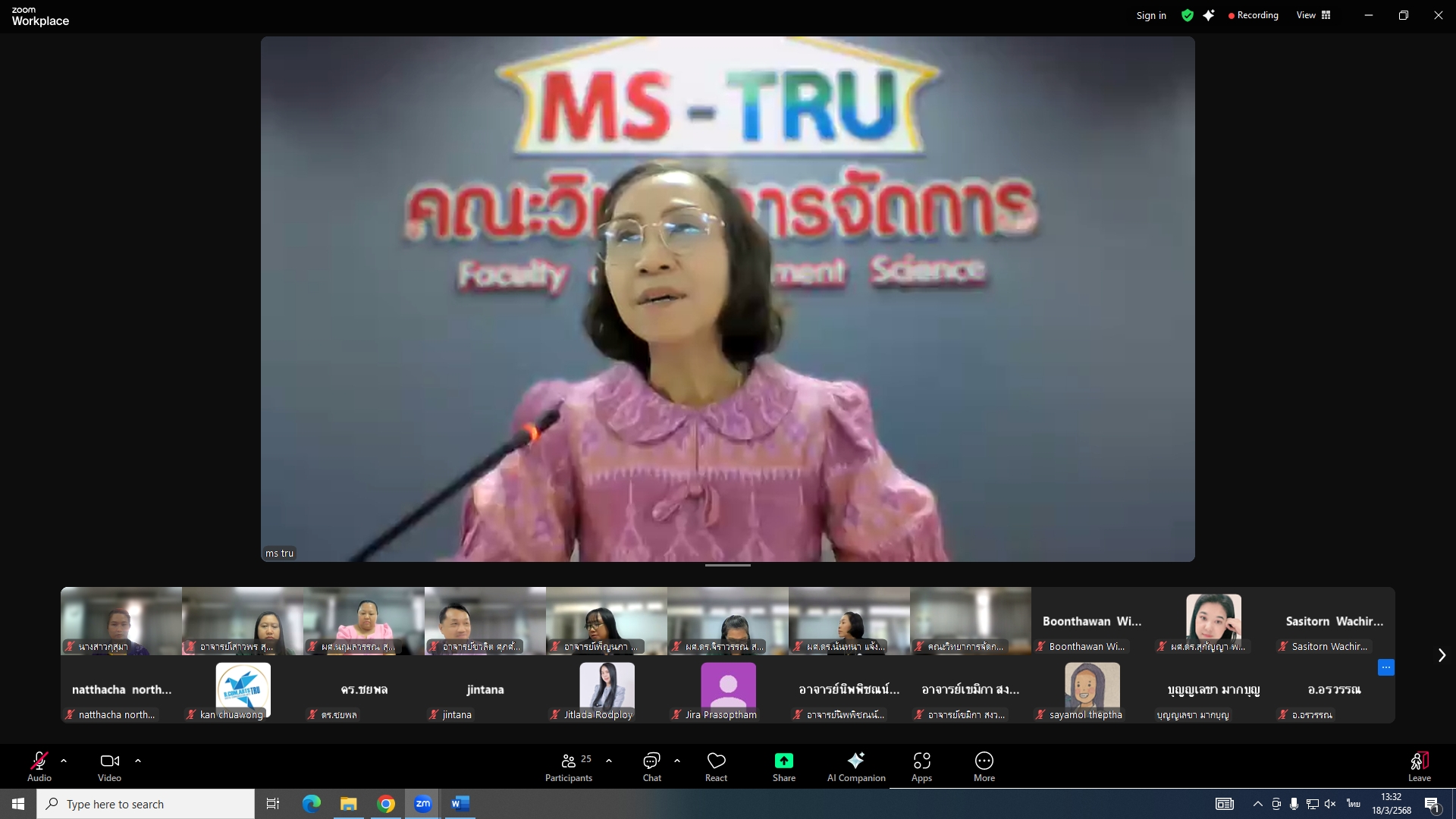 วันที่ 18 มีนาคม 2568 ผศ.พรรณนิภา เดชพล คณบดีคณะวิทยาการจัดการ เป็นประธานการประชุมคณะกรรมการประจำคณะวิทยาการจัดการ ครั้งที่ 3/2568 ในรูปแบบการประชุมระบบ Hybrid Meeting ณ ห้องช่อยูงทอง ชั้น 2 อาคาร 22 คณะวิทยาการจัดการ ซึ่งมีคณะกรรมการเข้าร่วมการประชุมกว่า 2 ใน 3 ซึ่งมีคณะกรรมการเข้าร่วมการประชุมกว่า 2 ใน 3 โดยมีวาระสำคัญที่ร่วมกันพิจารณา ได้แก่ พิจารณาผลการประเมินผลการสอนล่วงหน้า เพื่อขอกำหนดตำแหน่งทางวิชาการ (วาระลับ)/พิจารณา (ร่าง) มคอ.2 รายละเอียดของหลักสูตรบริหารธุรกิจบัณฑิต สาขาวิชาบริหารธุรกิจ (หลักสูตรปรับปรุง พ.ศ. 2569)/พิจารณา (ร่าง) มคอ.2 รายละเอียดของหลักสูตรนิเทศศาสตรบัณฑิต สาขาวิชานิเทศศาสตร์ดิจิทัล (หลักสูตรปรับปรุง พ.ศ. 2569)