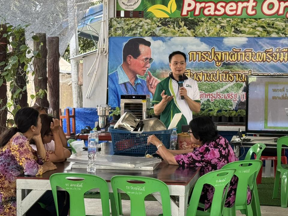 วันที่ 24-26 มีนาคม พ.ศ. 2568 ผศ.นฤมลวรรณ สุขไมตรี รองคณบดีฝ่ายบริหารจัดการ คณะวิทยาการจัดการ จัดโครงการการเพิ่มมูลค่าผลิตภัณฑ์จากผักอินทรีย์ ของกลุ่มเกษตรกร ๙ เพ(ร)าะสุข จังหวัดสิงห์บุรี มีวัตถุประสงค์เพื่อพัฒนาและสร้างมูลค่าเพิ่มผลิตภัณฑ์จากผักอินทรีย์ของกลุ่มเกษตรกร อำเภอบางระจัน จังหวัดสิงห์บุรีเพื่อพัฒนาศักยภาพของกลุ่มเกษตรกรให้มีขีดความสามารถในการแข่งขัน เพื่อสร้างเครือข่ายความร่วมมือในการพัฒนาและสร้างมูลค่าเพิ่มผลิตภัณฑ์จากผักอินทรีย์กับกลุ่มเกษตรกรณและส่งเสริมช่องทางการตลาดในการจำหน่ายผลิตภัณฑ์ชุมชน โดยมี อ.กิตติวัลย์ ทองอร่าม ผู้ช่วยคณบดีคณะวิทยาการจัดการ, นายรังสรรค์ บุญมาแคน ประธานศูนย์เรียนรู้ปรัชญาของเศรษฐกิจพอเพียงและเกษตรทฤษฎีใหม่ประจำตำบลไม้ดัด, อาจารย์เพ็ญศิริ คงสิทธิ์ อาจารย์ประจำสาขาวิชาวิทยาศาสตร์และเทคโนโลยีการอาหาร, ผศ.ดร.ภาราดร งามดี อาจารย์ประจำสาขาวิชาวิทยาศาสตร์และเทคโนโลยีการอาหาร และ ผศ.ศิริลดา ศรีกอก อาจารย์ประจำสาขาวิชาวิทยาศาสตร์และเทคโนโลยีการอาหาร เป็นวิทยากรบรรยาย ประเสริฐออแกนิกส์ ฟาร์ม ต.ไม้ดัด อ.บางระจัน จ.สิงห์บุรี