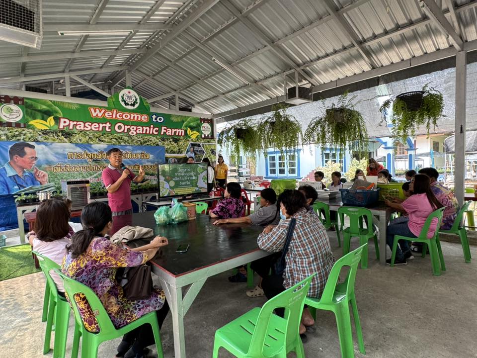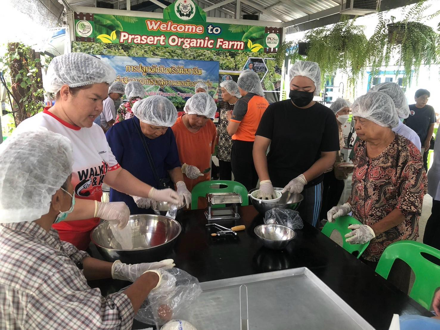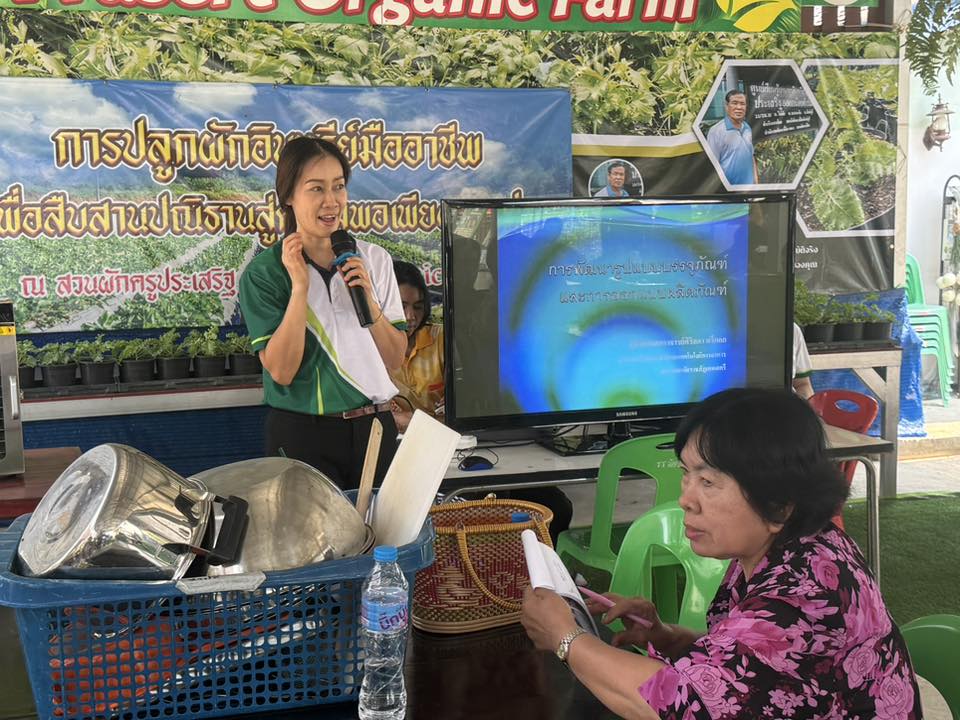 ผศ.นฤมลวรรณ สุขไมตรี รองคณบดีฝ่ายบริหารจัดการ คณะวิทยาการจัดการ จัดโครงการการเพิ่มมูลค่าผลิตภัณฑ์จากผักอินทรีย์ ของกลุ่มเกษตรกร ๙ เพ(ร)าะสุข จังหวัดสิงห์บุรี