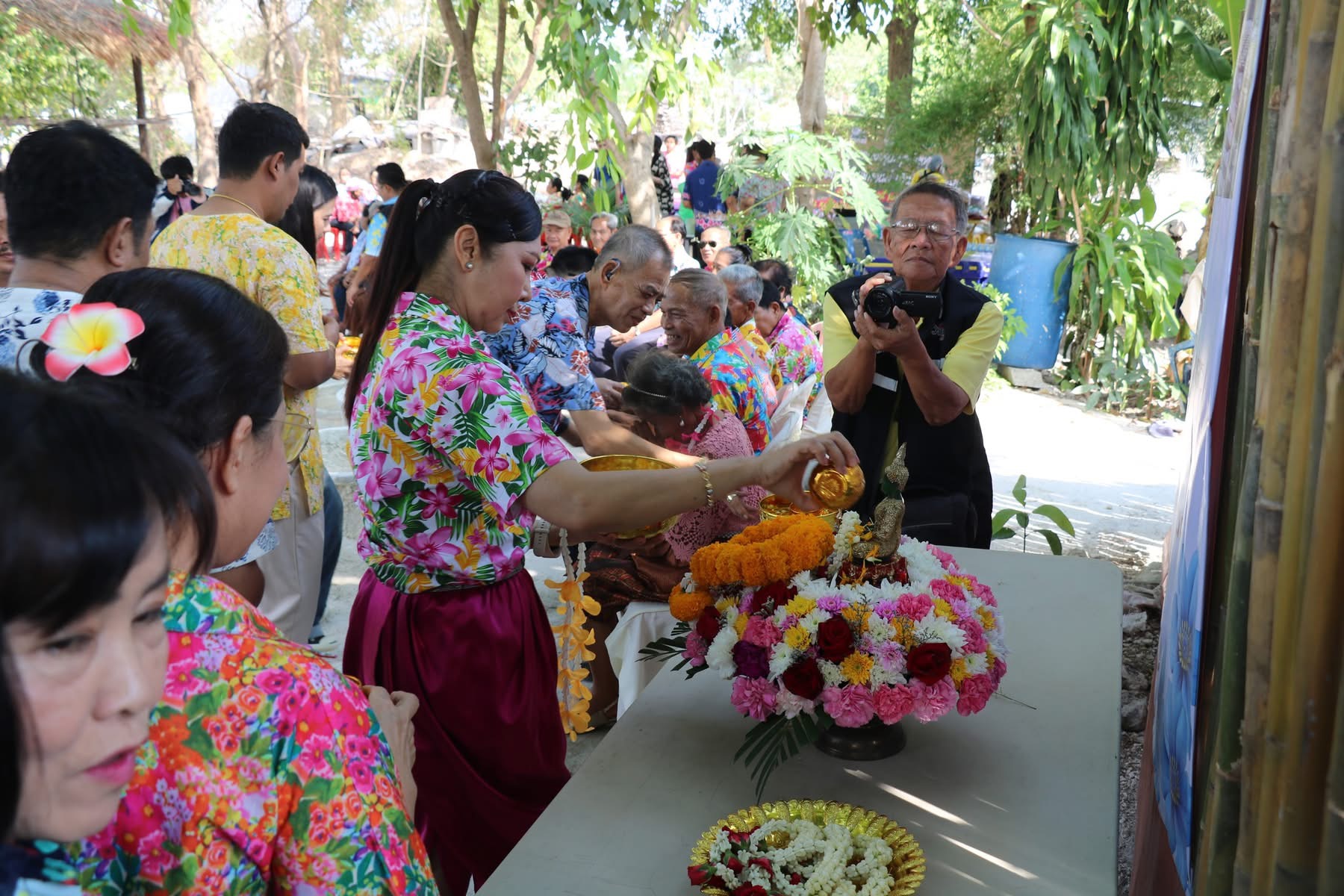 โดยได้รับความร่วมมือจาก ภาคีเครือข่ายทั้งหน่วยงานภาครัฐ ภาคเอกชน ภาคประชาสังคม และชุมชนท้องถิ่น คณาจารย์ บุคลากร และนักศึกษา เข้าร่วมงาน จำนวน 100 ท่าน กิจกรรมภายในงานประกอบด้วยการแสดงกลองยาวทะเลชุบศร การสรงน้ำพระพุทธรูป สรงน้ำขอพรผู้สูงอายุ การก่อกองทรายด้วยดินสอพอง ณ บ้านเลขที่ 88/5 หมู่ที่ 4 ต.ทะเลชุบศร อ.เมืองลพบุรี จ.ลพบุรี