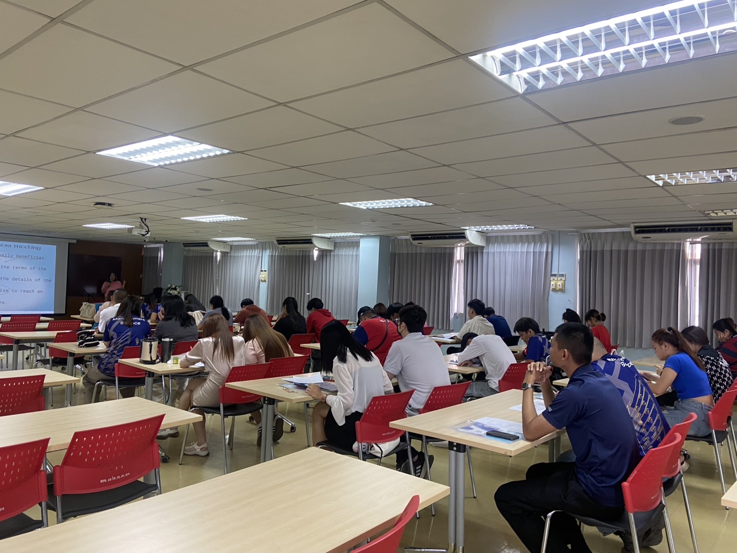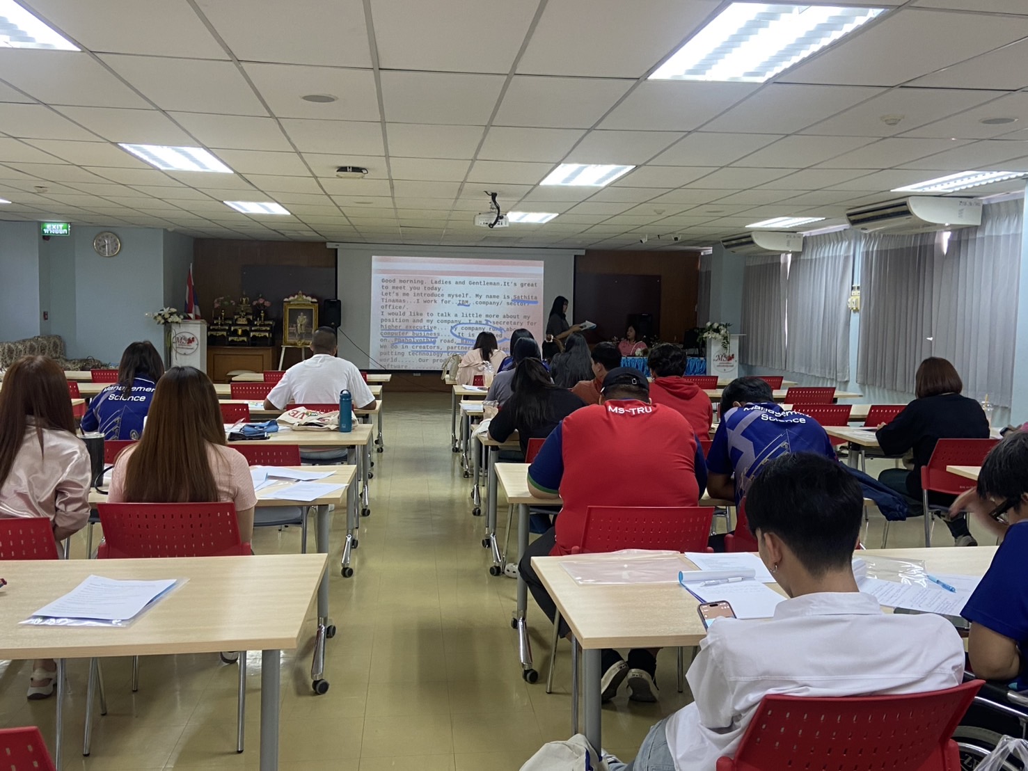 วันที่ 8 เมษายน 2568 สาขาวิชาบริหารธุรกิจ วิชาเอกการจัดการธุรกิจดิจิทัล จัดโครงการอบรม ภาษาอังกฤษเพื่อการสื่อสารเชิงธุรกิจ ให้แก่ นักศึกษา มีวัตถุประสงค์เพื่อเปิดโอกาสในการแลกเปลี่ยนเรียนรู้และศึกษาดูงานกับสถาบันอื่น ๆ และนำความรู้ที่ได้รับมาใช้ในการพัฒนาตนเองให้เป็นมืออาชีพและเพื่อเตรียมความพร้อมในการเป็นนักศึกษามหาวิทยาลัยแห่งการเรียนรู้ในการปรับตัวและใช้ชีวิตในยุคดิจิทัล โดยมี อ.กุสุมา เรืองพัฒนกุล, อ.สาธิตา ติณะมาศ และ อ.จิตราพร งามเนตร เป็นวิทยากรบรรยาย ณ ห้องประชุมคณะวิทยาการจัดการ ชั้น 8 อาคาร 22 คณะวิทยาการจัดการ มหาวิทยาลัยราชภัฏเทพสตรี