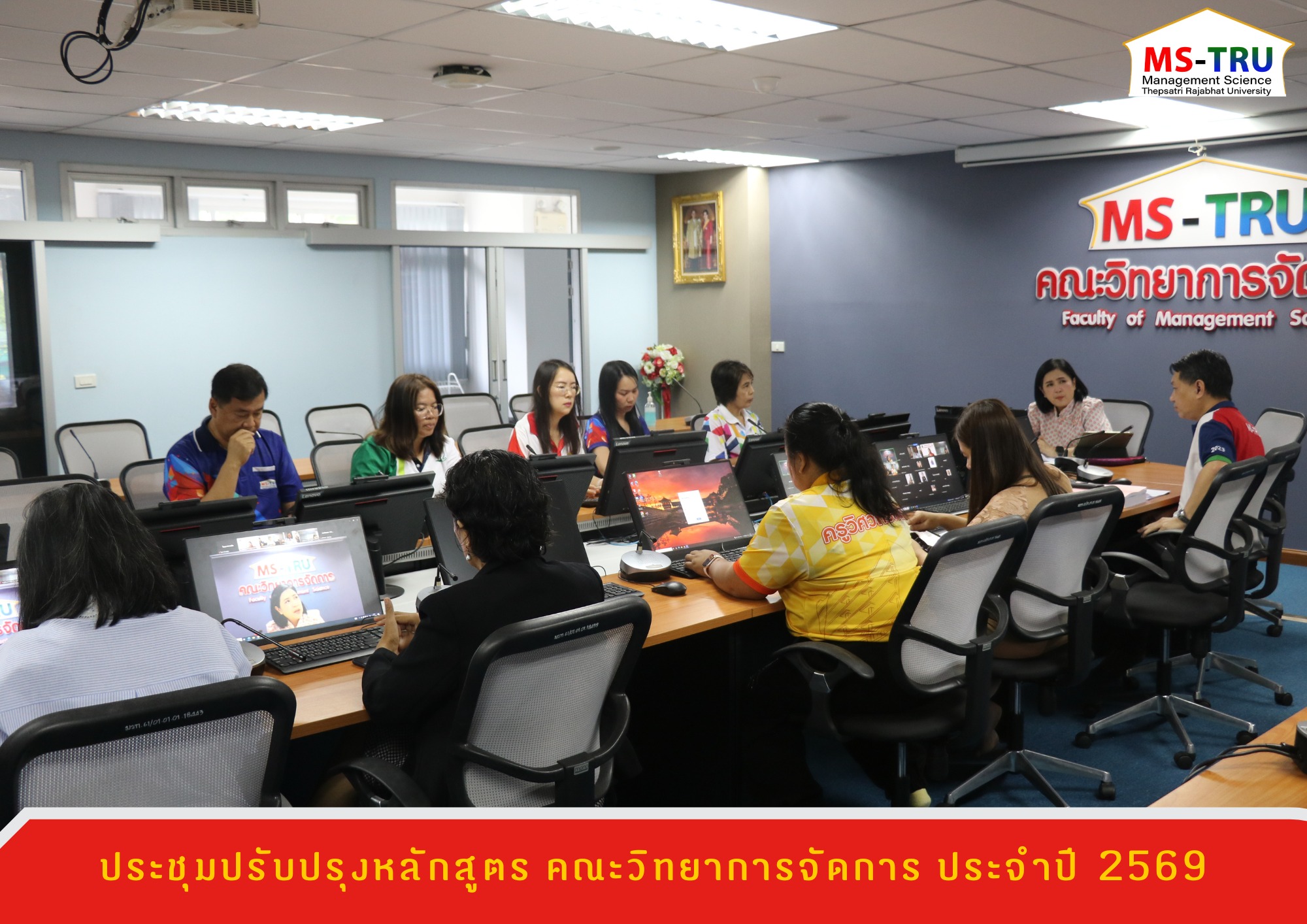วันที่ 24 เมษายน 2568 ผศ.ดร.สุธาสินี ศิริโภคาภิรมย์ รองอธิการบดีฝ่ายวิชาการและประกันคุณภาพการศึกษา เป็นประธานในการประชุมปรับปรุงหลักสูตร คณะวิทยาการจัดการ ประจำปี 2569 พร้อมด้วยรองคณบดีฝ่ายวิชาการและประกันคุณภาพการศึกษา ประธานหลักสูตร หัวหน้าสาขาวิชา หัวหน้าวิชาเอก ณ ห้องช่อยูงทอง ชั้น 2 อาคาร 22 คณะวิทยาการจัดการ มหาวิทยาลัยราชภัฏเทพสตรี