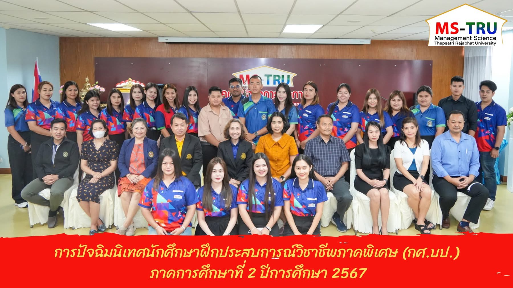 วันที่ 3 พฤษภาคม 2568 ผศ.พรรณนิภา เดชพล คณบดีคณะวิทยาการจัดการ มหาวิทยาลัยราชภัฏเทพสตรี เป็นประธานพิธีเปิดการปัจฉิมนิเทศนักศึกษาฝึกประสบการณ์วิชาชีพ ภาคพิเศษ ภาคการศึกษาที่ 2 ปีการศึกษา 2567 ให้แก่นักศึกษาสาขาวิชาบริหารธุรกิจ วิชาเอกการจัดการ วิชาเอกการจัดการธุรกิจดิจิทัล และนักศึกษาสมทบ จำนวน 60 คน โดยภายหลังเสร็จสิ้นการปัจฉิมนิเทศนักศึกษาจะมีจิตสำนึกที่ดีต่อการประกอบวิชาชีพอย่างมีจรรยาบรรณ พร้อมที่จะรับใช้สังคม และสามารถทำงานร่วมกับผู้อื่นได้อย่างมีประสิทธิภาพ