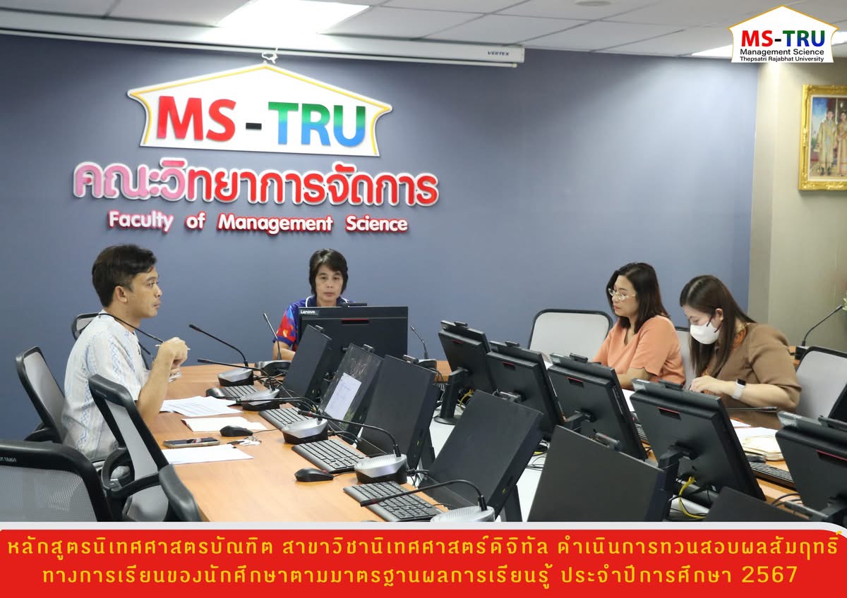 วันที่ 8 พฤษภาคม 2568 หลักสูตรนิเทศศาสตรบัณฑิต สาขาวิชานิเทศศาสตร์ดิจิทัล ดำเนินการทวนสอบผลสัมฤทธิ์ทางการเรียนของนักศึกษาตามมาตรฐานผลการเรียนรู้ ประจำปีการศึกษา 2567 ได้รับเกียรติจาก ผศ.ดร.สุนทรีย์ วิพัฒครุฑ เป็นผู้ทรงคุณวุฒิภายนอกร่วมให้ข้อคิดเห็นและข้อเสนอแนะที่เป็นประโยชน์ต่อการพัฒนาการจัดการเรียนการสอนของสาขาวิชาฯ ณ ห้องช่อยูงทอง ชั้น 2 อาคาร 22 คณะวิทยาการจัดการ มหาวิทยาลัยราชภัฏเทพสตรี