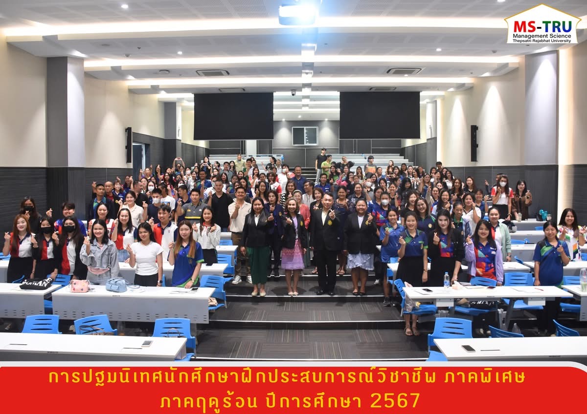ผศ.พรรณนิภา เดชพล คณบดีคณะวิทยาการจัดการ เป็นประธานพิธีเปิดการปฐมนิเทศนักศึกษาฝึกประสบการณ์วิชาชีพ ภาคพิเศษ ภาคฤดูร้อน ปีการศึกษา 2567