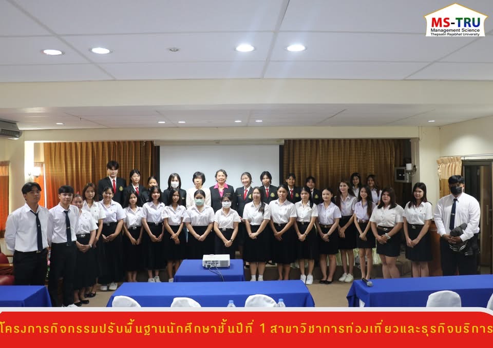 วันที่ 30 พฤษภาคม 2568 สาขาวิชาการท่องเที่ยวและธุรกิจบริการ จัดโครงการกิจกรรมปรับพื้นฐานนักศึกษาชั้นปีที่ 1 ให้แก่ นักศึกษา จำนวน 16 คน มีวัตถุประสงค์เพื่อให้นักศึกษาได้ทราบองค์ความรู้ทางด้านการท่องเที่ยวและการโรงแรมทักษะการใช้เทคโนโลยีดิจิทัล และทักษะภาษาอังกฤษเฉพาะวิชาชีพ โดยมี อ.ดร.สยามล เทพทา, อ.เยาวนาถ บางศรี, อ.ดร.หงสกุล เมสนุกูล และผศ.ดร.ยุลดา ทรัพย์สมบูรณ์ เป็นวิทยากรบรรยาย ณ ห้องประชุมเทพประทาน ชั้น 2 ศูนย์ฝึกประสบการณ์วิชาชีพเทพธานีเพลส มหาวิทยาลัยราชภัฏเทพสตรี