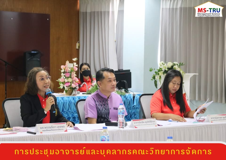 วันที่ 5 มิถุนายน 2568 ผศ.พรรณนิภา เดชพล คณบดีคณะวิทยาการจัดการ เป็นประธานในพิธีเปิดการประชุมอาจารย์และบุคลากรคณะวิทยาการจัดการ ให้แก่ผู้บริหาร คณาจารย์และบุคลากรคณะวิทยาการจัดการ จำนวน 45 คน ภายหลังเสร็จสิ้นการประชุมคณาจารย์และบุคลากรได้รับทราบ แนวทางการในการปฏิบัติงาน และรับทราบประเด็นข้อสงสัยต่าง ๆ โอกาสนี้ ได้มีพิธีมอบแจกันดอกไม้แสดงความยินดีแก่ นางสาวสุจิรา สาหา ในโอกาส ที่ได้รับการแต่งตั้งให้ดำรงตำแหน่งสูงขึ้น ตำแหน่งเจ้าหน้าที่บริหารงานทั่วไป ระดับชำนาญการ สำหรับกิจกรรมในช่วงบ่าย คือ การแลกเปลี่ยนเรียนรู้ Smart Advisor อาจารย์ที่ปรึกษายุคดิจิทัล โดยมี ผศ.ดร.เฉลิมชัย หาญกล้า อาจารย์ประจำสาขาวิชาการบริหารการศึกษา คณะครุศาสตร์ เป็นวิทยากร ณ ห้องประชุมคณะวิทยาการจัดการ ชั้น 8 อาคาร 22 คณะวิทยาการจัดการ มหาวิทยาลัยราชภัฏเทพสตรี