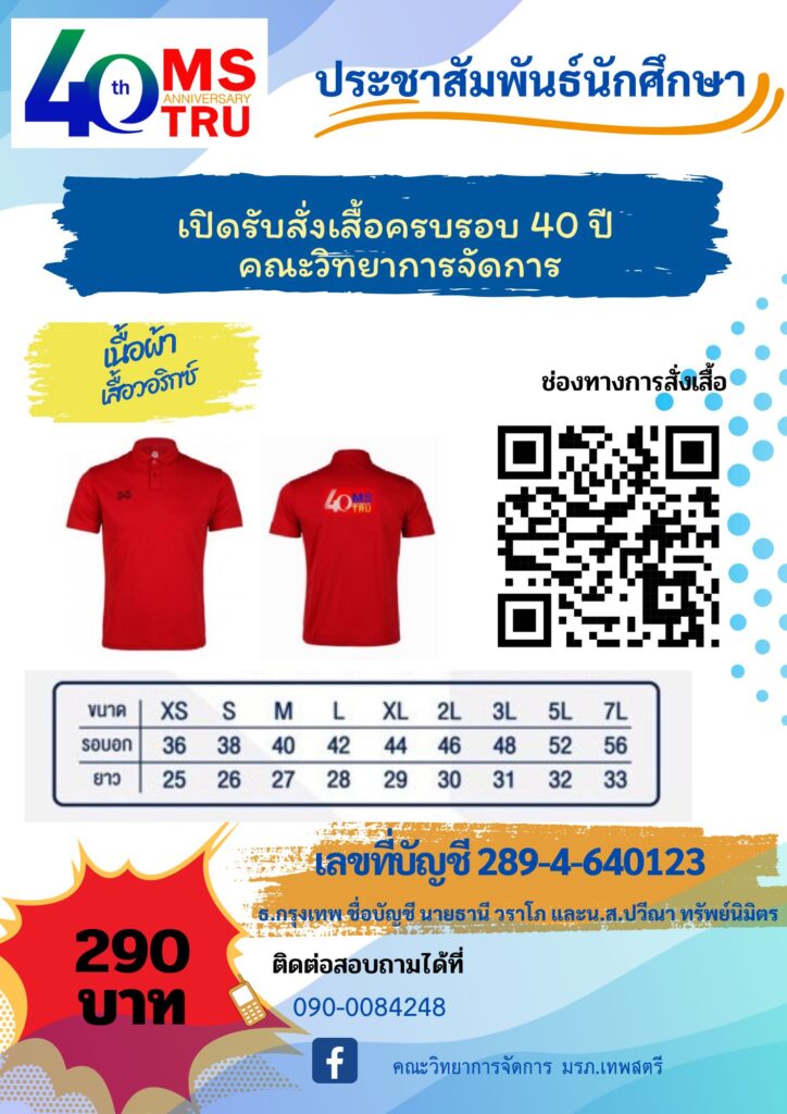 เปิดจอง….เสื้อคณะวิทยาการจัดการ ครบรอบ 40 ปี คณะวิทยาการจัดการ 17 มิถุนายน 2568พรพรรณ นิยมจันทร์ข่าวสาร เปิดจอง….เสื้อคณะวิทยาการจัดการ ครบรอบ 40 ปี คณะวิทยาการจัดการ ราคาตัวละ 290 บาท เนื้อผ้า เสื้อวอริกซ์ นุ่ม ระบายอากาศดี สั่งจองตั้งแต่วันที่ 17 มิถุนายน – 30 มิถุนายน 2568 สั่งจองได้ที่ https://forms.gle/ovMbGqujqvxmK3CA8 Post Views: 44