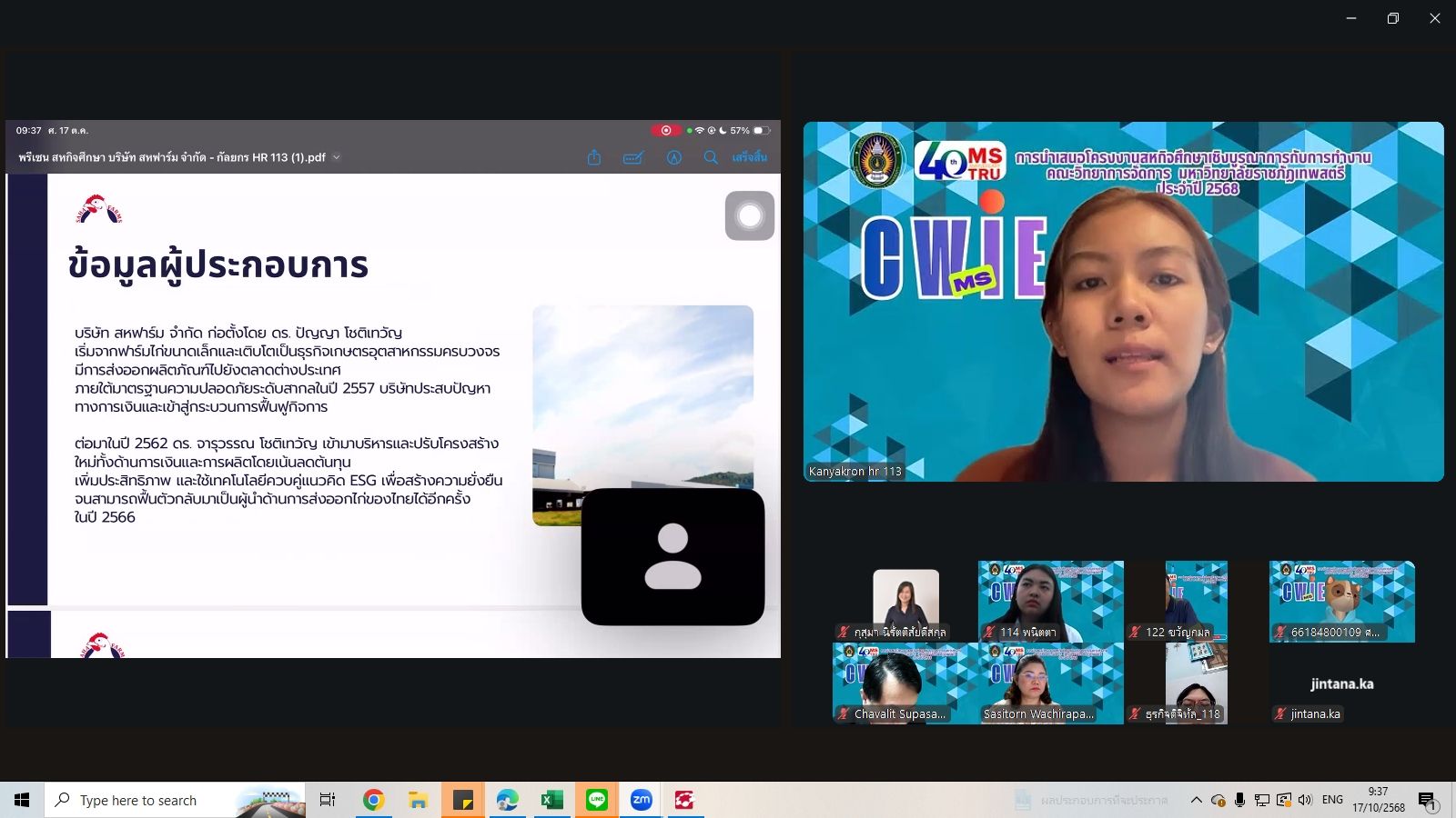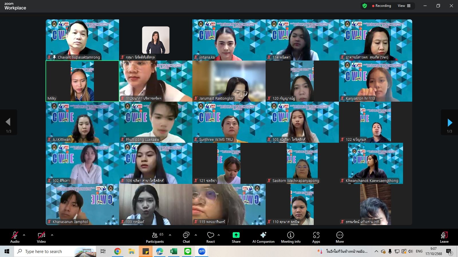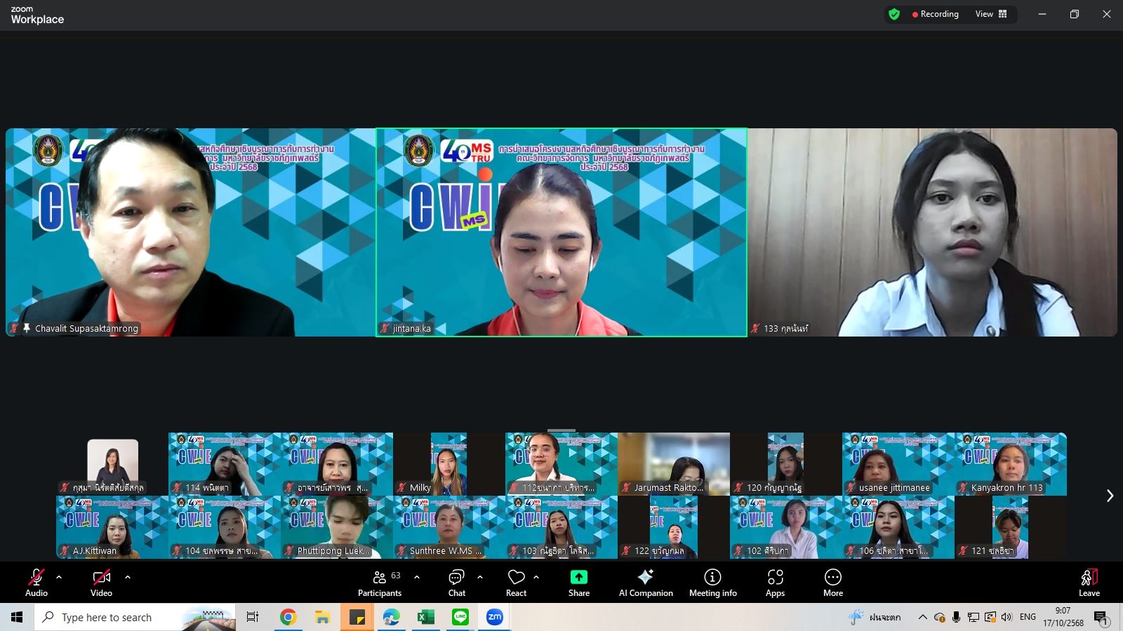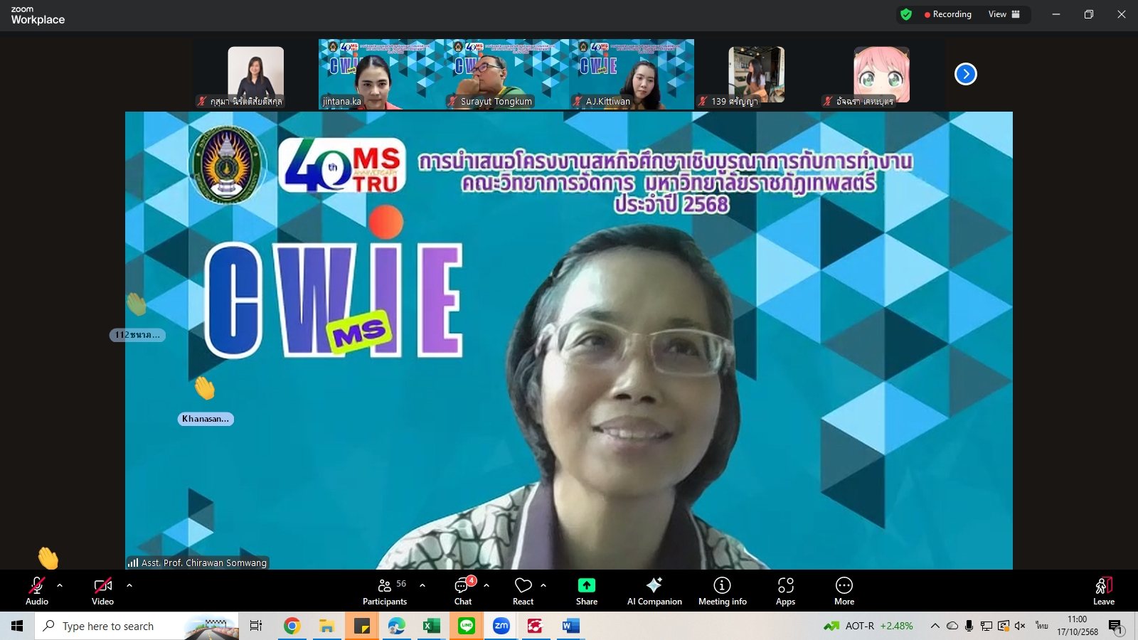 วันที่ 17 ตุลาคม 2568 อ.ชวลิต ศุภศักดิ์ธำรง รองคณบดีฝ่ายวิชาการและประกันคุณภาพการศึกษา คณะวิทยาการจัดการ เป็นประธานเปิดโครงการปัจฉิมนิเทศและรับฟังการนำเสนอโครงงานการปฏิบัติงานสหกิจศึกษา ภาคการศึกษาที่ 1 ปีการศึกษา 2568 ในรูปแบบผ่านสื่ออิเล็กทรอนิกส์ Zoom Meeting ให้แก่ นักศึกษาออกปฏิบัติงานสหกิจศึกษา สาขาบริหารธุรกิจ วิชาเอกการจัดการ วิชาเอกการบริหารทรัพยากรมนุษย์และองค์การ และสาขาวิชาการจัดการโลจิสติกส์ จำนวน 38 คน มีวัตถุประสงค์เพื่อให้นักศึกษาได้นำเสนอโครงงานการปฏิบัติงานสหกิจศึกษา แลกเปลี่ยนความรู้ สะท้อนปัญหาที่ได้รับจากการปฏิบัติงานสหกิจศึกษา