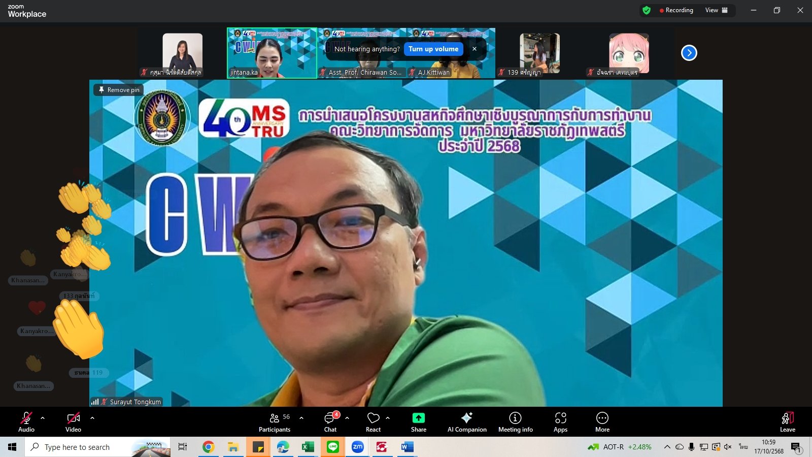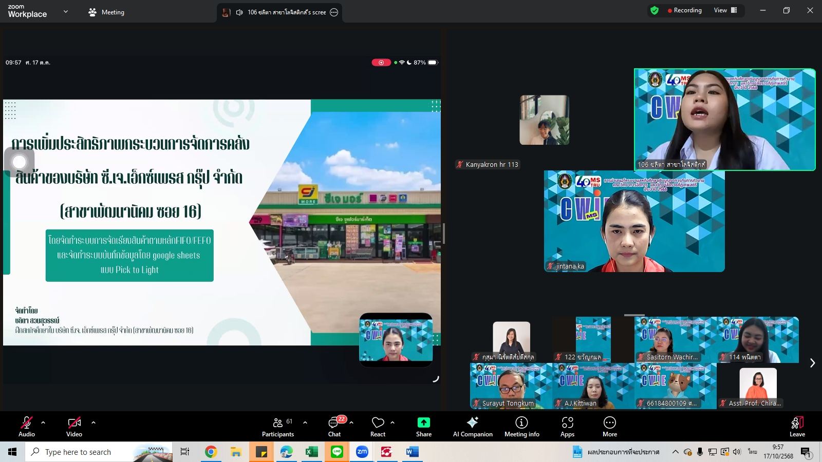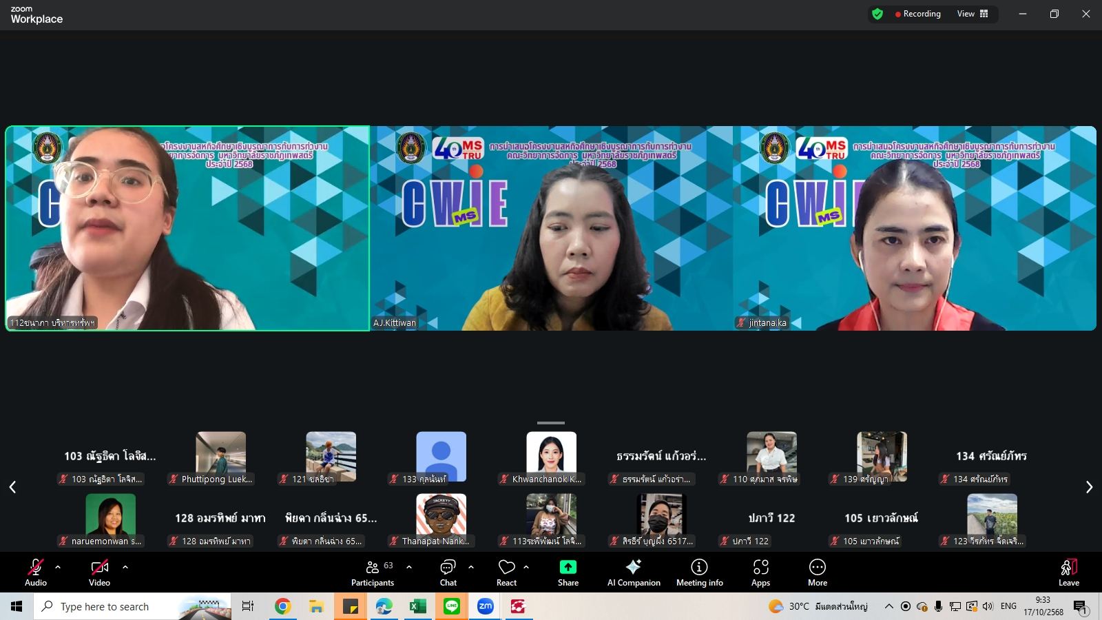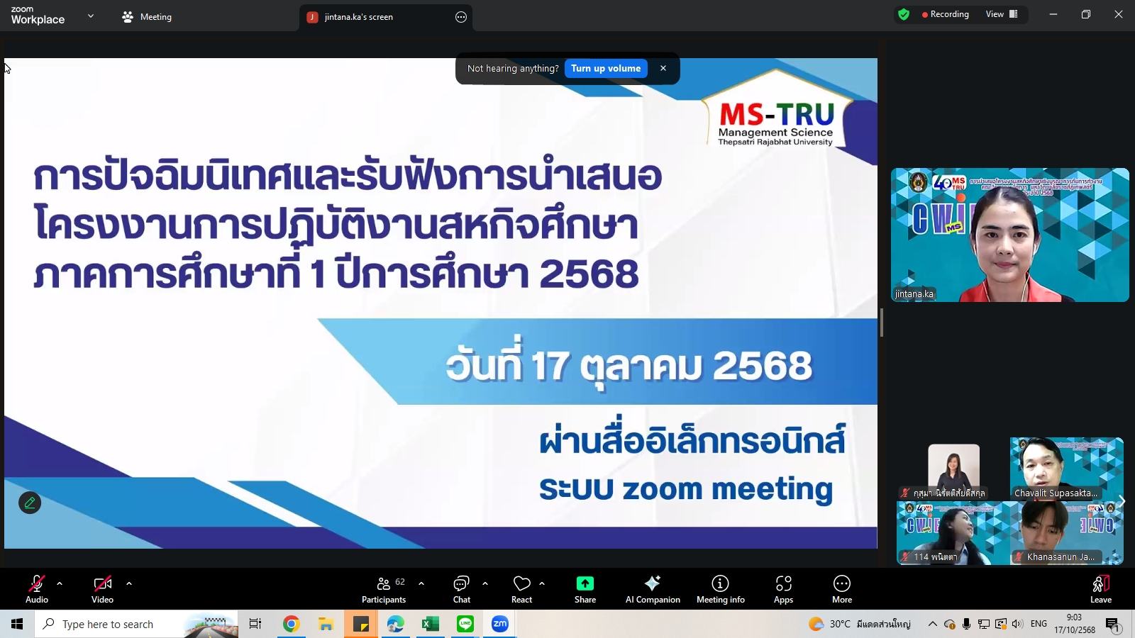 วันที่ 17 ตุลาคม 2568 อ.ชวลิต ศุภศักดิ์ธำรง รองคณบดีฝ่ายวิชาการและประกันคุณภาพการศึกษา คณะวิทยาการจัดการ เป็นประธานเปิดโครงการปัจฉิมนิเทศและรับฟังการนำเสนอโครงงานการปฏิบัติงานสหกิจศึกษา ภาคการศึกษาที่ 1 ปีการศึกษา 2568 ในรูปแบบผ่านสื่ออิเล็กทรอนิกส์ Zoom Meeting ให้แก่ นักศึกษาออกปฏิบัติงานสหกิจศึกษา สาขาบริหารธุรกิจ วิชาเอกการจัดการ วิชาเอกการบริหารทรัพยากรมนุษย์และองค์การ และสาขาวิชาการจัดการโลจิสติกส์ จำนวน 38 คน มีวัตถุประสงค์เพื่อให้นักศึกษาได้นำเสนอโครงงานการปฏิบัติงานสหกิจศึกษา แลกเปลี่ยนความรู้ สะท้อนปัญหาที่ได้รับจากการปฏิบัติงานสหกิจศึกษา