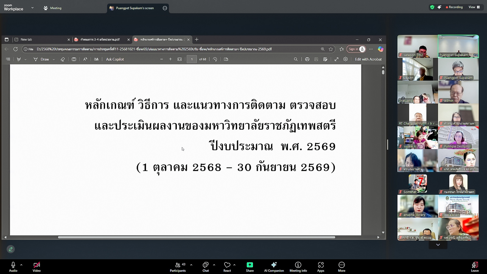 ผศ.พรรณนิภา เดชพล คณบดีคณะวิทยาการจัดการเข้าร่วมประชุมรับทราบหลักเกณฑ์ วิธีการและแนวทางการติดตาม ตรวจสอบฯ ปีงบประมาณ พ.ศ. 2569 จาก คกก.ติดตาม ตรวจสอบฯ