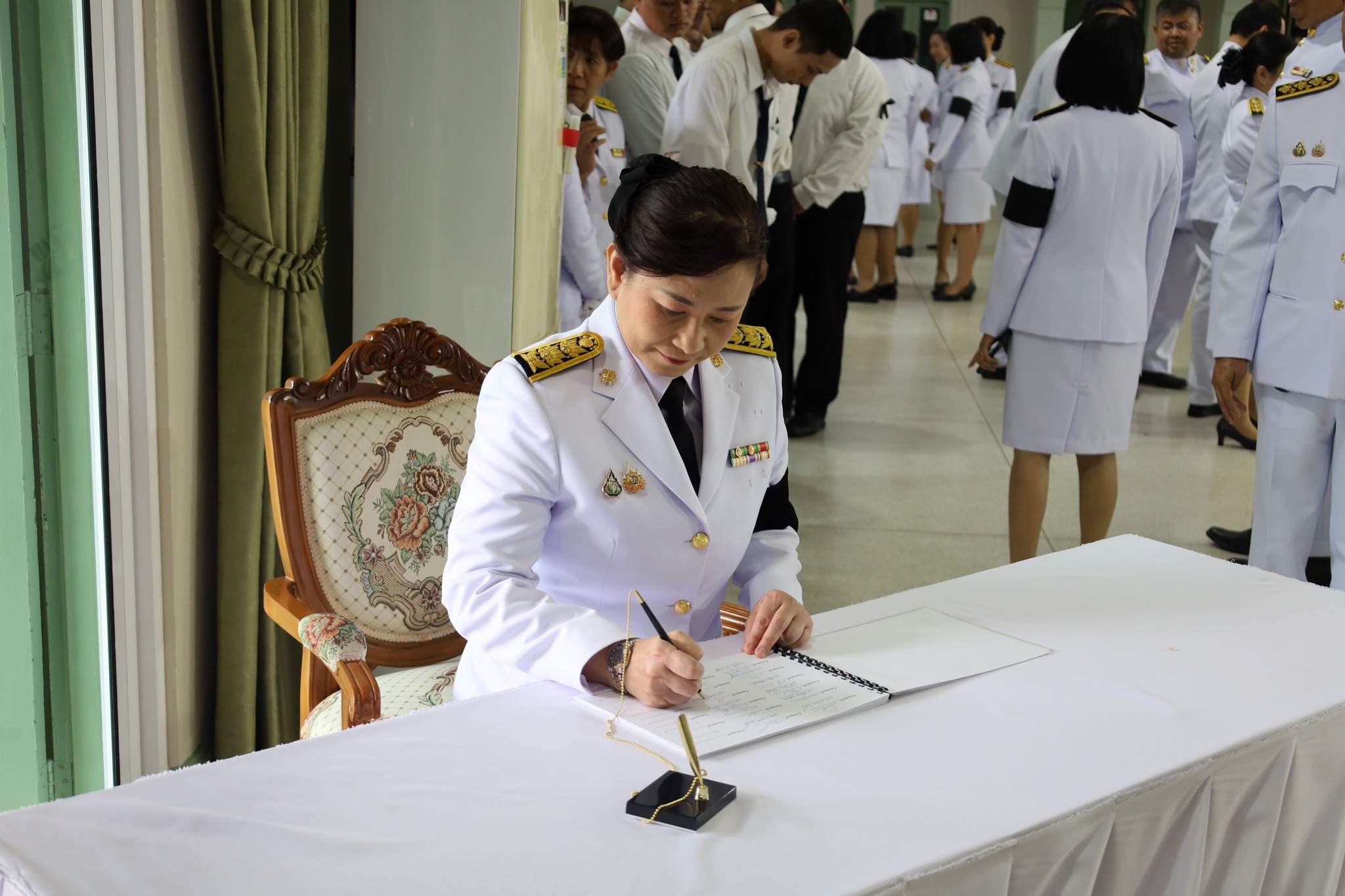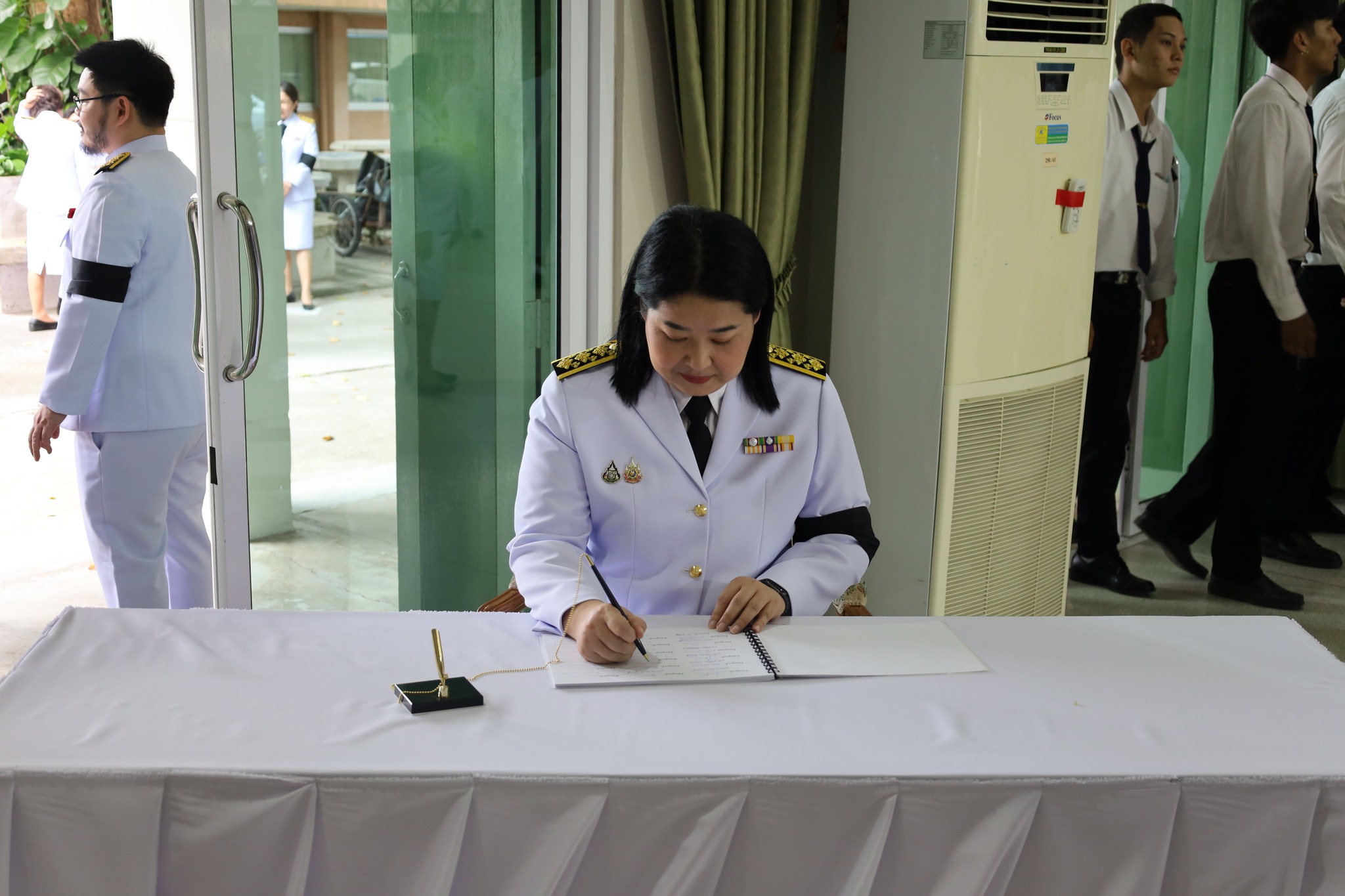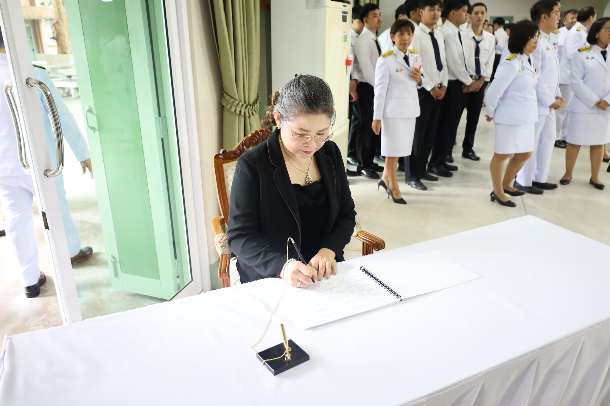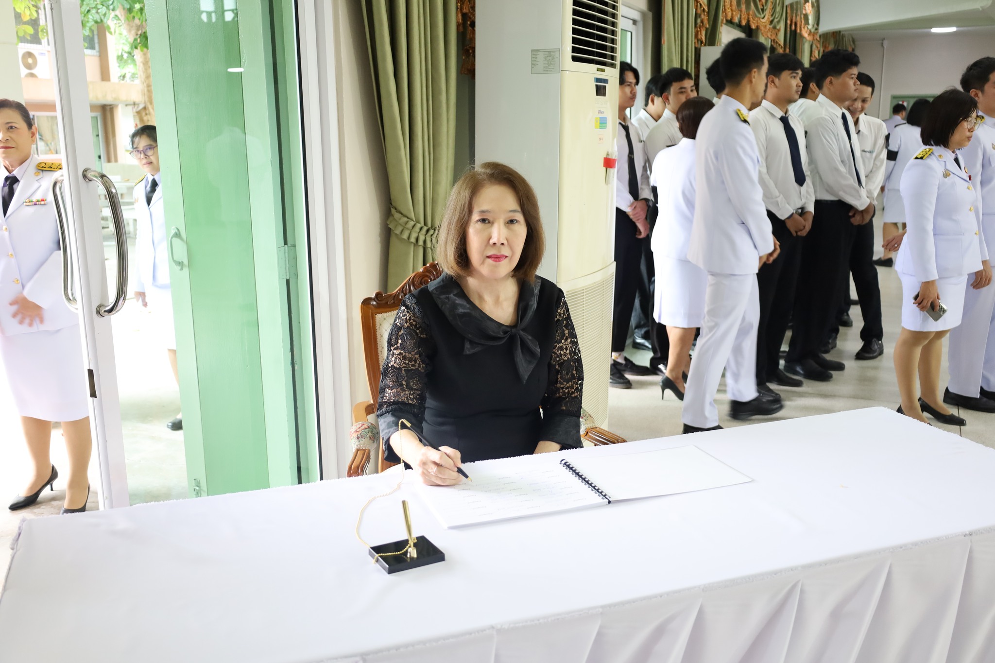 ผศ.พรรณนิภา เดชพล คณบดีคณะวิทยาการจัดการ พร้อมรองคณบดี ผู้ช่วยคณบดี คณาจารย์ และนักศึกษาคณะวิทยาการจัดการ ร่วมพิธีน้อมถวายความอาลัย พระผู้เสด็จสู่สวรรคาลัย เบื้องหน้าพระฉายาลักษณ์ สมเด็จพระนางเจ้าสิริกิติ์ พระบรมราชินีนาถ พระบรมราชชนนีพันปีหลวง และลงนามถวายความอาลัย