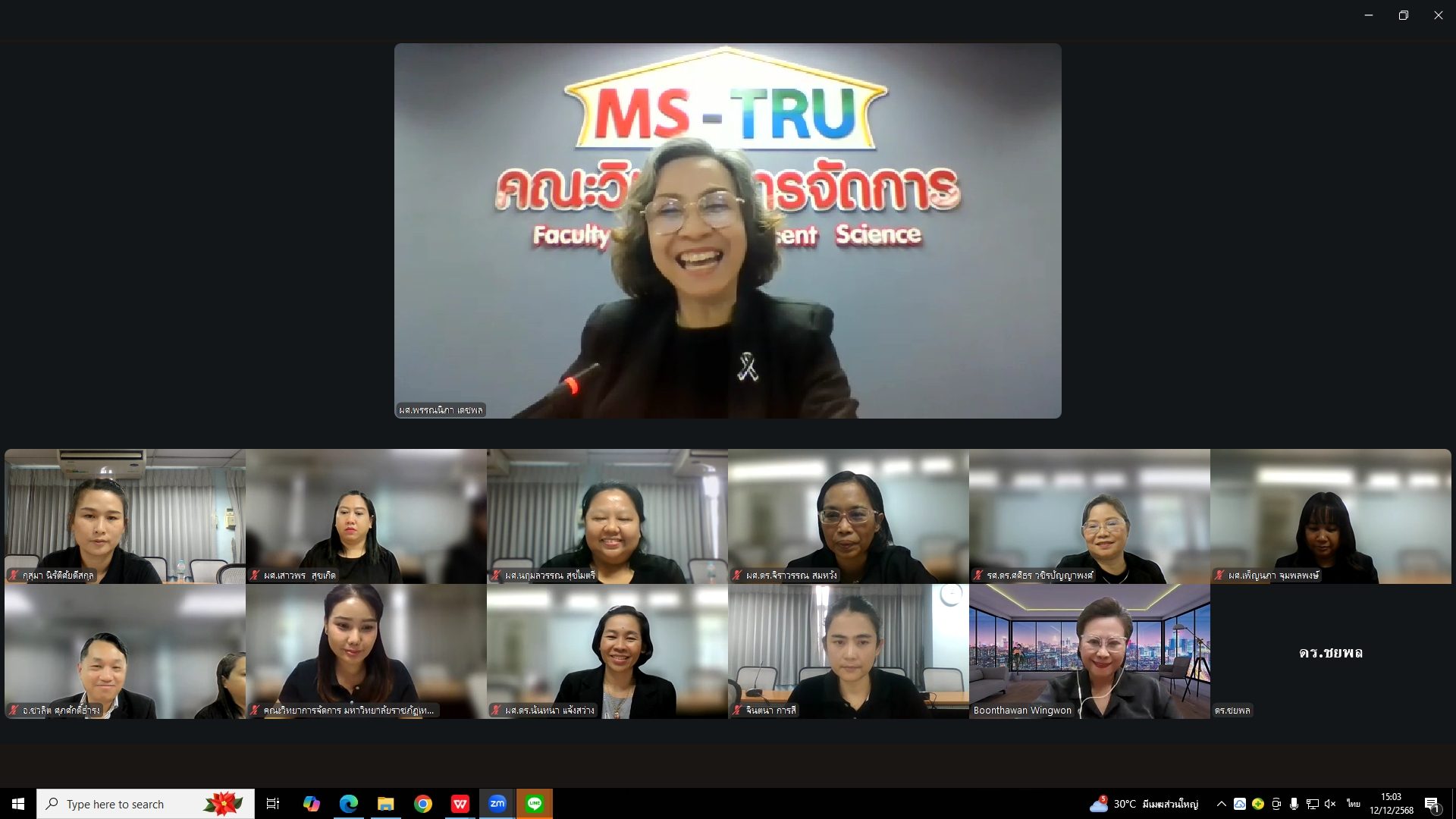 วันที่ 12 ธันวาคม 2568 คณะวิทยาการจัดการ จัดการประชุมคณะกรรมการประจำคณะวิทยาการจัดการ ครั้งที่ 12/2568 ในรูปแบบการประชุมระบบ Hybrid Meeting โดยมี ผศ.พรรณนิภา เดชพล คณบดีคณะวิทยาการจัดการ เป็นประธานในการประชุม ซึ่งมีคณะกรรมการเข้าร่วมการประชุมกว่า 2 ใน 3 โดยมีวาระสำคัญที่ร่วมกันพิจารณา ได้แก่ พิจารณารายงานการประชุมคณะกรรมการวิชาการ ครั้งที่ 10/2568 การขอกำหนดตำแหน่งทางวิชาการระดับผู้ช่วยศาสตรย์จารย์ พิจารณาแผนพัฒนาคุณภาพการศึกษา (Quality improvement Plan) ตามเกณฑ์ EdPEx คณะวิทยาการจัดการ มหาวิทยาลัยราชภัฏเทพสตรี ณ ห้องช่อยูงทอง ชั้น 2 อาคารคณะวิทยาการจัดการ มหาวิทยาลัยราชภัฎเทพสตรี