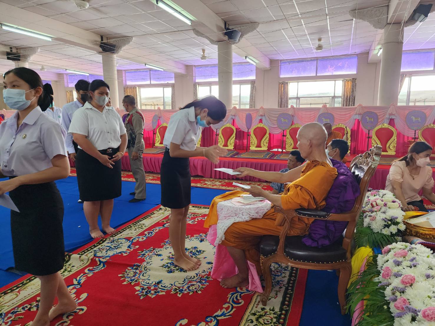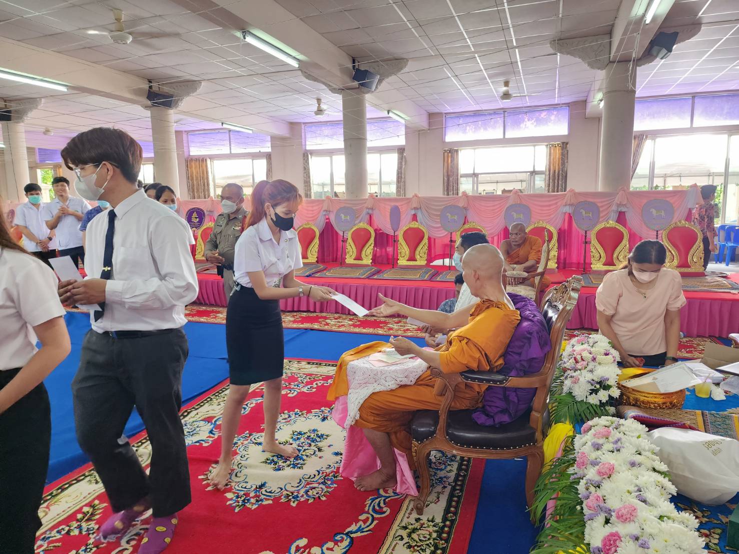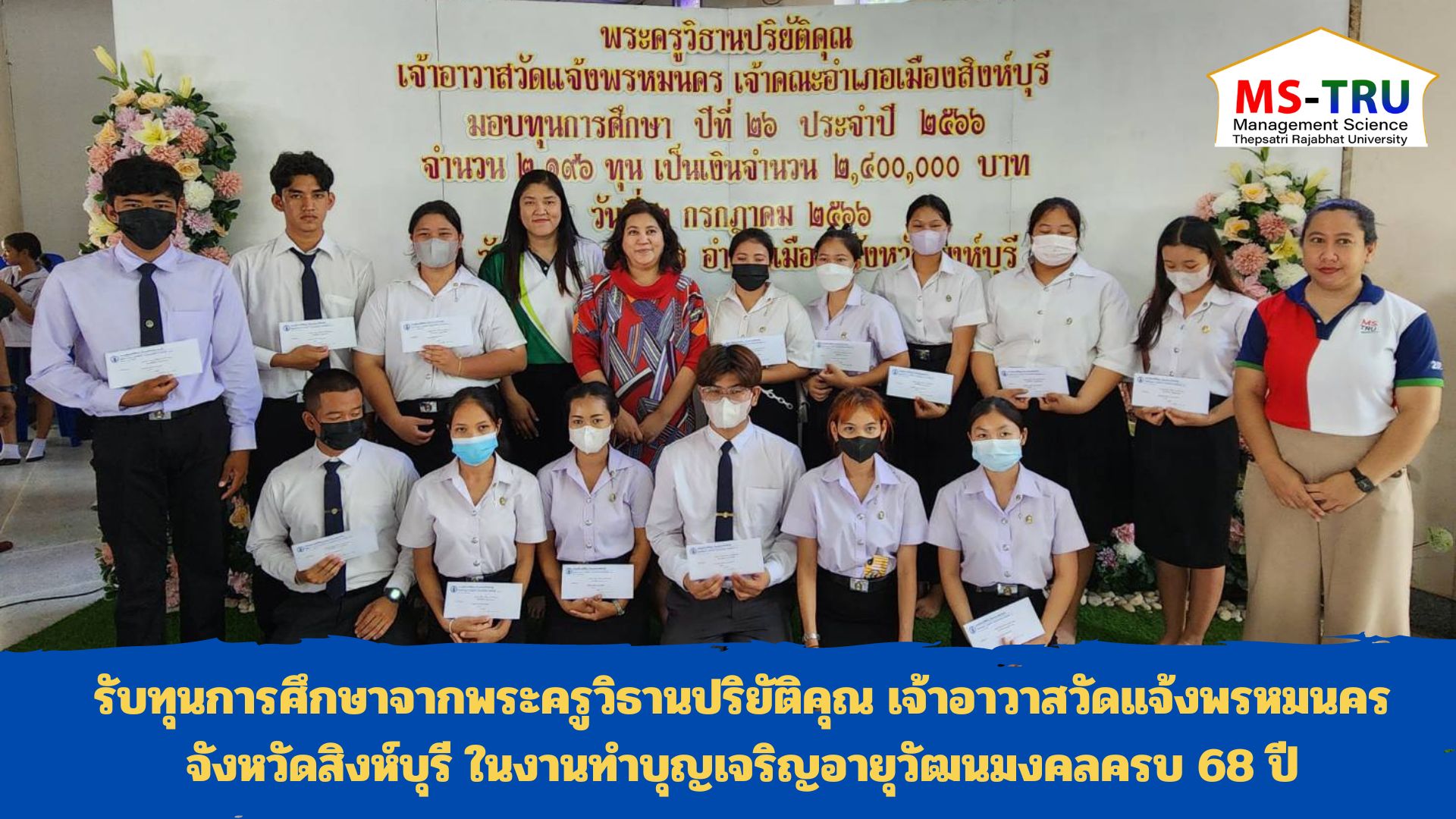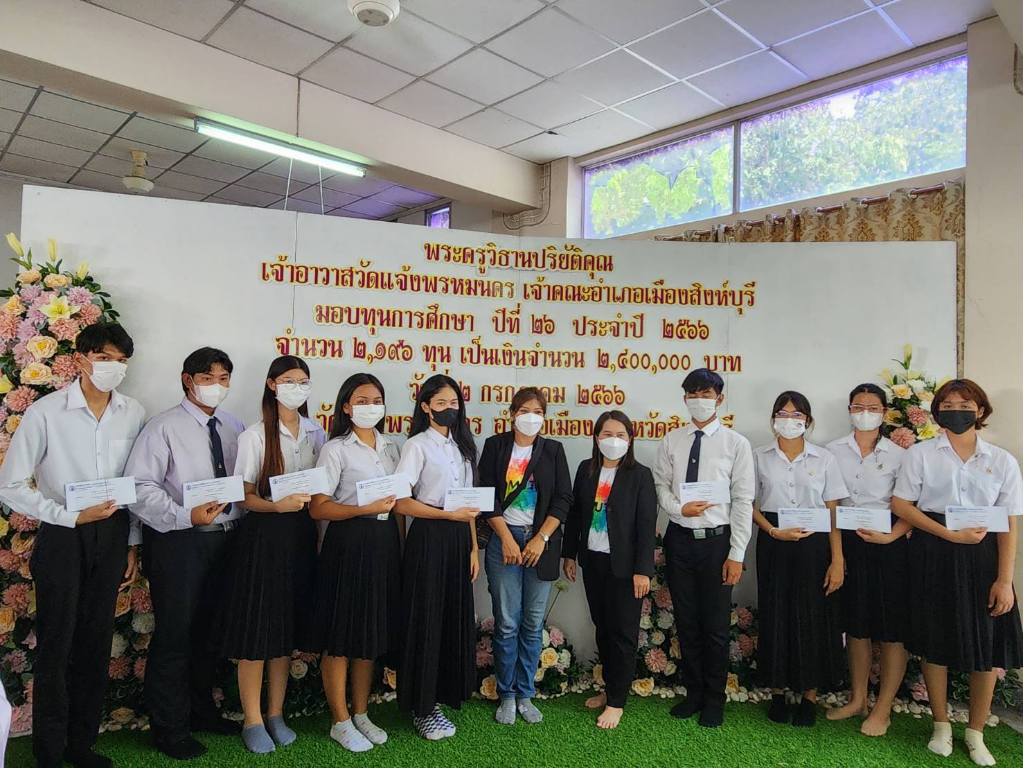 วันที่ 2 ก.ค.66 ผู้ช่วยศาสตราจารย์ ดร.อุษณี จิตติมณี รองคณบดีฝ่ายกิจการนักศึกษา อ.เสาวพร สุขเกิด ผู้ช่วยคณบดี และนายธานี วราโภ หัวหน้างานกิจการนักศึกษา นำนักศึกษารับทุนการศึกษาจากพระครูวิธานปริยัติคุณ เจ้าอาวาสวัดแจ้งพรหมนคร จังหวัดสิงห์บุรี ในงานทำบุญเจริญอายุวัฒนมงคลครบ 68 ปี ณ วัดแจ้งพรหมนคร จังหวัดสิงห์บุรี