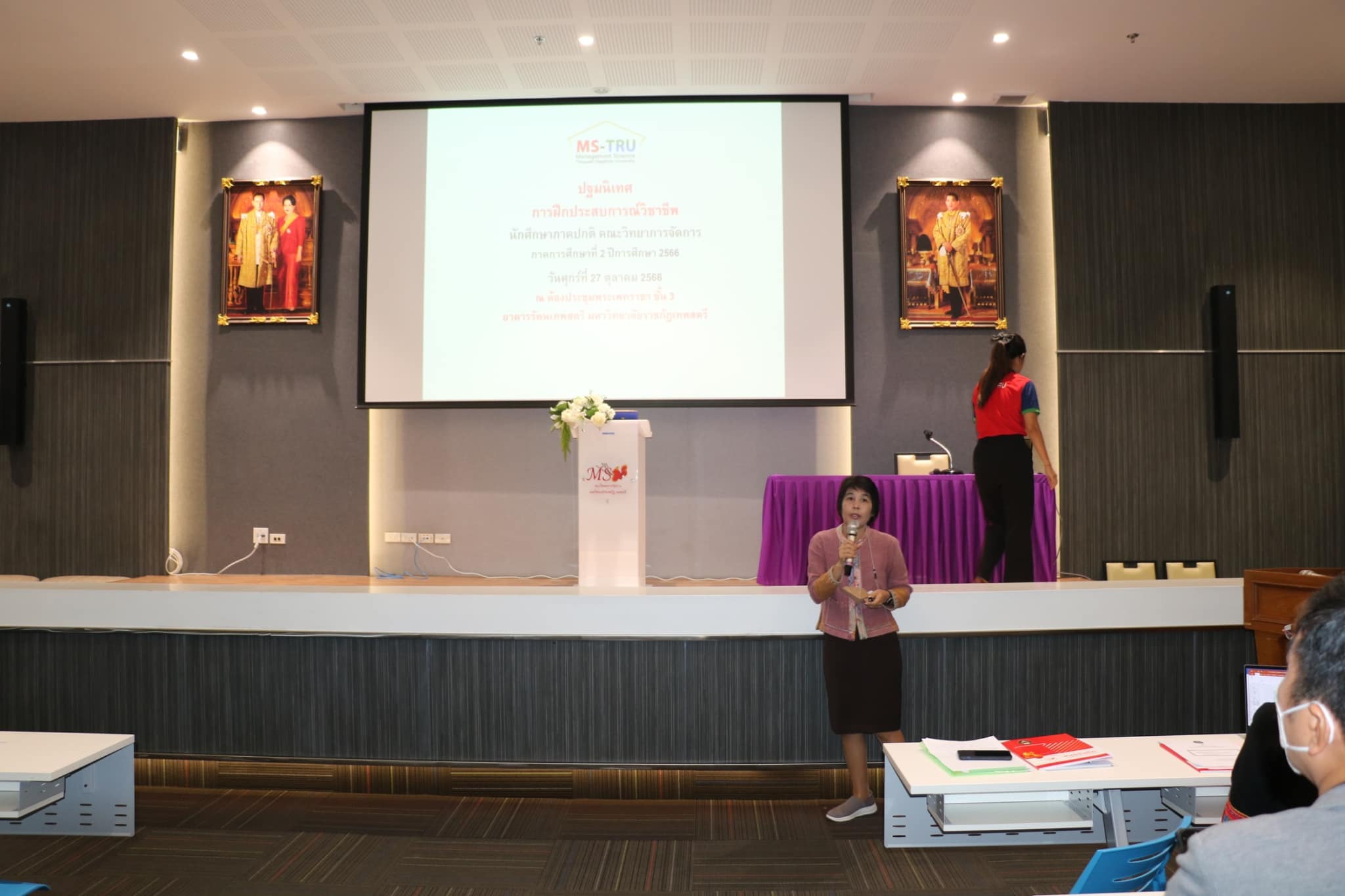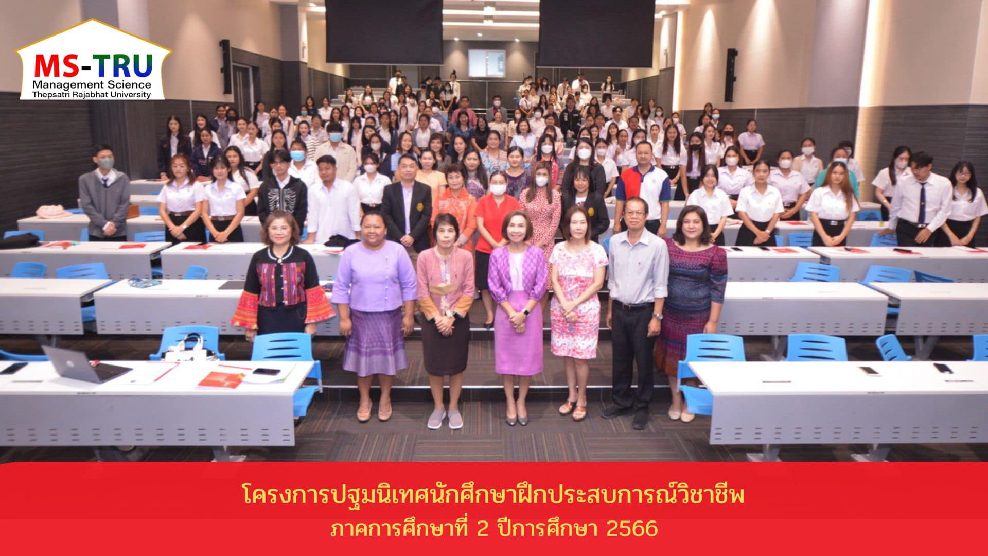 เมื่อวันที่ 27 ตุลาคม พ.ศ. 2566 ผศ.พรรณนิภา เดชพล คณบดีคณะวิทยาการจัดการ เป็นประธานพิธีเปิดการปฐมนิเทศนักศึกษาฝึกประสบการณ์วิชาชีพ ภาคการศึกษาที่ 2 ปีการศึกษา 2566 พร้อมด้วยรองคณบดีฝ่ายวิชาการ รองคณบดีฝ่ายบริหาร รองคณบดีฝ่ายกิจการนักศึกษา ผู้ช่วยคณบดี คณาจารย์ จัดให้แก่ นักศึกษา สาขาวิชาการจัดการ สาขาวิชาคอมพิวเตอร์ธุรกิจ สาขาวิชาการตลาด สาขาวิชาการบริหารทรัพยากรมนุษย์ สาขาวิชาการบัญชี สาขาวิชานิเทศศาสตร์ สาขาวิชาการจัดการโลจิสติกส์ และสาขาวิชาการท่องเที่ยวและการโรงแรม จำนวน 170 คน โดยภายหลังเสร็จสิ้นการปฐมนิเทศนักศึกษาจะรับทราบแนวทางการปฏิบัติตนในการฝึกประสบการณ์วิชาชีพที่ถูกต้อง และเกิดความรู้และทักษะในการพัฒนาตนเองในการออกฝึกประสบการณ์วิชาชีพ โดยรศ.ดร.ศศิธร วชิรปัญญาพงศ์ หัวหน้าวิชาเอกการบริหารทรัพยากรมนุษย์และองค์การ และ อ.ชวลิต ศุภศักดิ์ธำรง ประธานหลักสูตรบริหารธุรกิจ เป็นวิทยากร ณ ห้องประชุมพระเพทราชา ชั้น 3 อาคารรัตนเทพสตรี มหาวิทยาลัยราชภัฏเทพสตรีสำหรับกิจกรรมตลอดการปฐมนิเทศ ประกอบด้วย การบรรยายหัวข้อ คู่มือการจัดทำสารนิพนธ์ และการบรรยายหัวข้อ การบันทึกสมุดฝึกประสบการณ์วิชาชีพ
