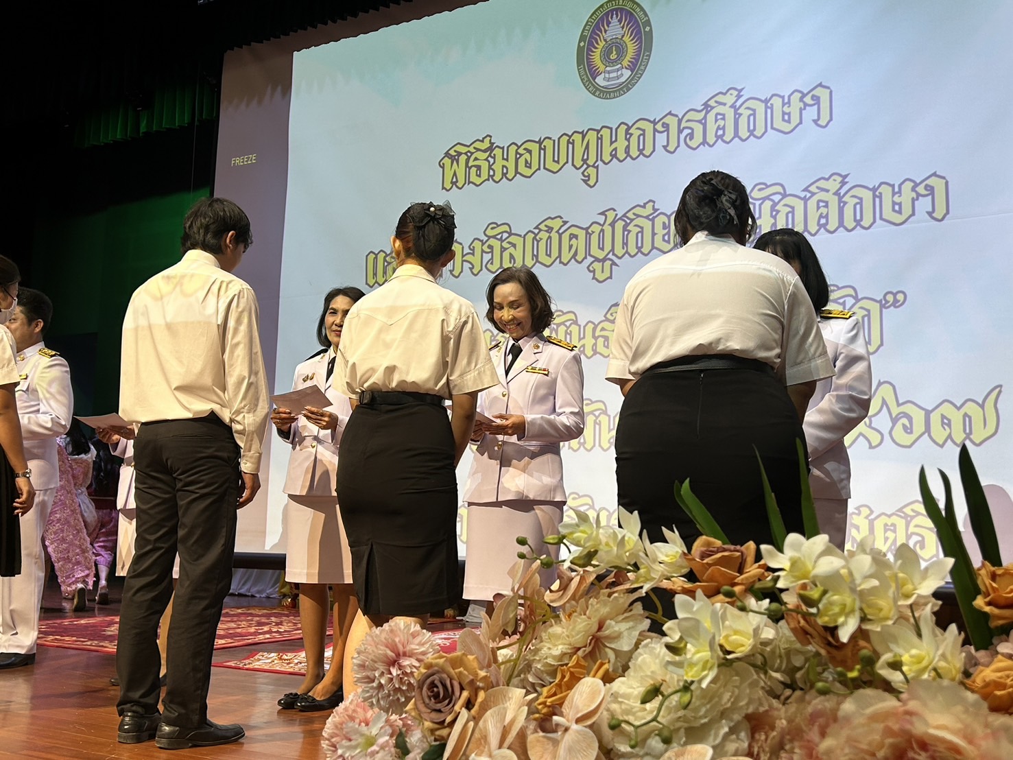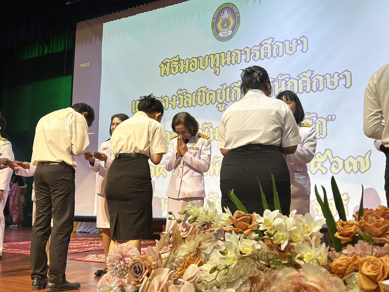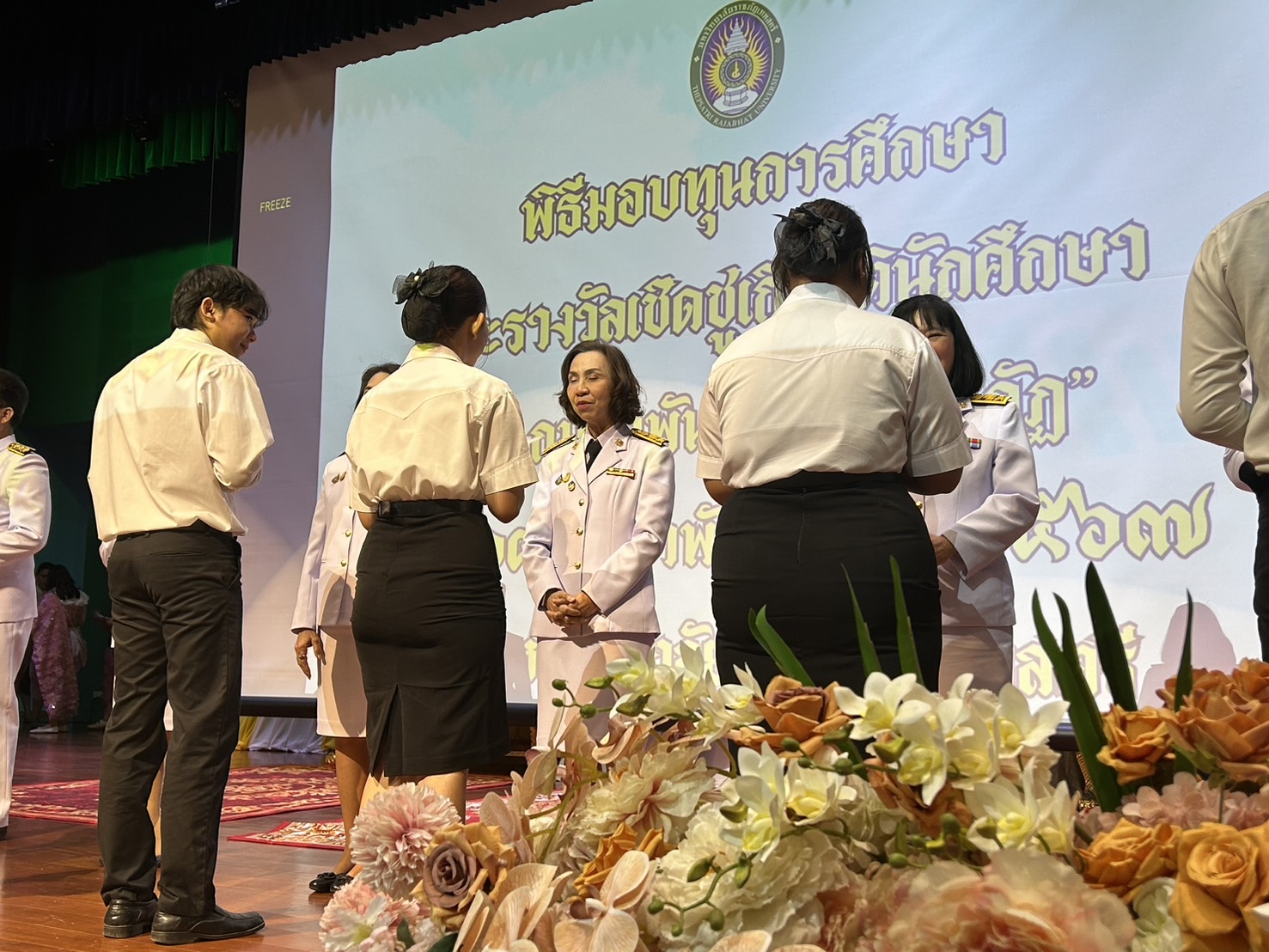 ผศ.พรรณนิภา เดชพล คณบดีคณะวิทยาการจัดการ พร้อมด้วยรองคณบดี อาจารย์ บุคลากร และ นักศึกษาคณะวิทยาการจัดการ เข้าร่วมงาน 14 กุมภาพันธ์ วันราชภัฏ