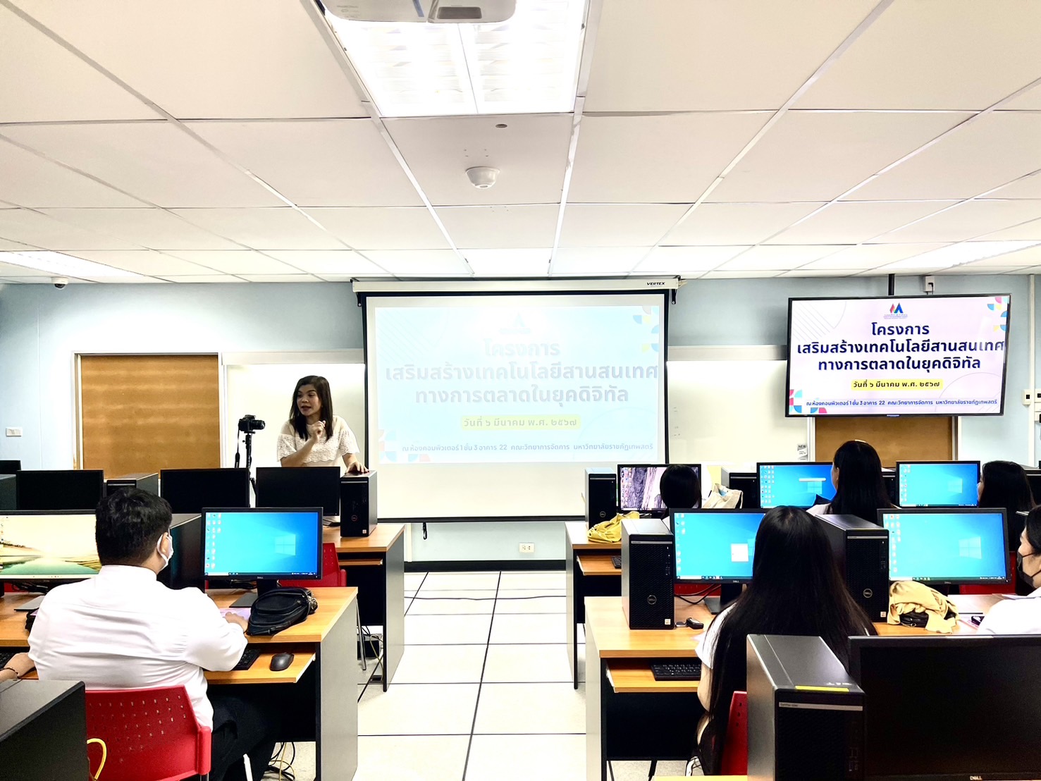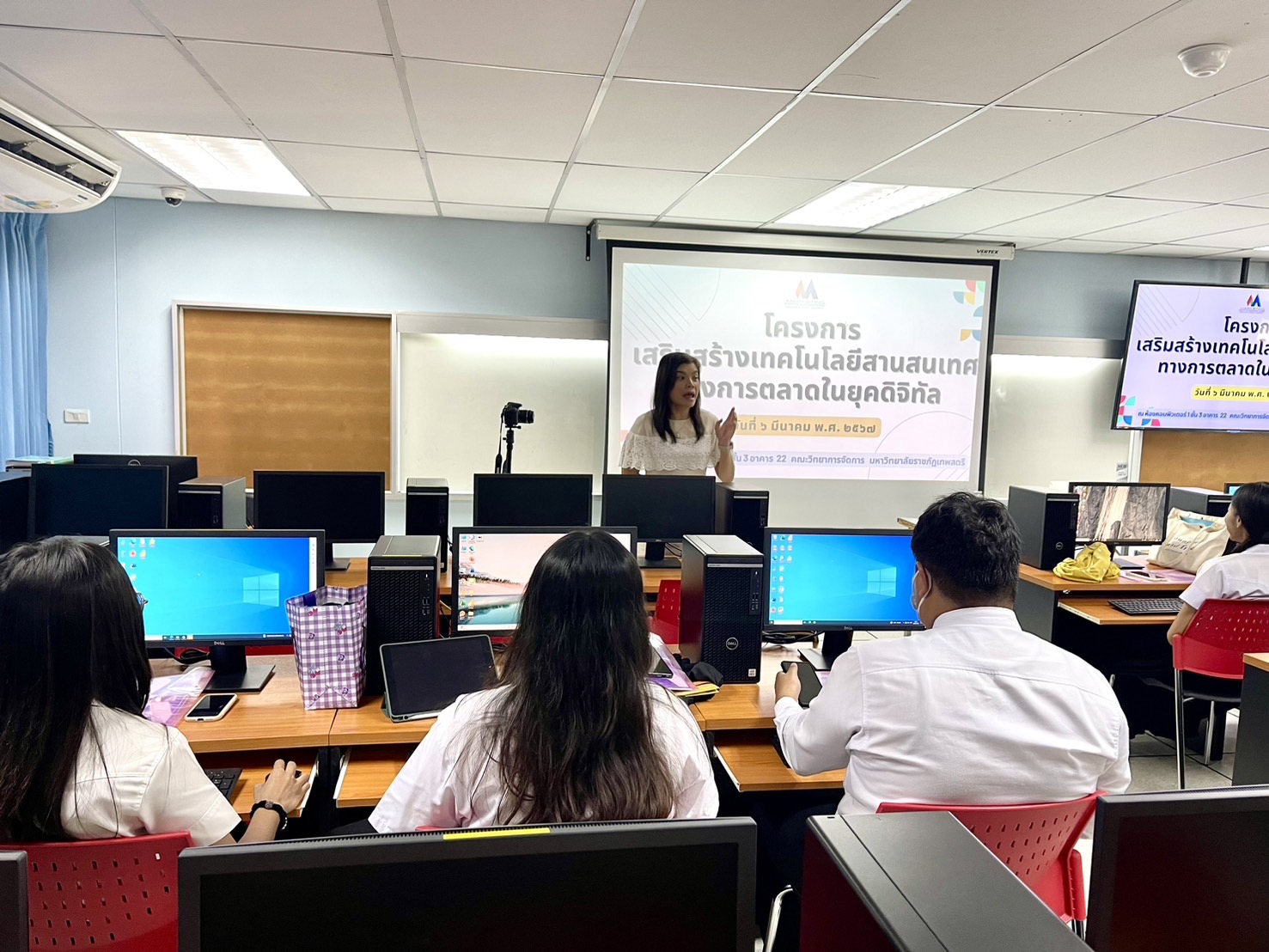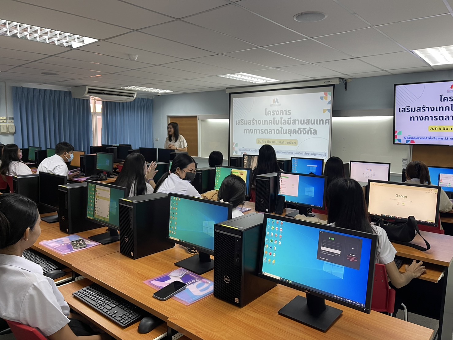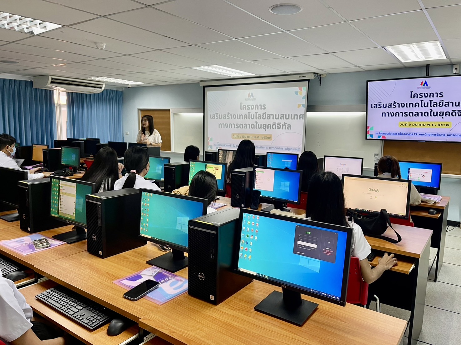 เมื่อ วันที่ 6 มีนาคม 2567 สาขาวิชาบริหารธุรกิจ วิชาเอกการตลาด มหาวิทยาลัยราชภัฏเทพสตรี จัดอบรม โครงการเสริมสร้างเทคโนโลยีสารสนเทศทางการตลาดในยุคดิจิทัล ให้แก่ นักเรียน/นักศึกษา จำนวน 35 คaน วัตถุประสงค์เพื่อให้นักศึกษามีความรู้ ฝึกปฏิบัติการ ด้านเทคโนโลยีสารสนเทศทางการตลาดในยุคดิจิทัล และ นักศึกษาแลกเปลี่ยนเรียนรู้ด้านเทคโนโลยีสารสนเทศทางการตลาดในยุคดิจิทัล การบรรยาย การสร้างวีดีโอให้เหมาะกับสื่อโฆษณา และการออกแบบสื่อให้น่าสนใจในรูปแบบสื่อ Infographic โดย อาจารย์อรวรรณ แท่งทอง ณ ห้อง LAB COMPUTER 1 อาคาร 22 คณะวิทยาการจัดการ