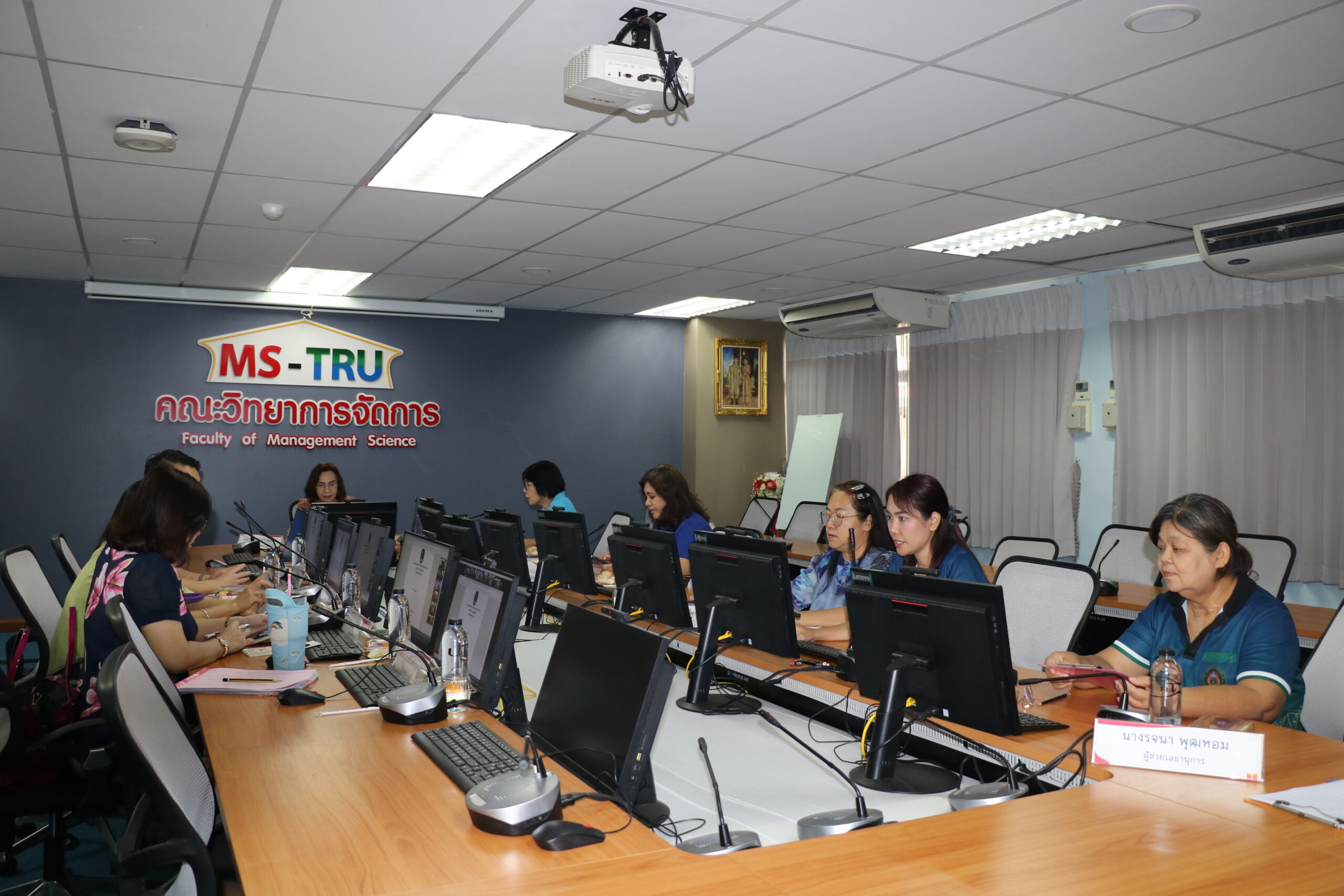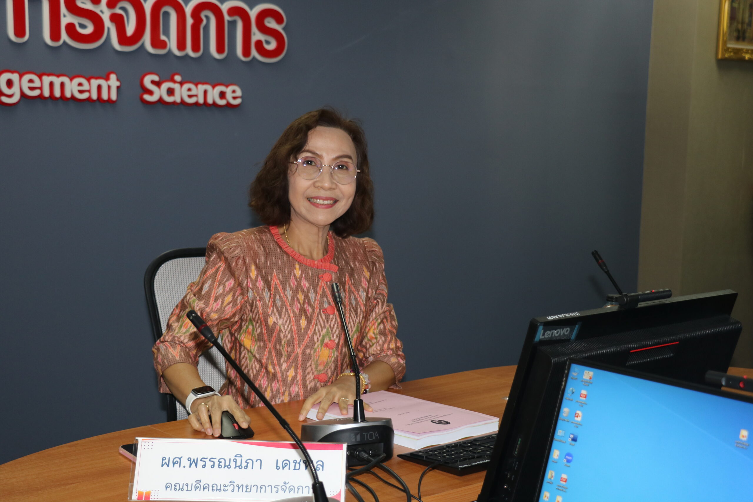 วันที่ 8 มีนาคม พ.ศ. 2567 ผศ.พรรณนิภา เดชพล คณบดีคณะวิทยาการจัดการ มหาวิทยาลัยราชภัฏเทพสตรี เป็นประธานการประชุมคณะกรรมการประจำคณะวิทยาการจัดการ ครั้งที่ 3/2567 ในรูปแบบการประชุมระบบ Hybrid Meeting ณ ห้องช่อยูงทอง ชั้น 2 อาคารคณะวิทยาการจัดการ ซึ่งมีคณะกรรมการเข้าร่วมการประชุมกว่า 2 ใน 3 โดยมีวาระสำคัญที่ร่วมกันพิจารณา ได้แก่ เรื่องพิจารณาผลการเรียนนักศึกษาภาคปกติ รายวิชาเลือกเสรี ภาคการศึกษาที่ 2 ปีการศึกษา 2566 (กรณีพิเศษ) และการกำหนดผลลัพธ์การเรียนรู้ของหลักสูตร (Program Learning Outcomes : PLOs) ตามเกณฑ์ AUN QA