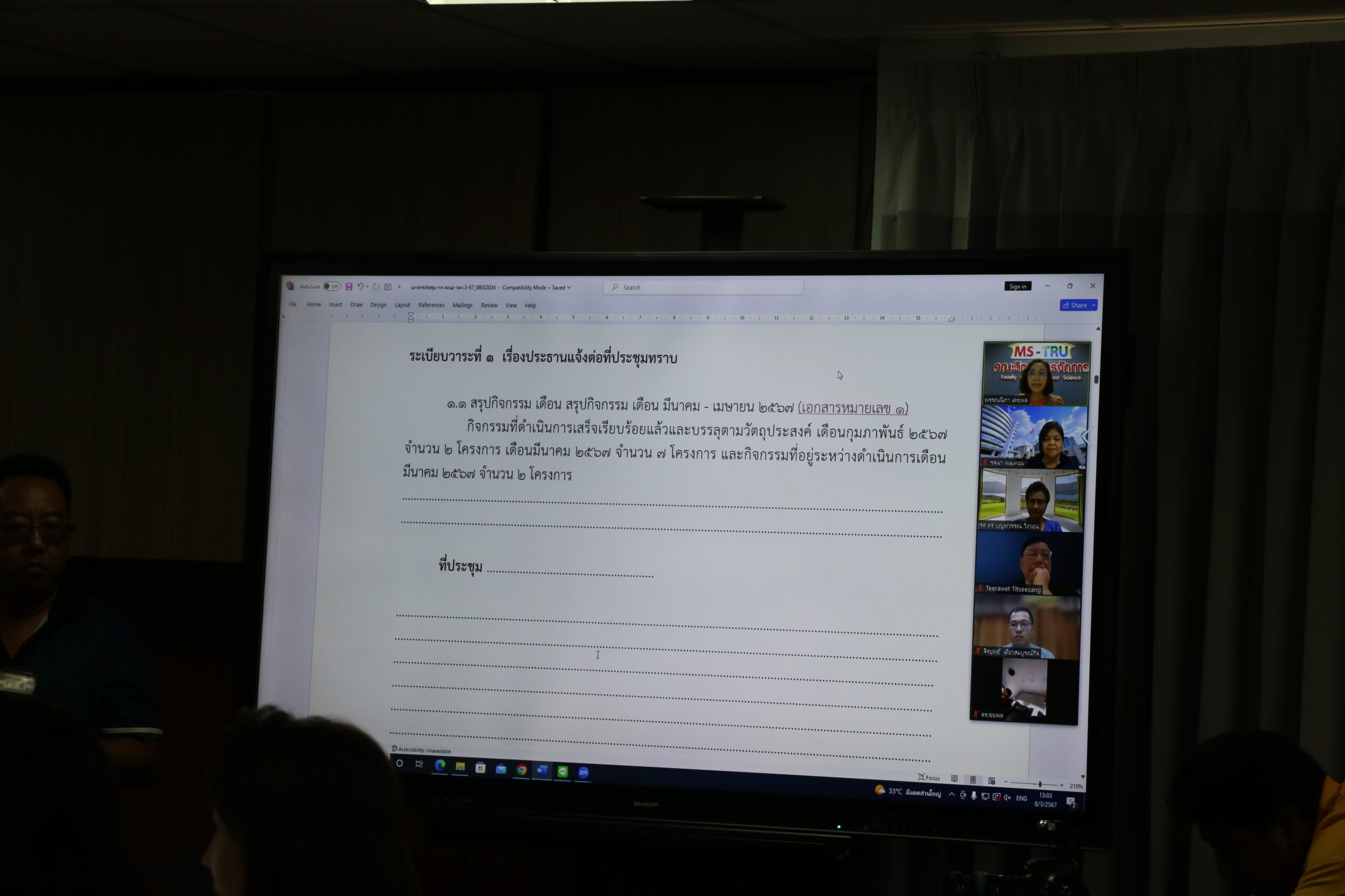 ประชุมคณะกรรมการประจำคณะวิทยาการจัดการ ครั้งที่ 3/2567 ในรูปแบบการประชุมระบบ Hybrid Meeting ณ ห้องช่อยูงทอง ชั้น 2
