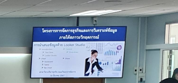 เมื่อ วันที่ 16 มีนาคม 2567 สาขาวิชาบริหารธุรกิจ วิชาเอกการจัดการ มหาวิทยาลัยราชภัฏเทพสตรี จัดอบรมโครงการการจัดการธุรกิจและการวิเคราะห์ข้อมูลภายใต้สภาวะวิกฤตการณ์ เรื่อง แนวคิดการจัดการวิกฤตการณ์ โดย นายชนินทร์ ป้อมบุบผา อาจารย์ ดร. เฟื่องฟ้า ปัญญา และผศ.ดร.ปิยะพงศ์ แดงขำให้แก่ นักศึกษา จำนวน 50 คน โดยมี เพื่อให้นักศึกษามีความรู้ด้านการจัดการวิกฤตการณ์และการใช้ข้อมูลในการตัดสินใจการดำเนินงานธุรกิจ และให้นักศึกษาอภิปรายแลกเปลี่ยนเรียนรู้การจัดการวิกฤตการณ์และการวิเคราะห์ข้อมูลในการตัดสินใจการดำเนินงานธุรกิจ ณ ห้อง LAB COMPUTER 1ผ่านสื่ออิเล็กทรอนิกส์ระบบ ZOOM Meeting