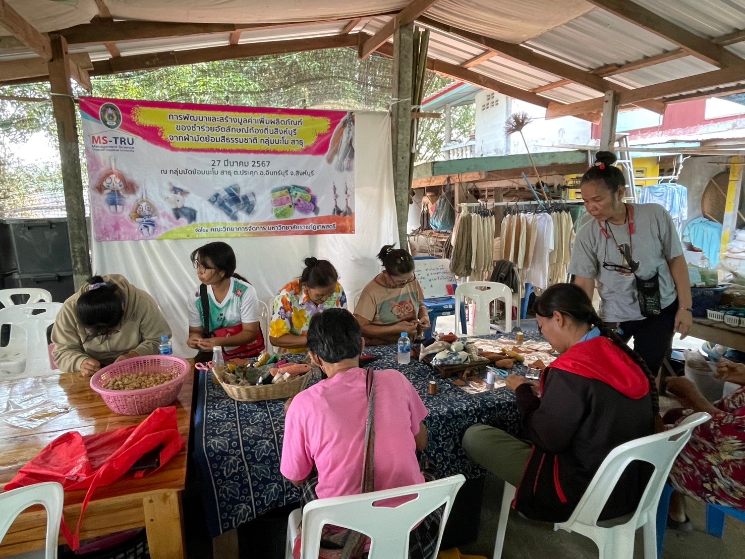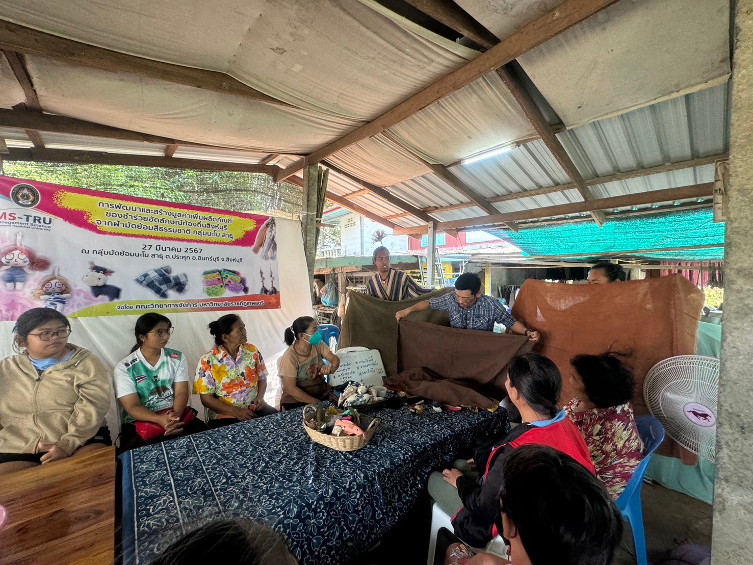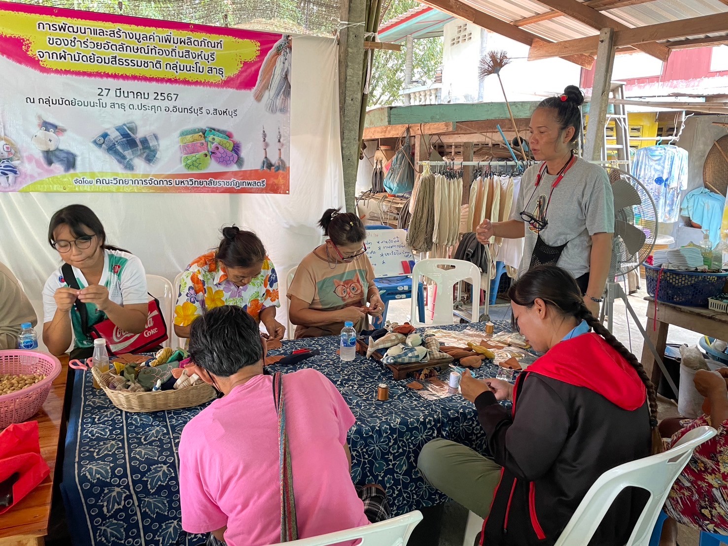 เมื่อวันที่ 27 มีนาคม 2567 ผศ.ดร.ณัฏฐชา หน่อทอง รองคณบดีฝ่ายวิชาการ คณะวิทยาการจัดการ จัดโครงการ การพัฒนาและสร้างมูลค่าเพิ่มผลิตภัณฑ์ของชำร่วยอัตลักษณ์ท้องถิ่นสิงห์บุรีจากผ้ามัดย้อมสีธรรมชาติ กลุ่มนะโมสาธุ ซึ่งเป็นการอบรมเชิงปฏิบัติการ “การออกแบบและตัดเย็บของชำร่วยอัตลักษณ์ท้องถิ่นจากผ้ามัดย้อมสีธรรมชาติ” มีประชาชนเข้าร่วมโครงการจำนวน 15 คน โดยได้รับเกียรติจาก อาจารย์นิเวศ เผื่อนทิม อาจารย์ประจำสาขาวิชาศิลปกรรม คณะมนุษยศาสตร์และสังคมศาสตร์ มหาวิทยาลัยราชภัฏเทพสตรี และ นายกิตติพงษ์ จันทราสาเจ้าของแบรนด์ Arry House เป็นวิทยากรการอบรม ณ กลุ่มนะโมสาธุ ตำบลประศุก อำเภออินทร์บุรี จังหวัดสิงห์บุรี