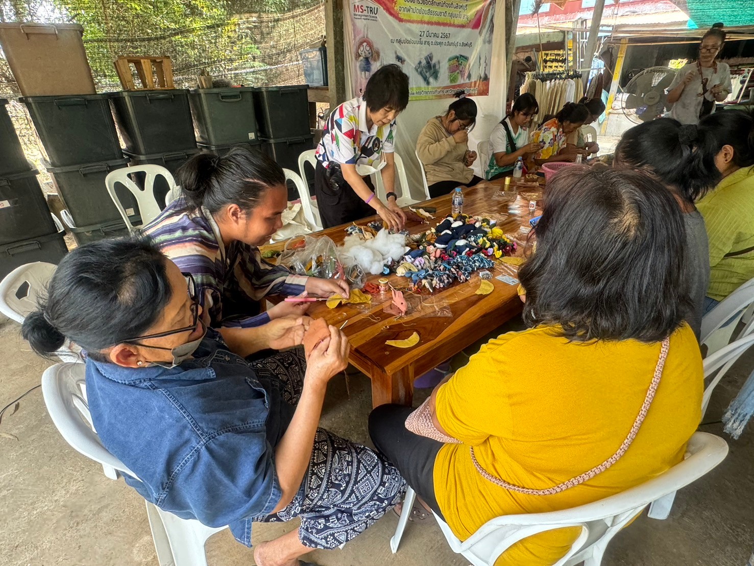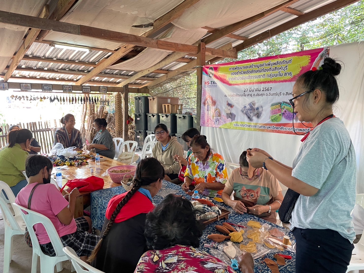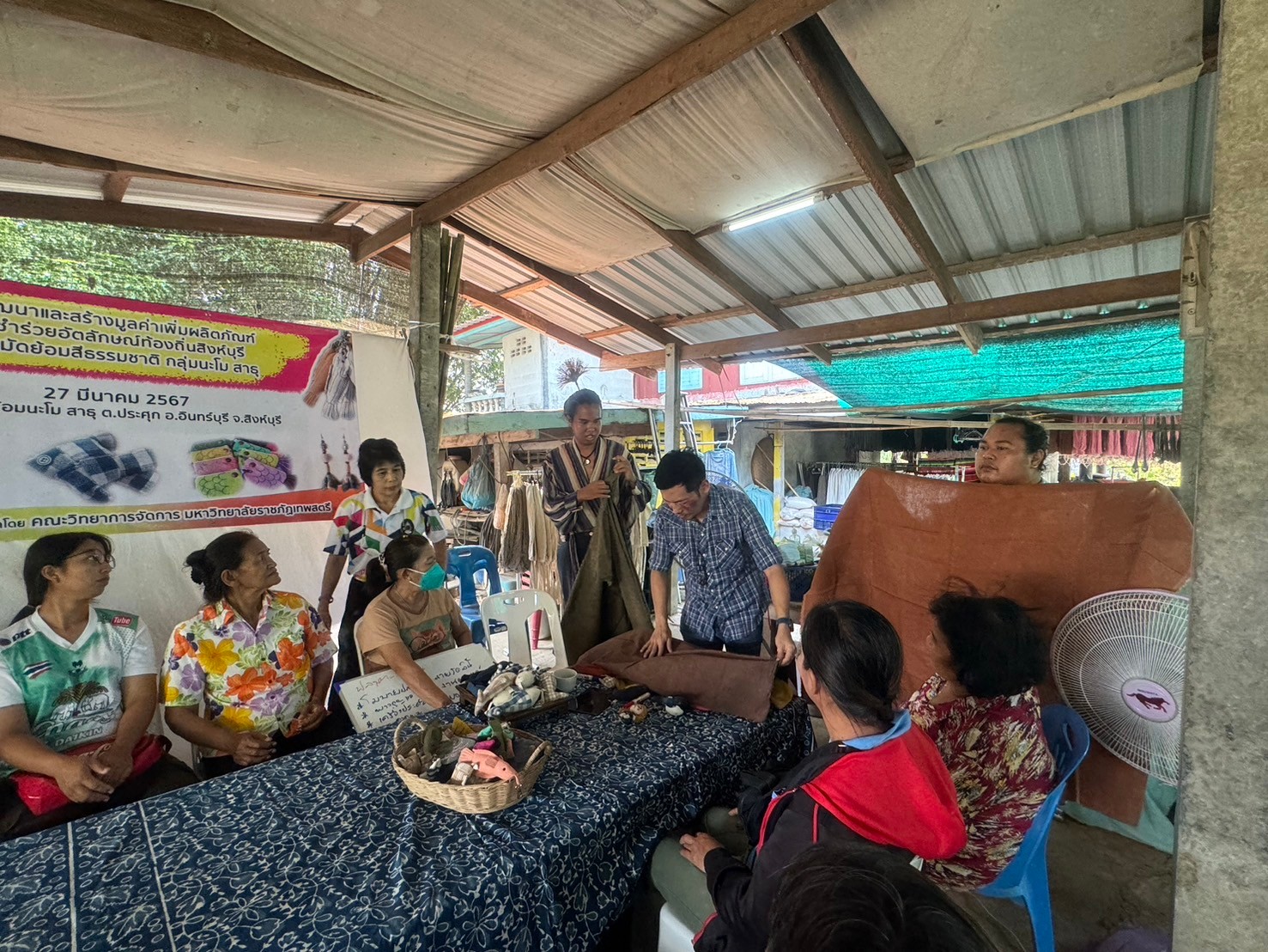 เมื่อวันที่ 27 มีนาคม 2567 ผศ.ดร.ณัฏฐชา หน่อทอง รองคณบดีฝ่ายวิชาการ คณะวิทยาการจัดการ จัดโครงการ การพัฒนาและสร้างมูลค่าเพิ่มผลิตภัณฑ์ของชำร่วยอัตลักษณ์ท้องถิ่นสิงห์บุรีจากผ้ามัดย้อมสีธรรมชาติ กลุ่มนะโมสาธุ ซึ่งเป็นการอบรมเชิงปฏิบัติการ “การออกแบบและตัดเย็บของชำร่วยอัตลักษณ์ท้องถิ่นจากผ้ามัดย้อมสีธรรมชาติ” มีประชาชนเข้าร่วมโครงการจำนวน 15 คน โดยได้รับเกียรติจาก อาจารย์นิเวศ เผื่อนทิม อาจารย์ประจำสาขาวิชาศิลปกรรม คณะมนุษยศาสตร์และสังคมศาสตร์ มหาวิทยาลัยราชภัฏเทพสตรี และ นายกิตติพงษ์ จันทราสาเจ้าของแบรนด์ Arry House เป็นวิทยากรการอบรม ณ กลุ่มนะโมสาธุ ตำบลประศุก อำเภออินทร์บุรี จังหวัดสิงห์บุรี