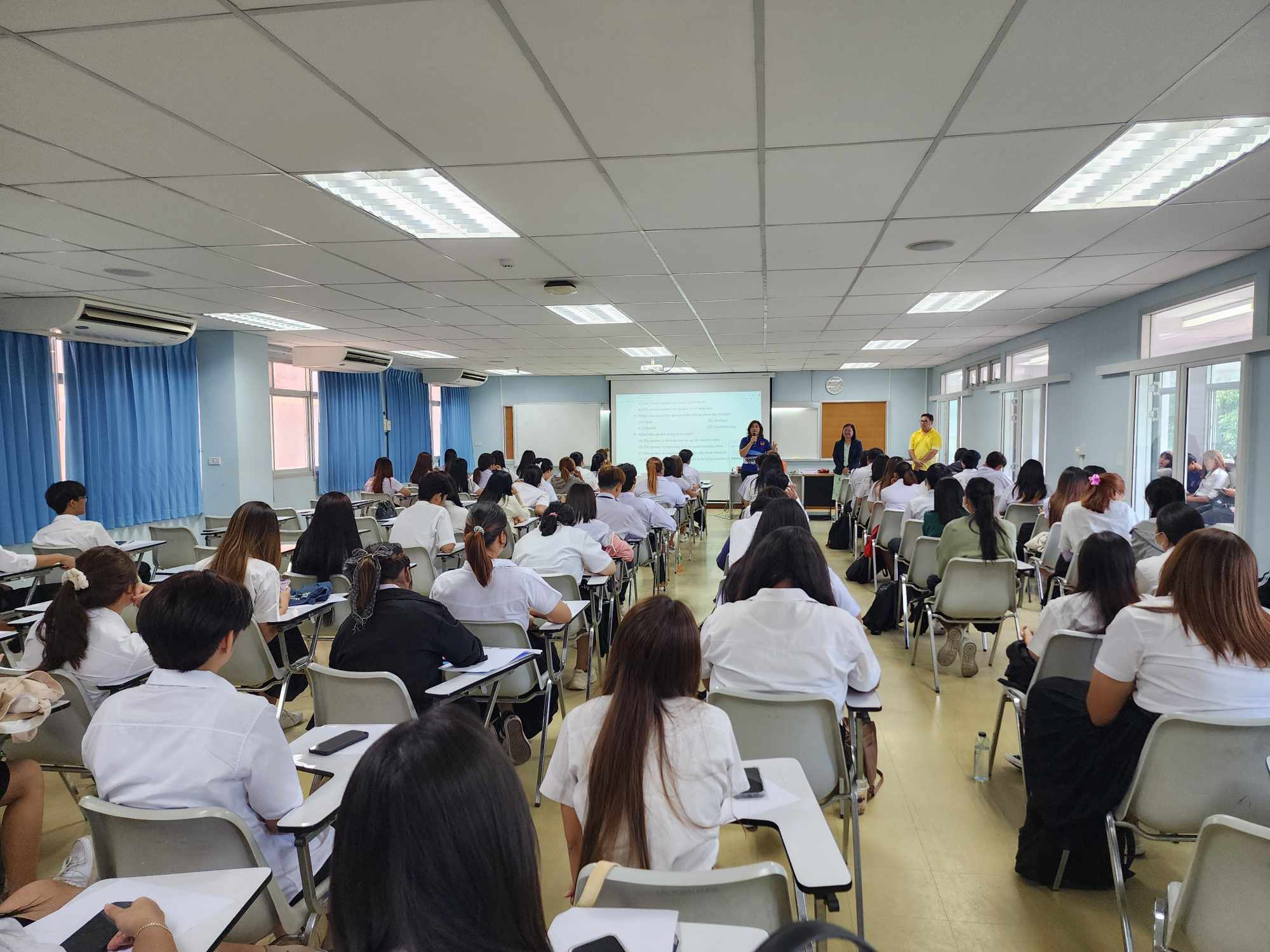 เมื่อวันที่ 4 มิถุนายน 2567งานกิจการนักศึกษา สำนักงานคณบดีคณะวิทยาการจัดการ มหาวิทยาลัยราชภัฏเทพสตรีจัดโครงการ พัฒนาทักษะทางภาษาอังกฤษนักศึกษา ให้แก่ นักศึกษา จำนวน 120 คน ณ ห้อง 22/401 คณะวิทยาการจัดการ เพื่อวัตถุประสงค์ให้นักศึกษาคณะวิทยาการจัดการมีความสามารถทางด้านภาษาอังกฤษเพิ่มขึ้น โดย ผศ.ดร.พิมพ์ระวี เรืองวัฒนกี