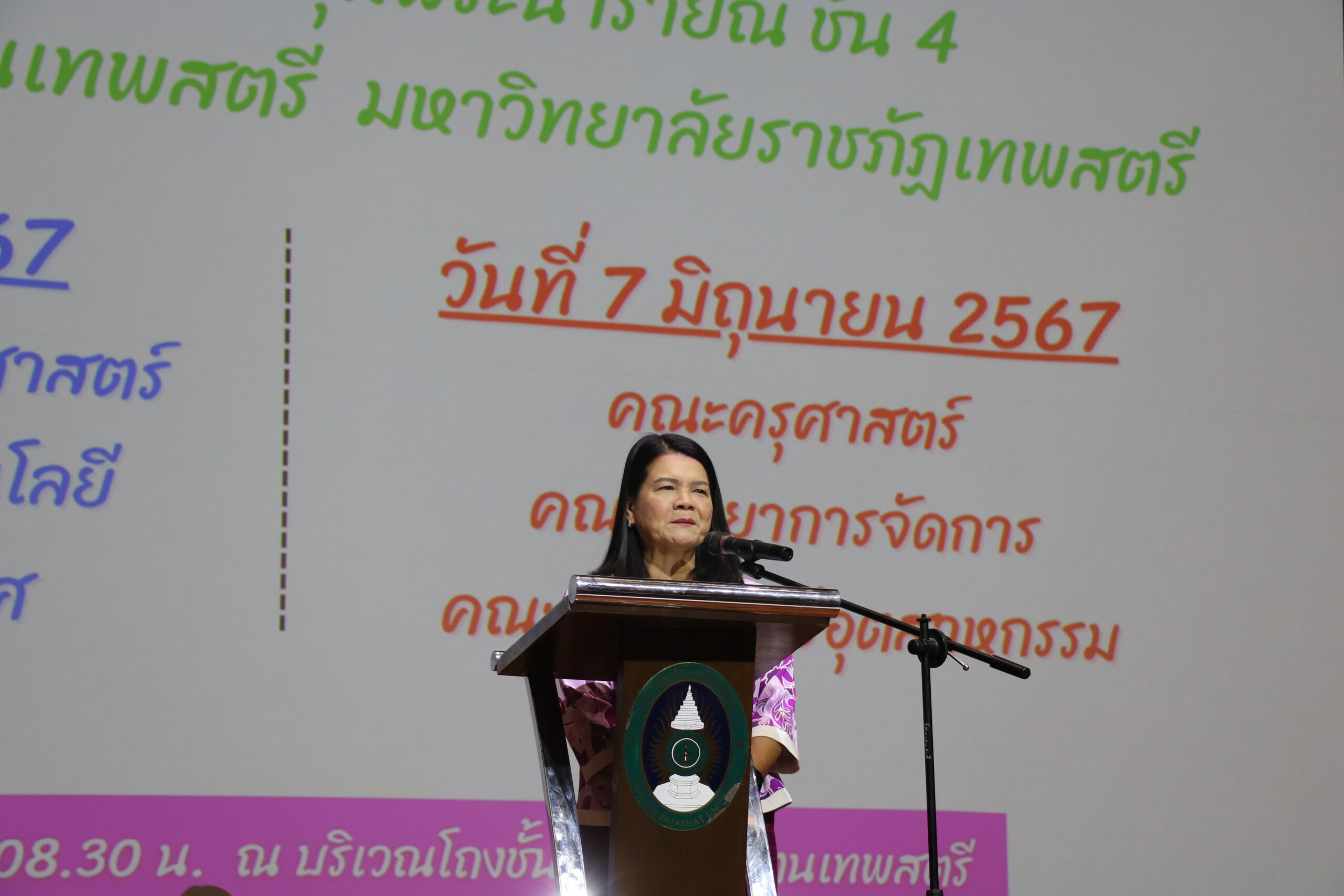 เมื่อวันที่7 มิถุนายน พ.ศ. 2567 ณ ห้องประชุมพระนารายณ์ ชั้น 4 อาคารรัตนเทพสตรี ผศ.พรรณนิภา เดชพล คณบดีคณะวิทยาการจัดการ พร้อมด้วย ผู้ช่วยคณบดี คณาจารย์และบุคลากรคณะวิทยาการจัดการ เป็นเกียรติเข้าร่วมพิธีปฐมนิเทศนักศึกษาใหม่ของมหาวิทยาลัยราชภัฏเทพสตรี ประจำปีการศึกษา 2567 ซึ่งจัดโดยกองพัฒนานักศึกษา สำนักงานอธิการบดี สำหรับการปฐมนิเทศครั้งนี้มีนักศึกษาชั้นปีที่ 1 เข้าร่วมการปฐมนิเทศกว่า 1,000 คน โดยภายหลังเสร็จสิ้นการปฐมนิเทศนักศึกษาจะมีความรู้ความเข้าใจในระเบียบข้อบังคับ และกฎเกณฑ์ต่าง ๆ ของมหาวิทยาลัยฯ และมีแนวทางการใช้ชีวิตในรั้วมหาวิทยาลัยสำหรับการปฐมนิเทศครั้งนี้ เป็นการปฐมนิเทศของนักศึกษาคณะครุศาสตร์ คณะวิทยาการจัดการ และคณะเทคโนโลยีอุตสาหกรรม โดยมีการจัดกิจกรรมต่าง ๆ ประกอบด้วย การแนะนำการให้บริการของกองบริการการศึกษา สำนักงานอธิการบดี / การให้บริการของสำนักวิทยบริการและเทคโนโลยีสารสนเทศ / การให้บริการของศูนย์ภาษา / การให้บริการของกองพัฒนานักศึกษา สำนักงานอธิการบดี / การใช้งานระบบบันทึกกิจกรรมนักศึกษา และระบบฐานข้อมูลนักศึกษา / กิจกรรมสร้างการรับรู้เรื่องวิศวกรสังคม / การแนะนำสภานักศึกษา องค์การบริหารนักศึกษา สโมสรคณะ การบันทึกข้อมูล Big Data ด้านความถนัด และความสนใจของนักศึกษา